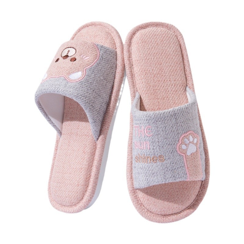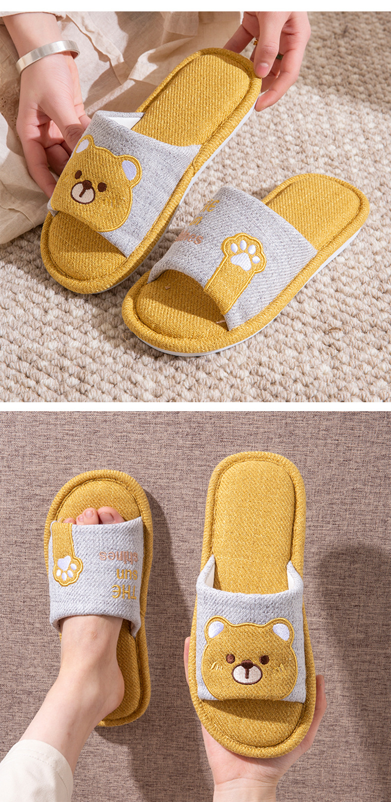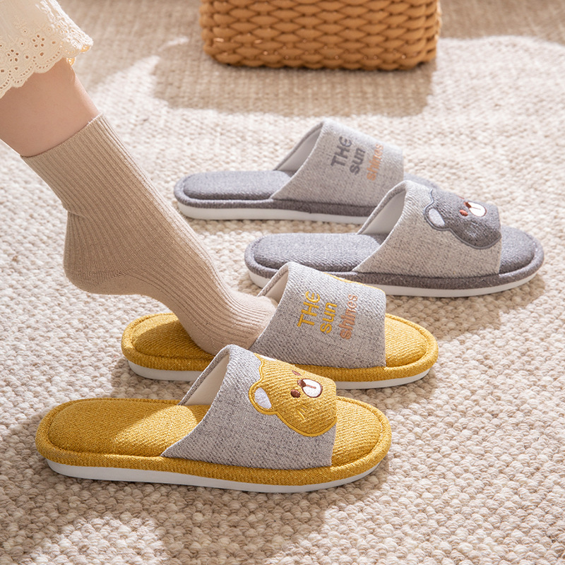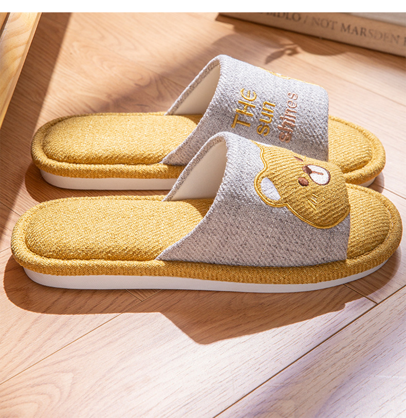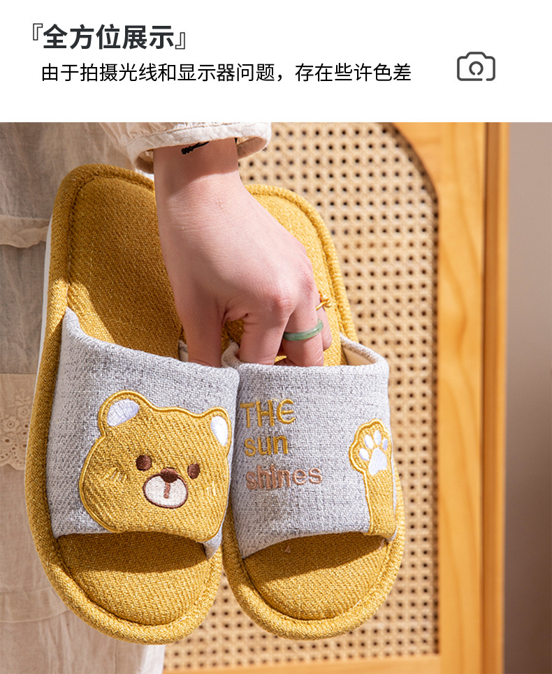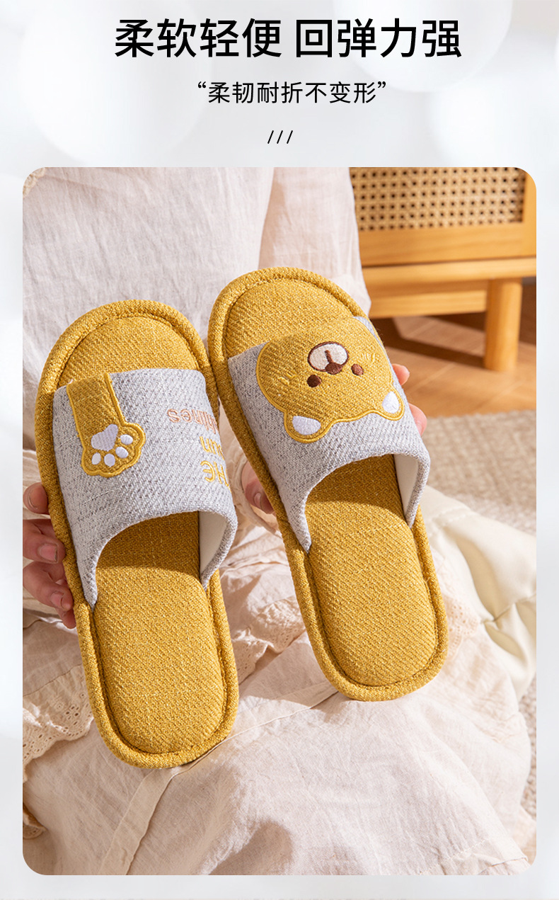 四季通用棉麻布拖鞋女春秋款卡通可爱室内居家地板静音亚麻拖鞋男