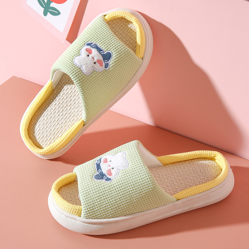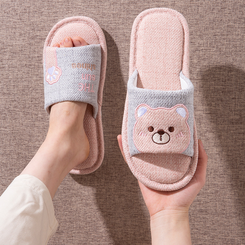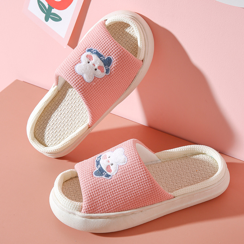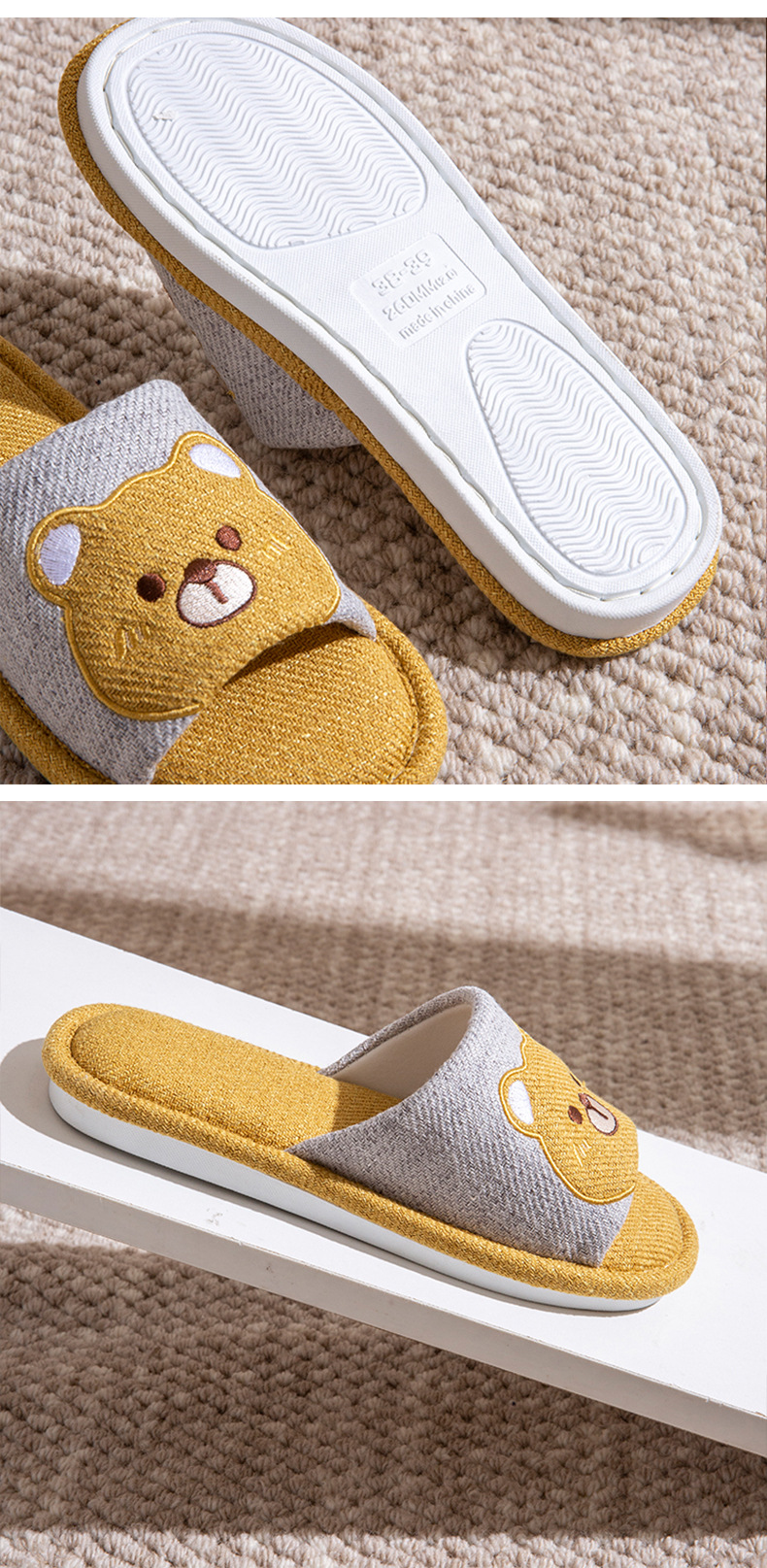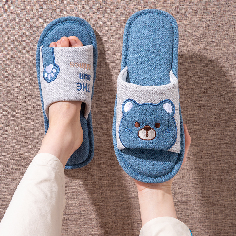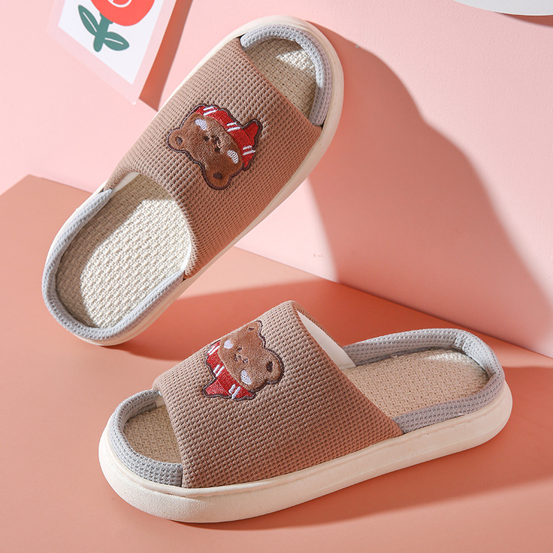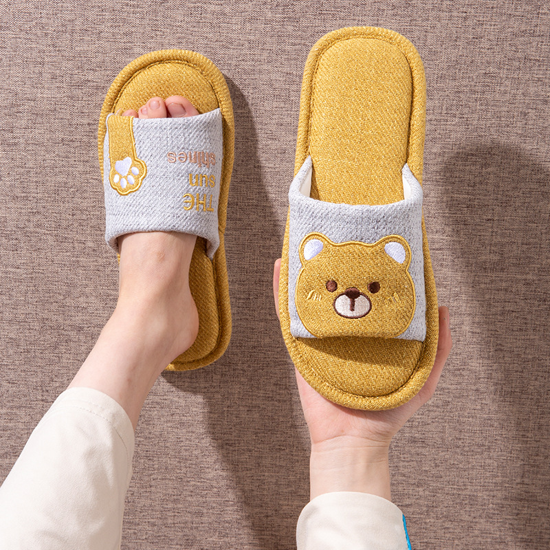 四季通用棉麻布拖鞋女春秋款卡通可爱室内居家地板静音亚麻拖鞋男