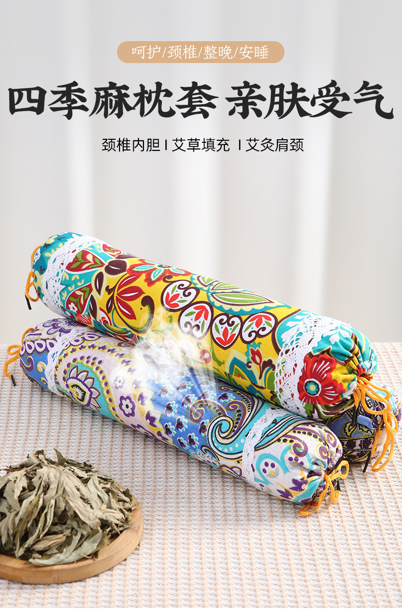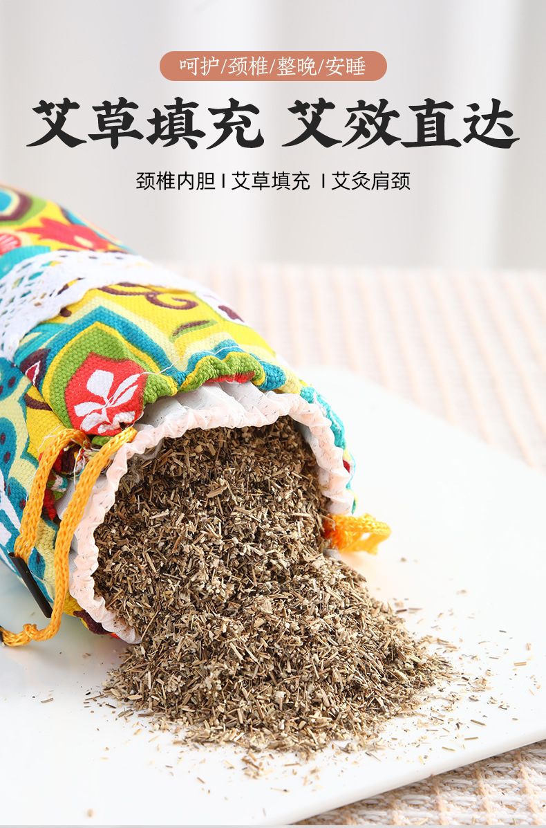 老艾坊艾草颈椎枕头糖果型颈椎枕头家用单人枕芯圆柱枕批发护颈枕