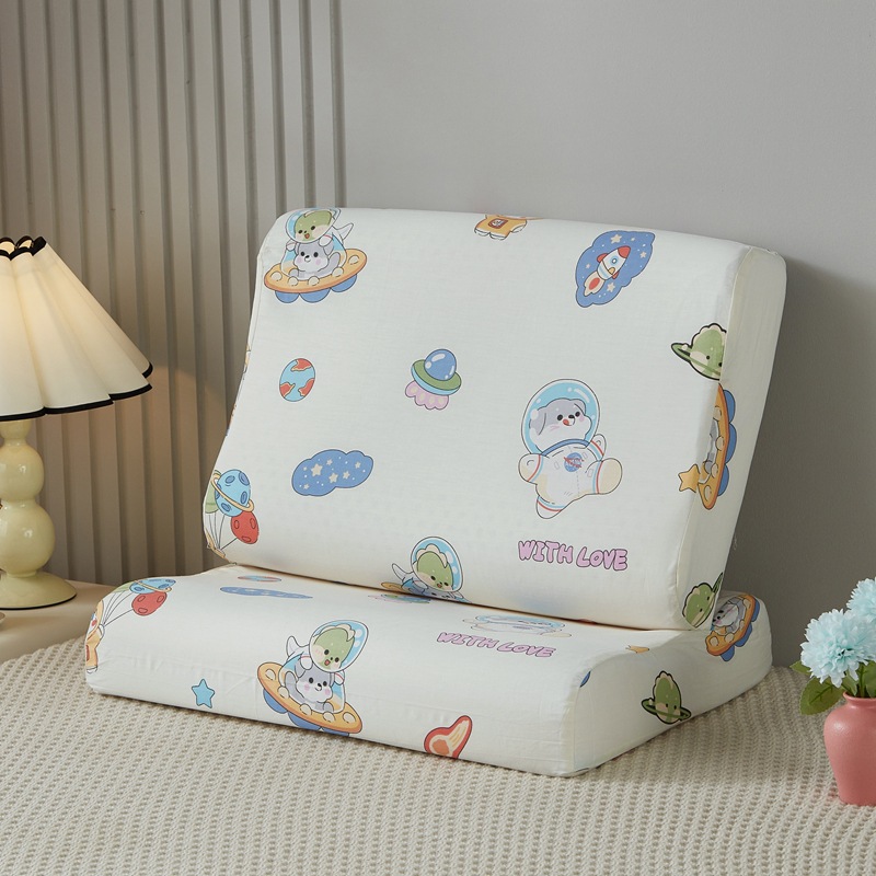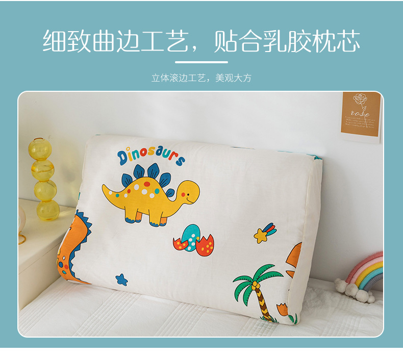 泰国儿童乳胶枕头全棉枕套学生卡通清新枕护颈助睡眠枕头枕芯批发