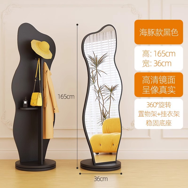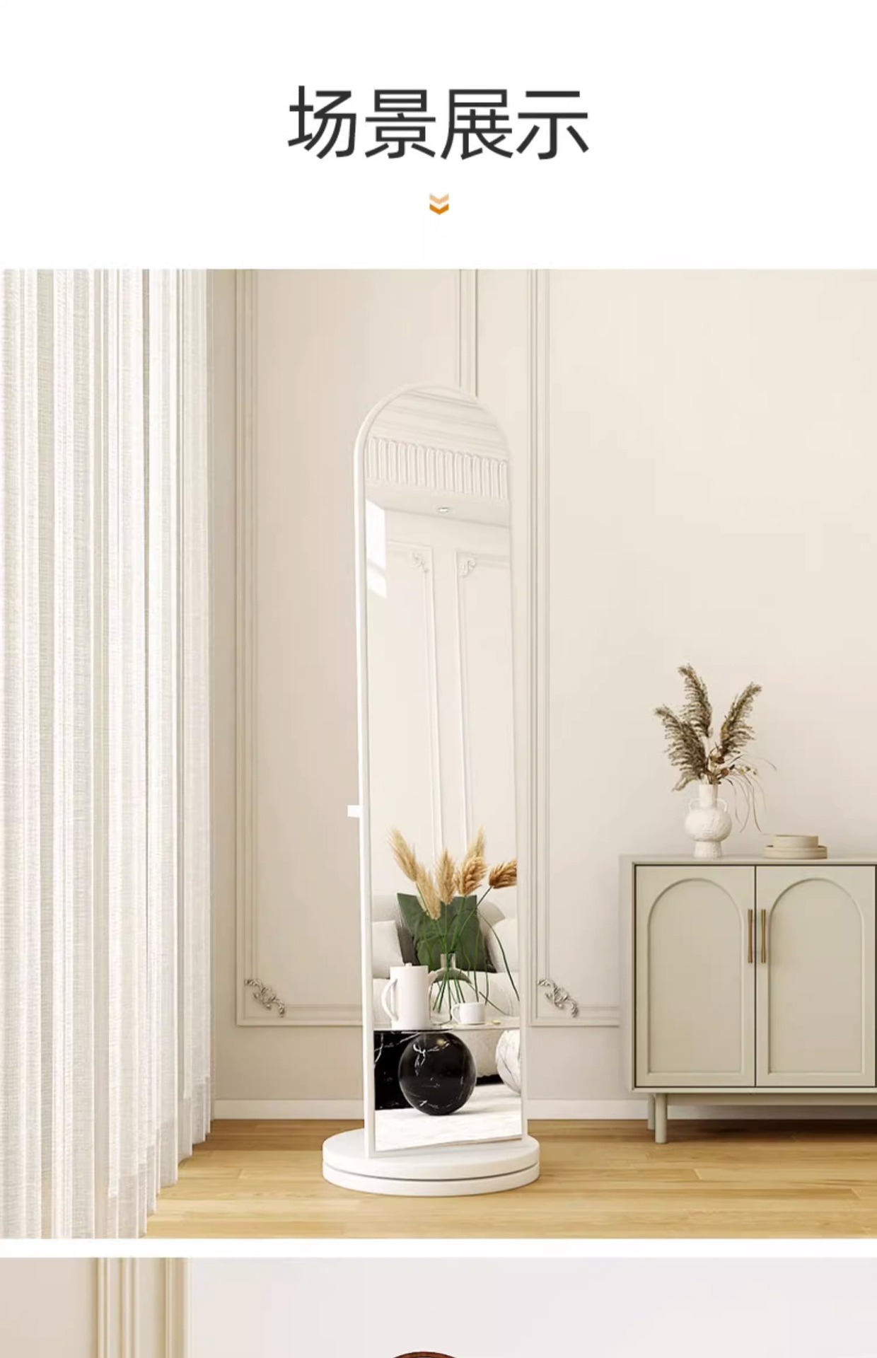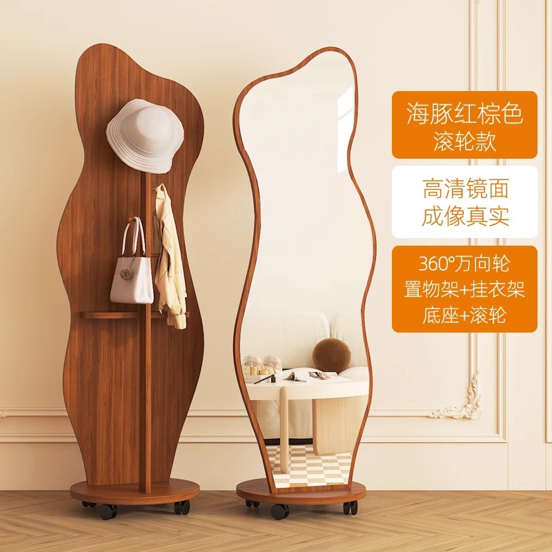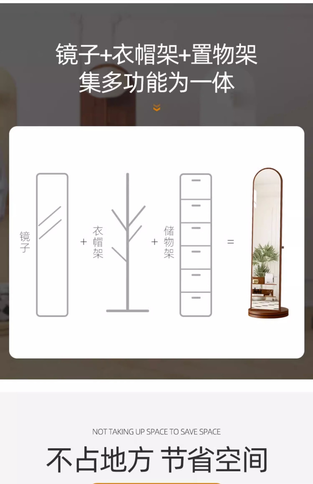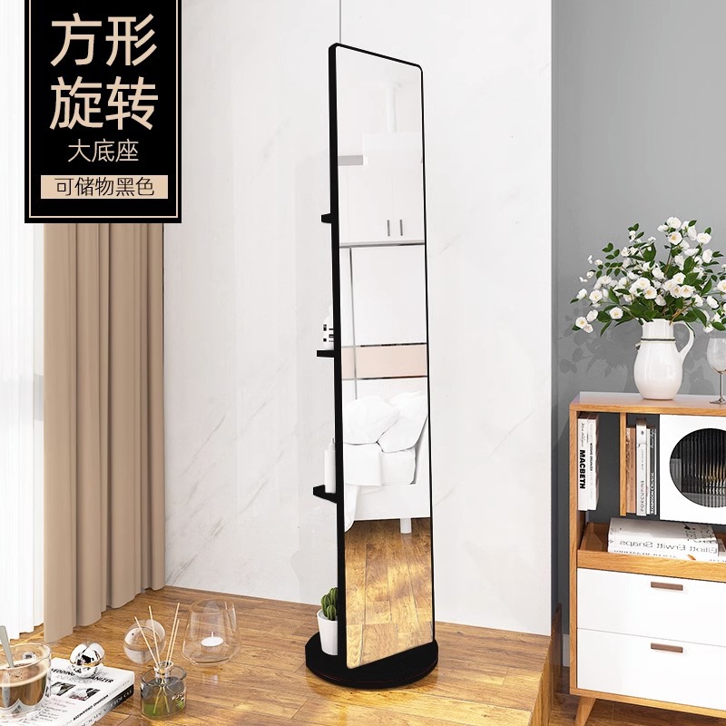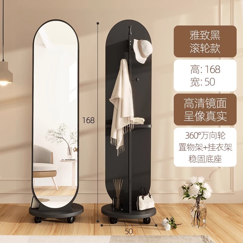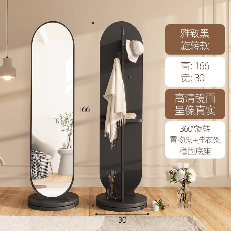 穿衣落地镜子旋转立式全身镜家用试衣镜挂衣架一体玄关储物梳妆镜