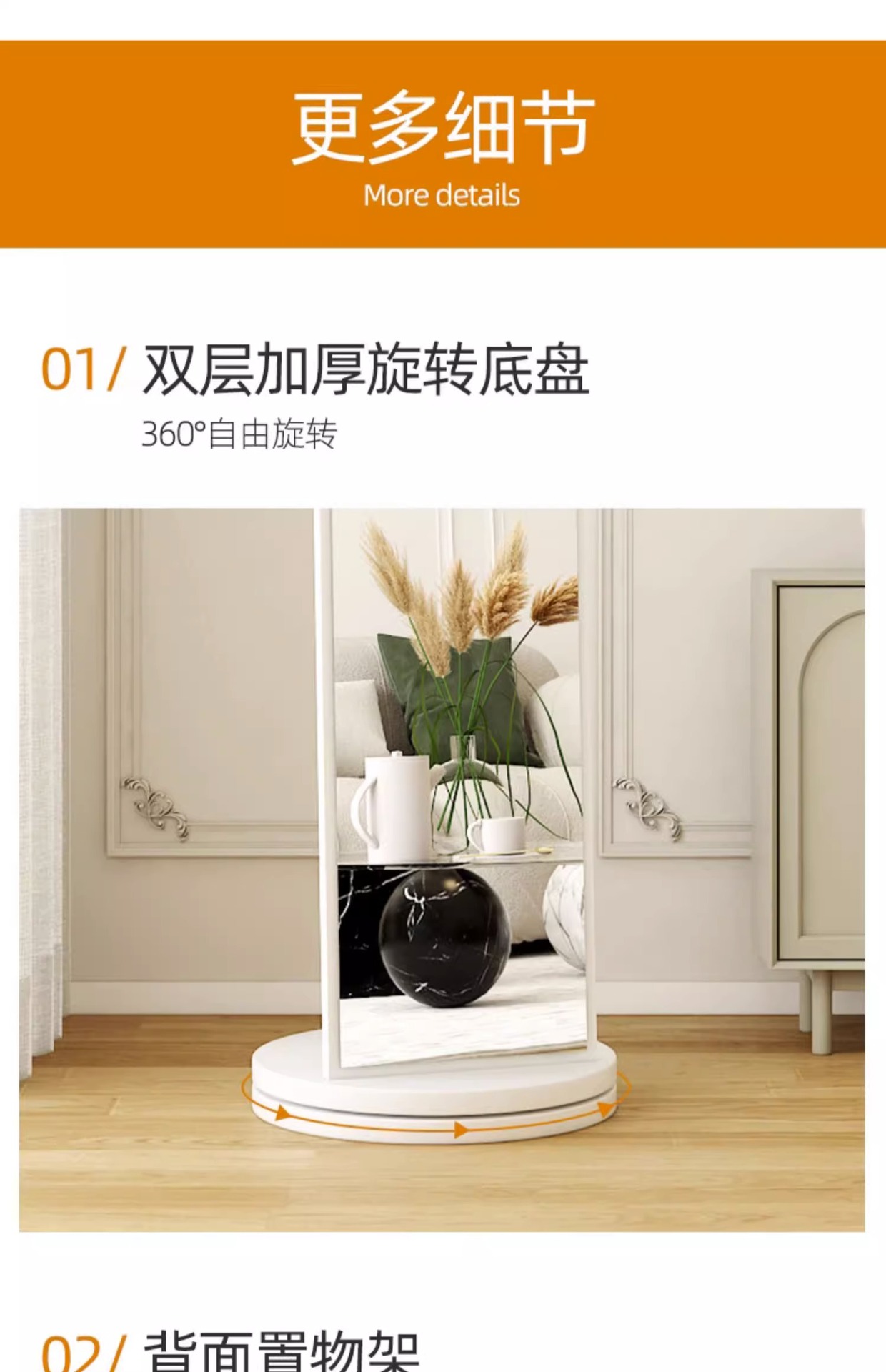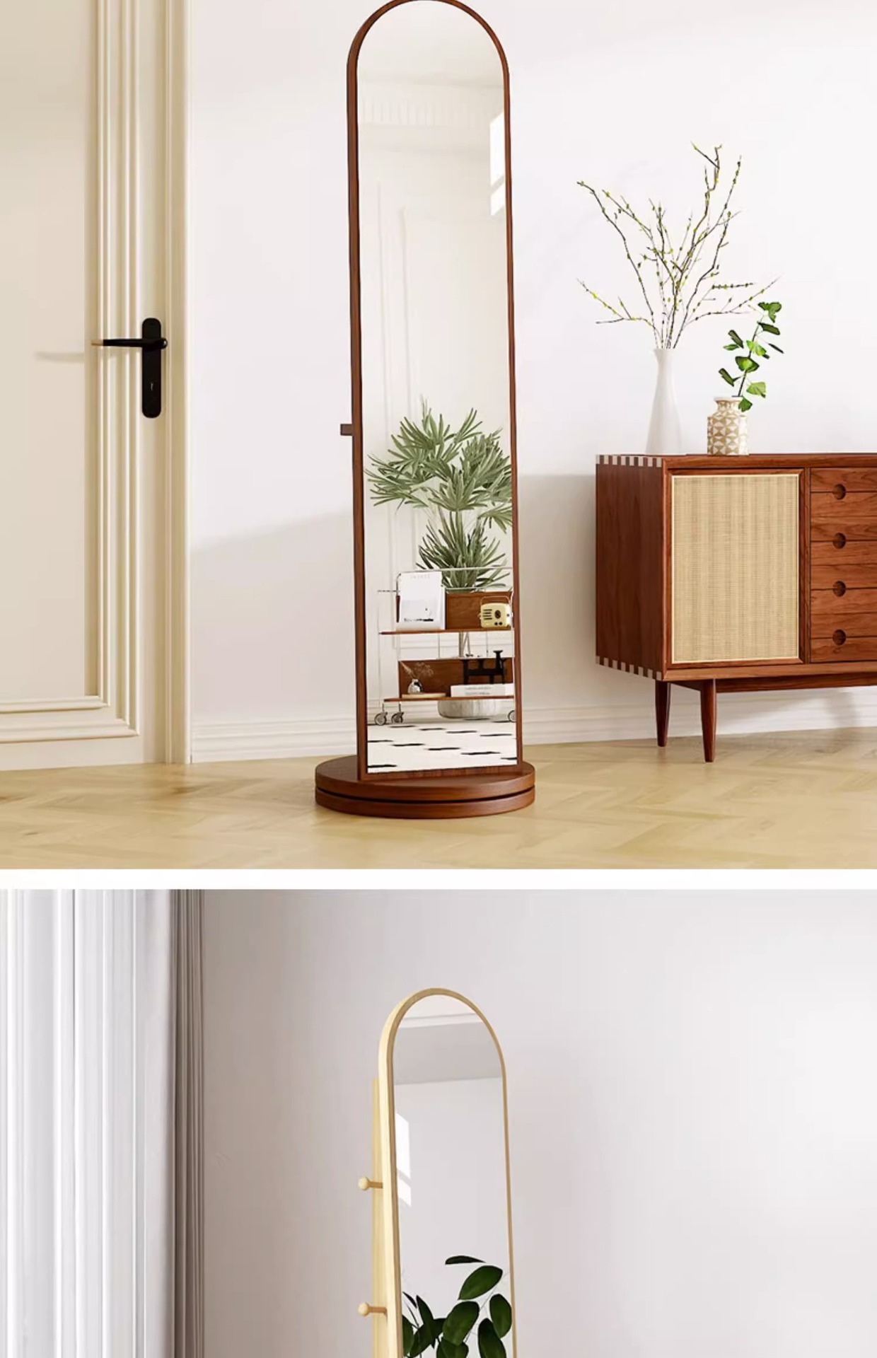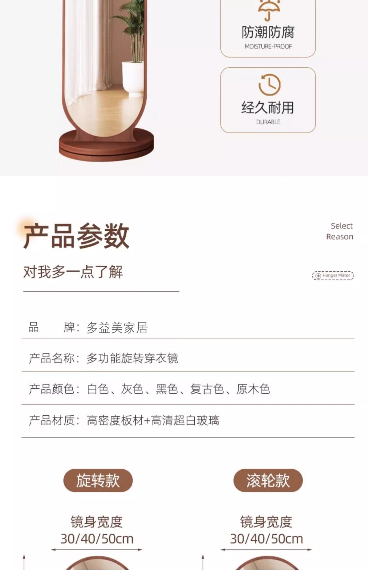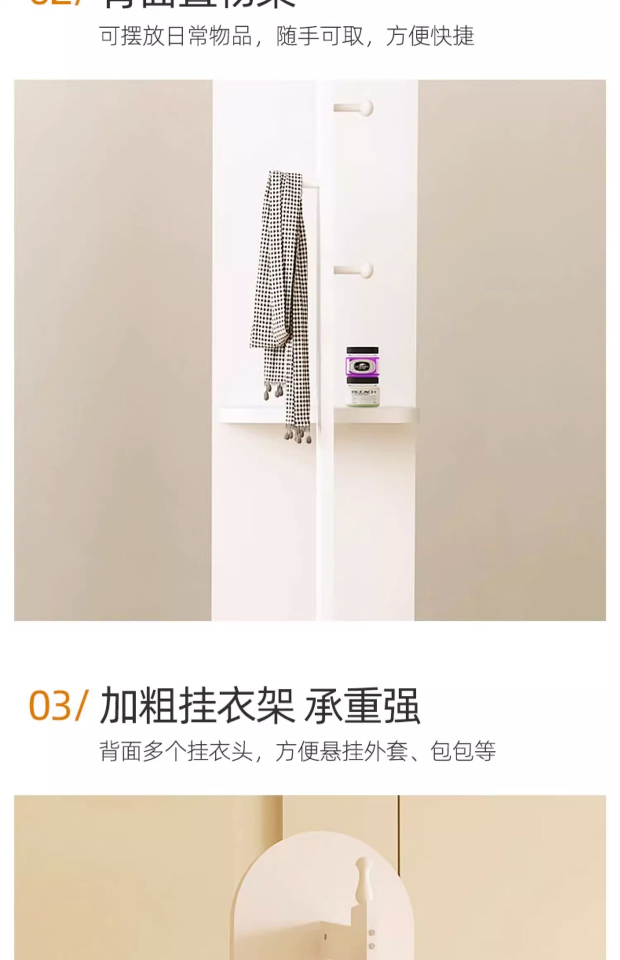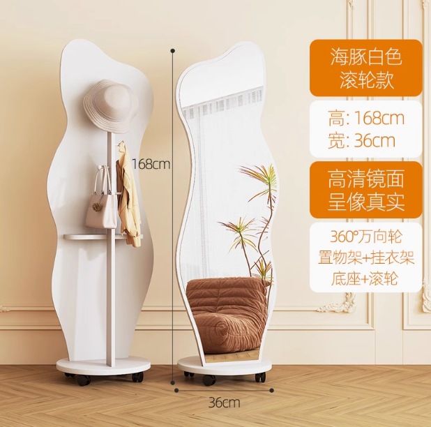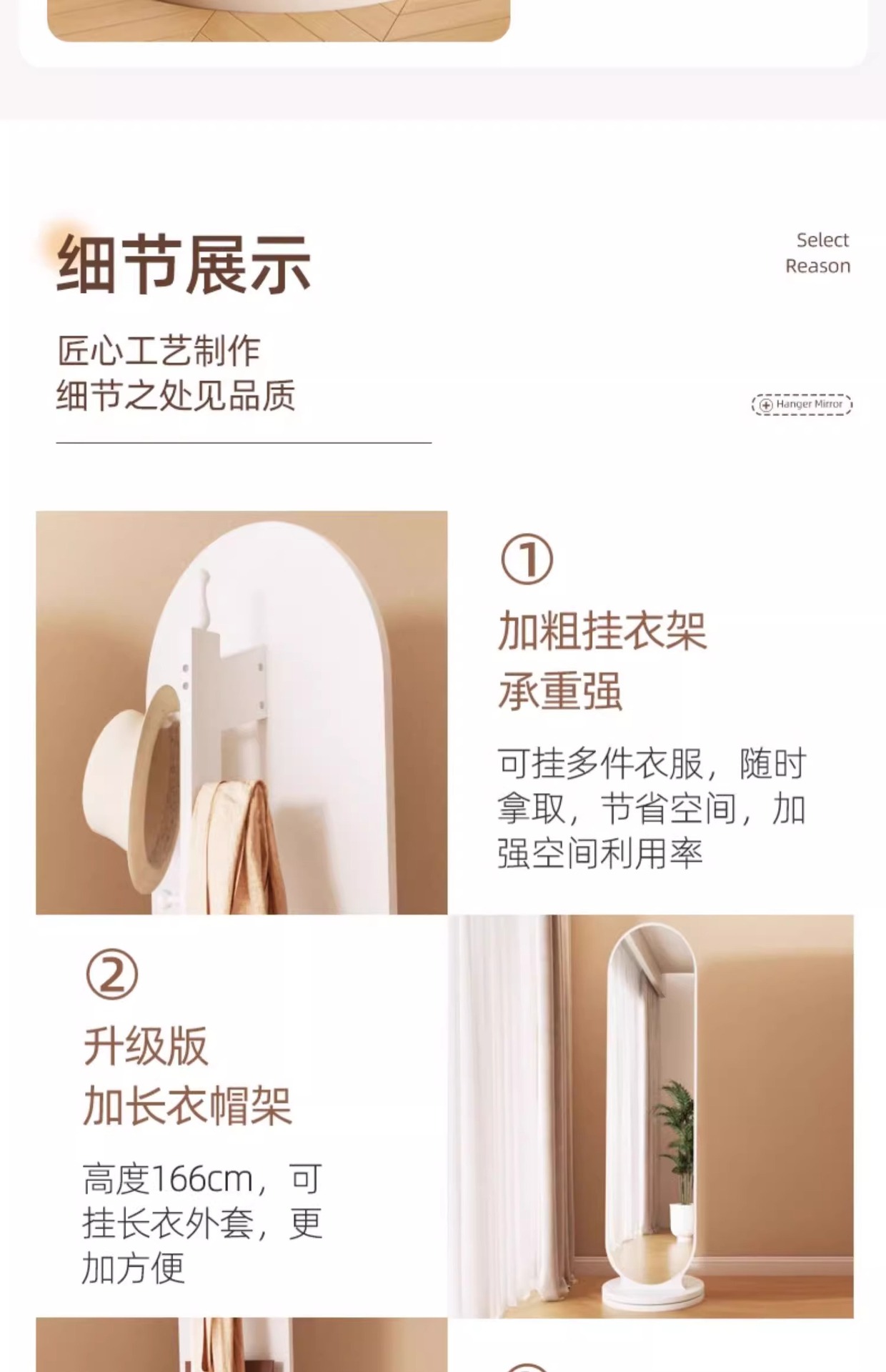 穿衣落地镜子旋转立式全身镜家用试衣镜挂衣架一体玄关储物梳妆镜