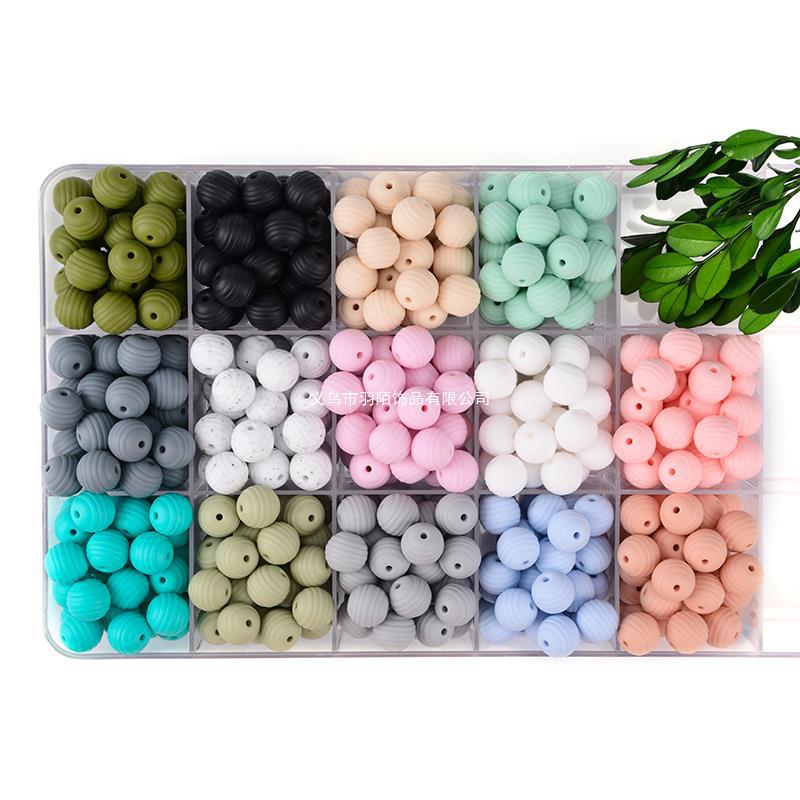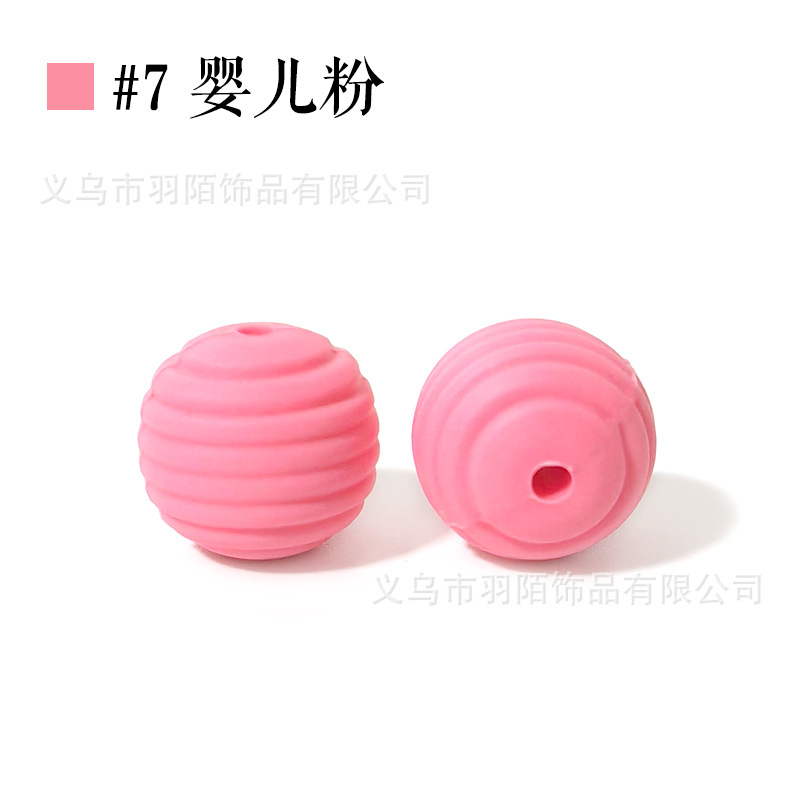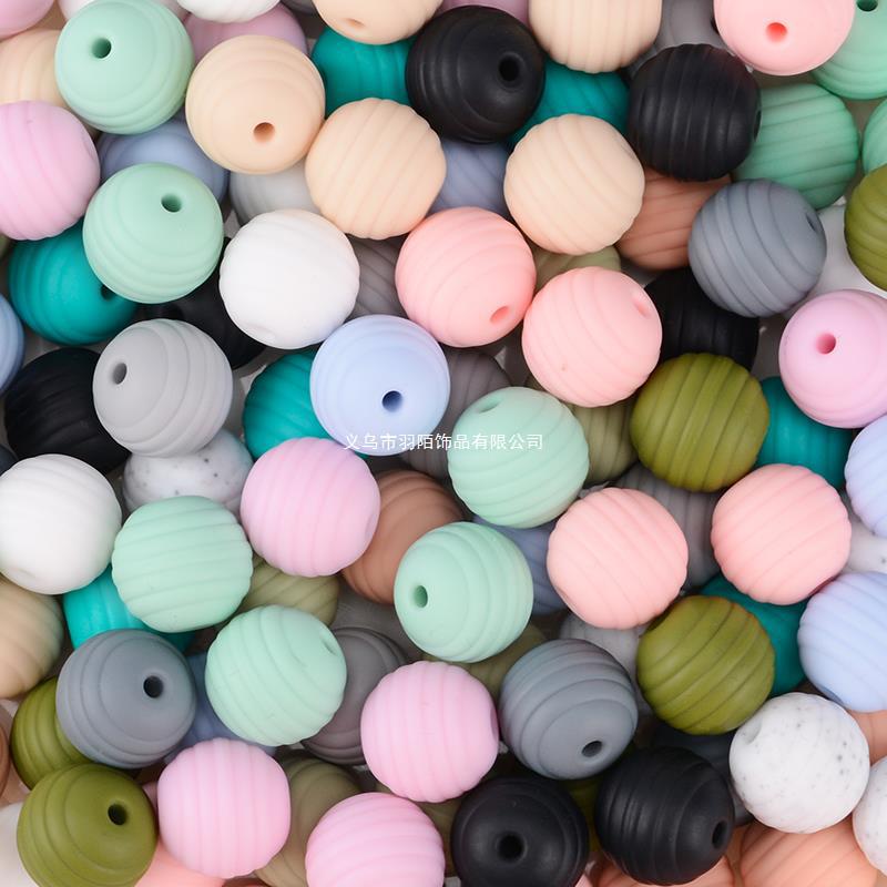 15硅胶螺纹珠 硅胶珠蜂巢珠儿童磨牙圆珠散珠DIY项链手链配件珠子