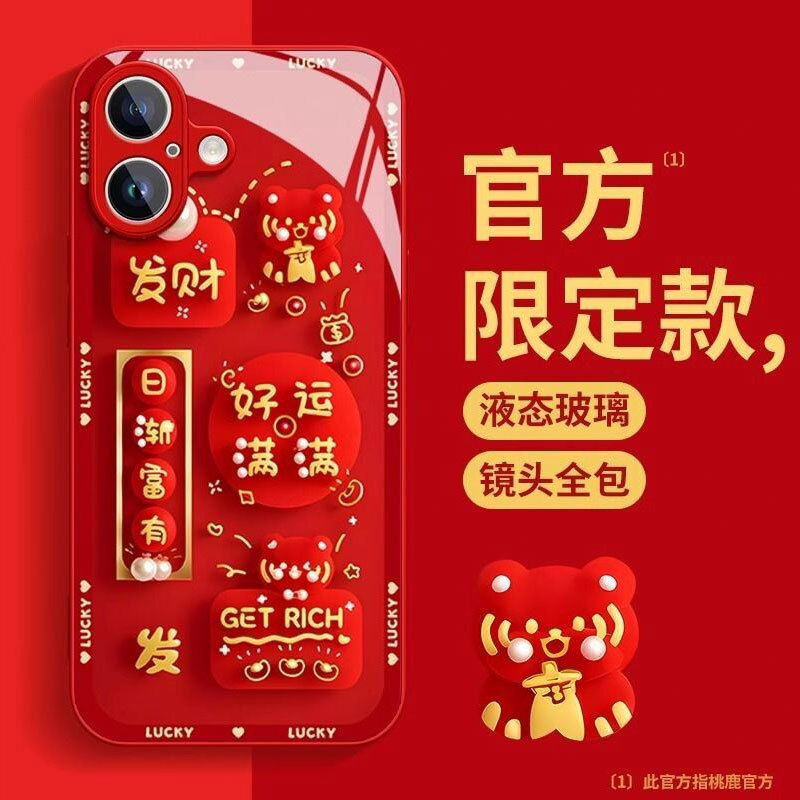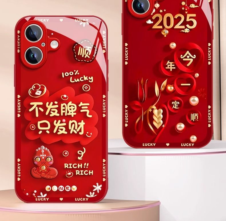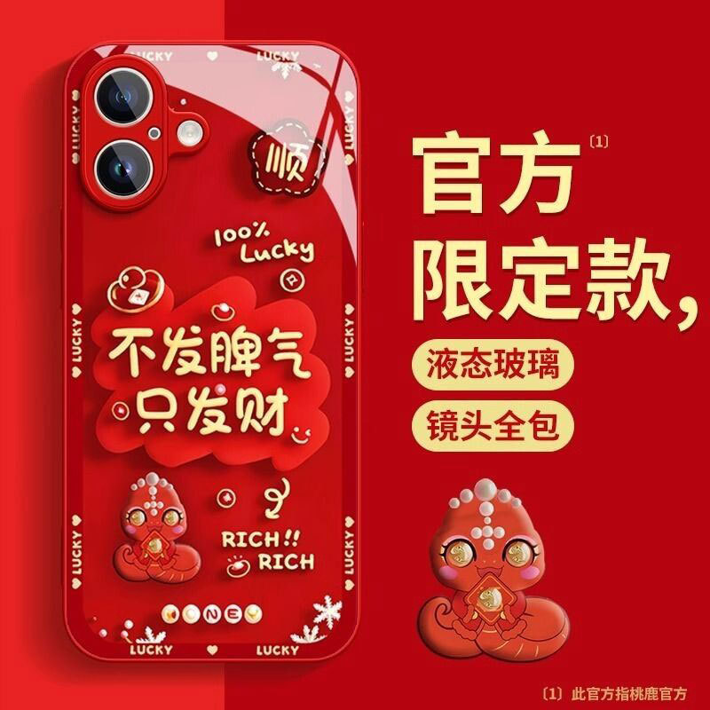 蛇年好运好财玻璃适用苹果16promax手机壳新款phone15pro精孔壳