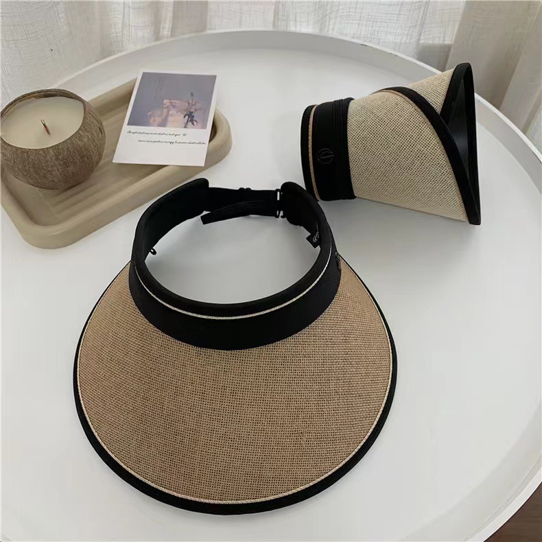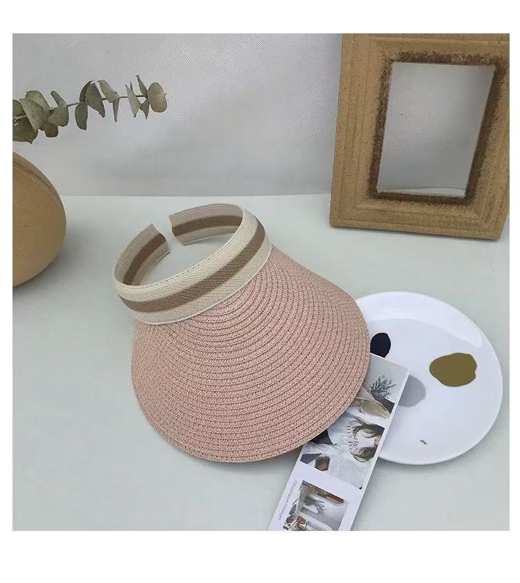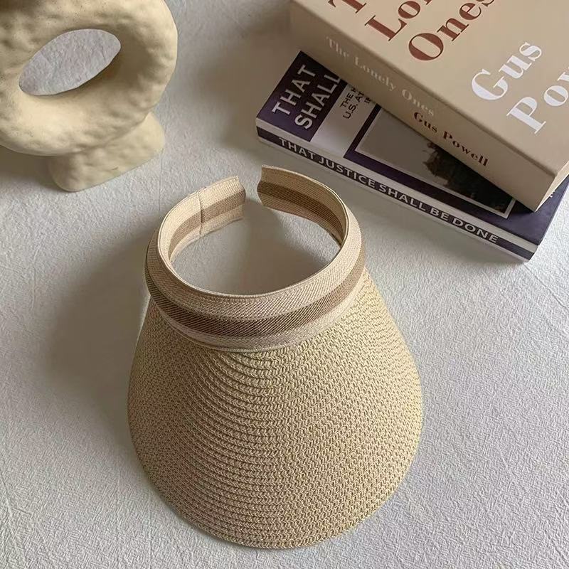 日系骑行发箍帽草编夏季户外大檐防晒空顶帽女甜美百搭遮阳太阳帽
