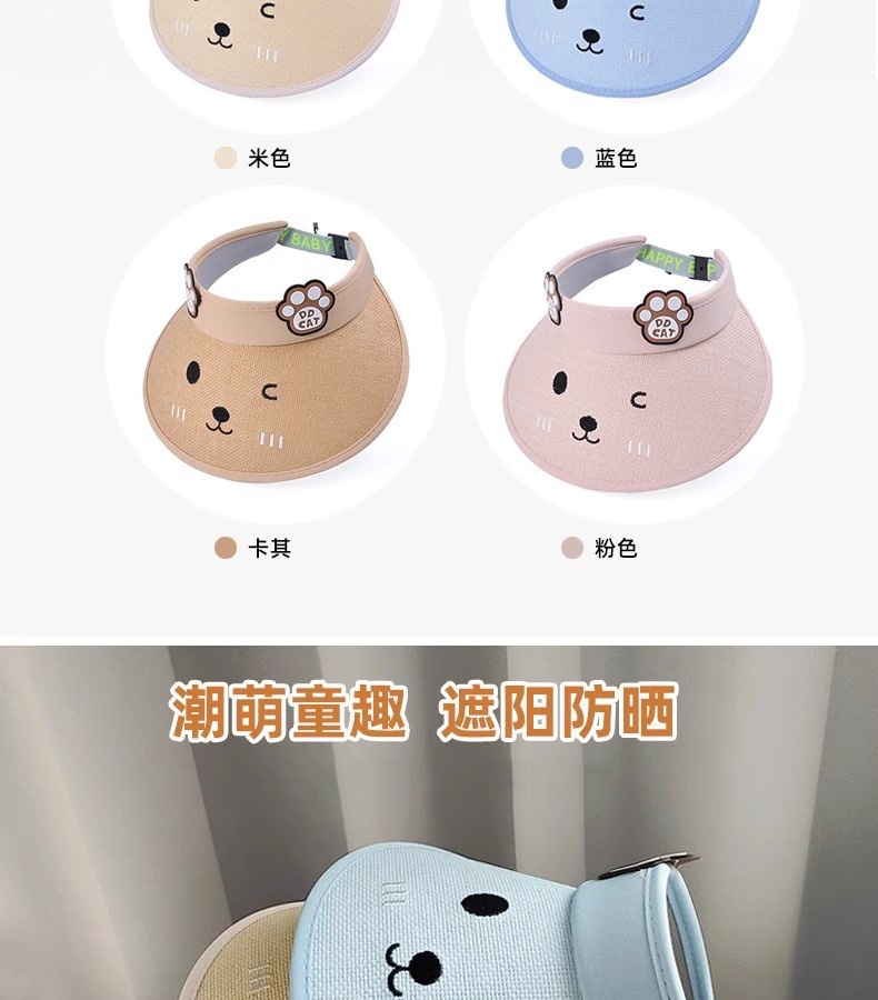 儿童夏季遮阳帽草编卡通可爱猫防晒绣空顶帽透气户外男童女童防晒