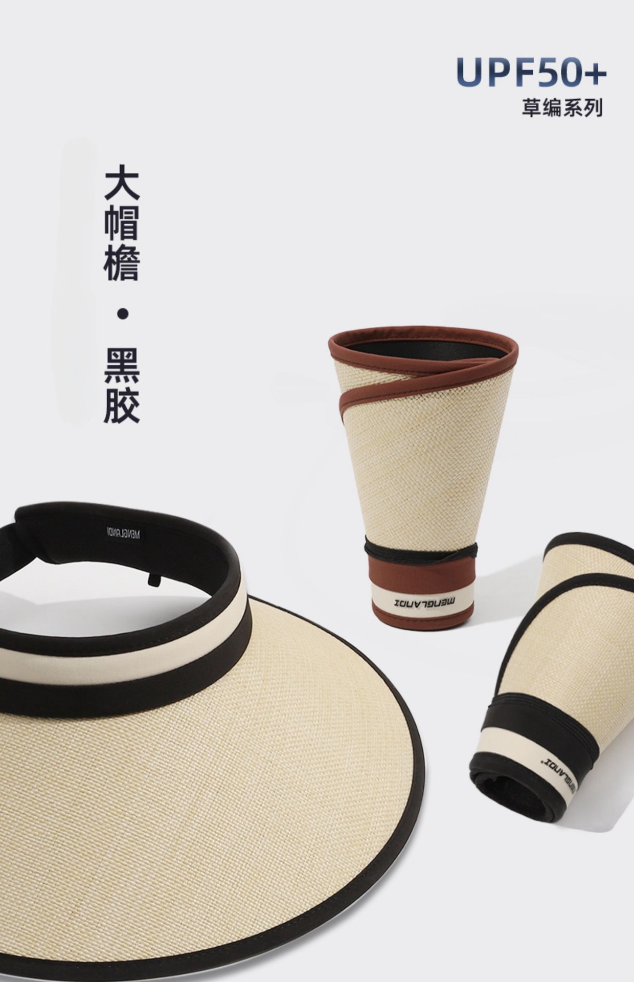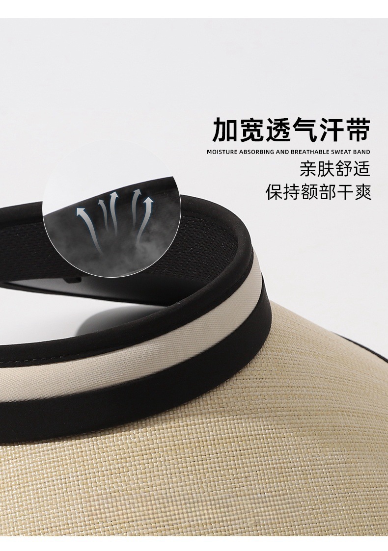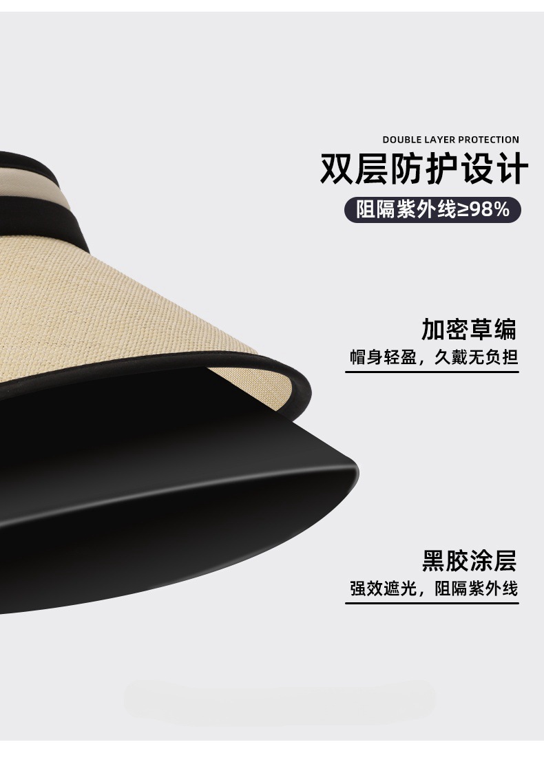 大帽檐防晒帽女夏天防紫外线骑车空顶遮阳沙滩草帽黑胶太阳帽子uv