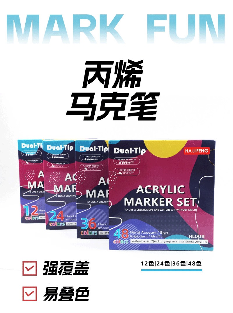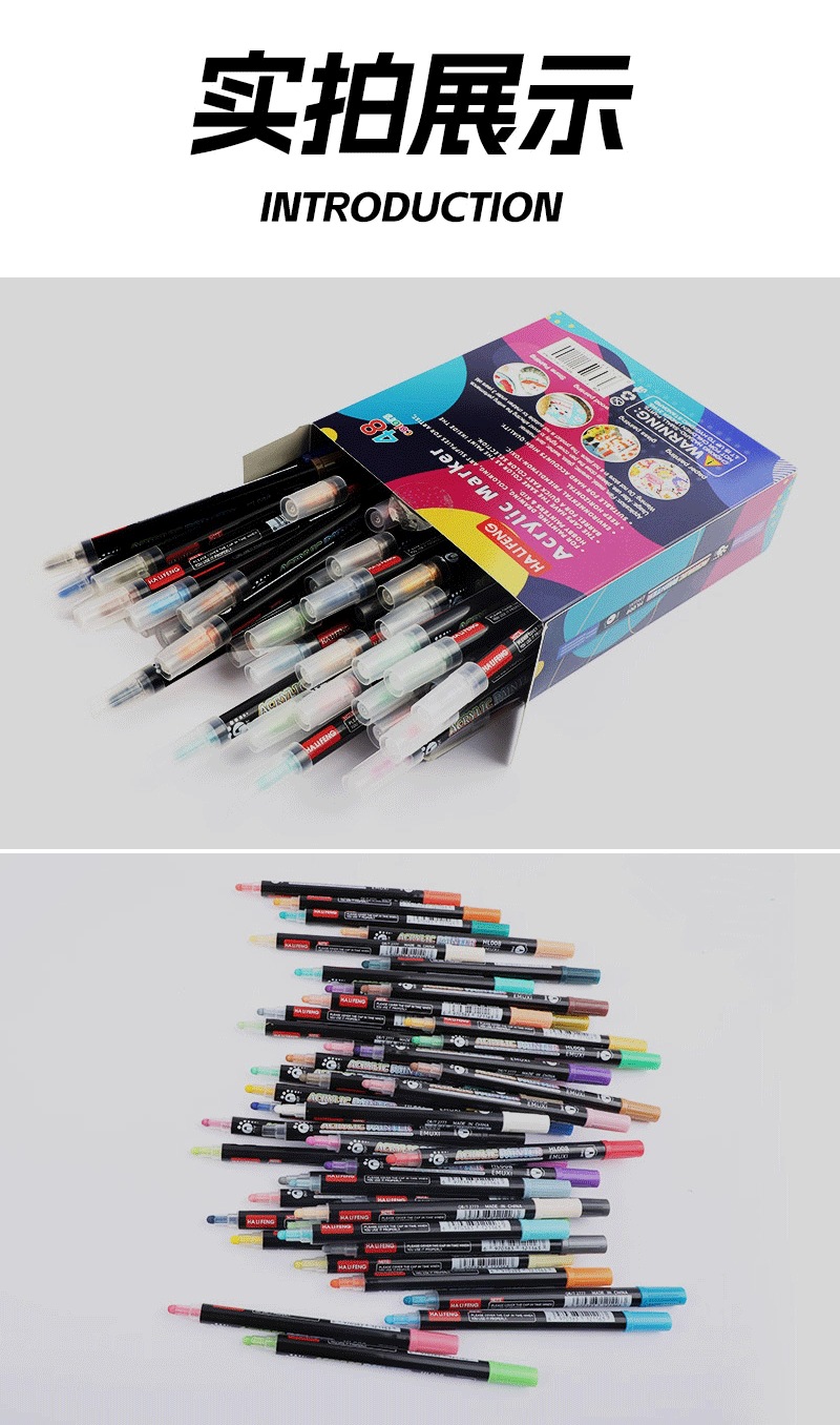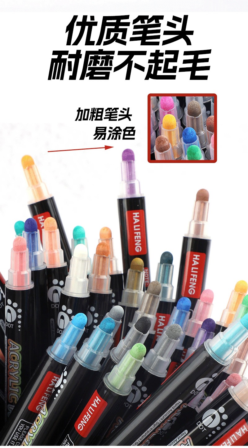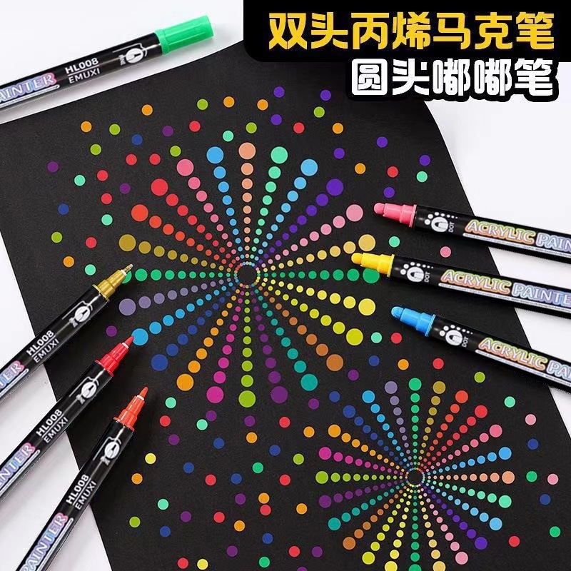 跨境双头丙烯马克笔可叠色软头不透色儿童画笔涂鸦水彩笔嘟嘟头
