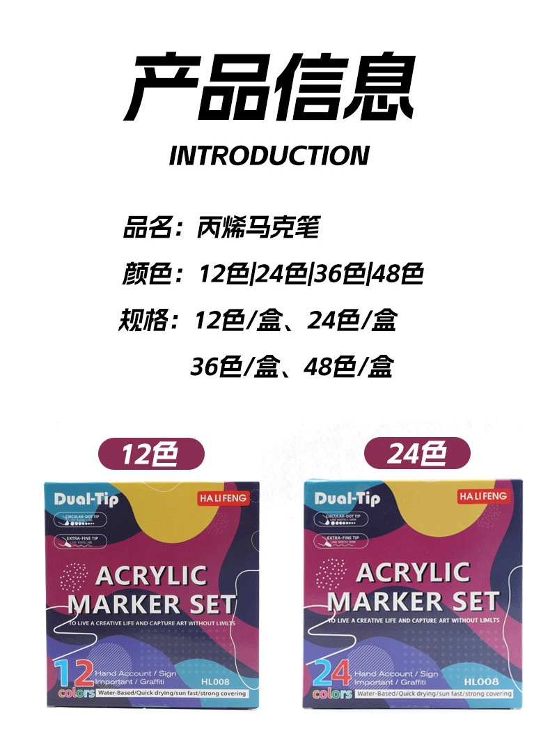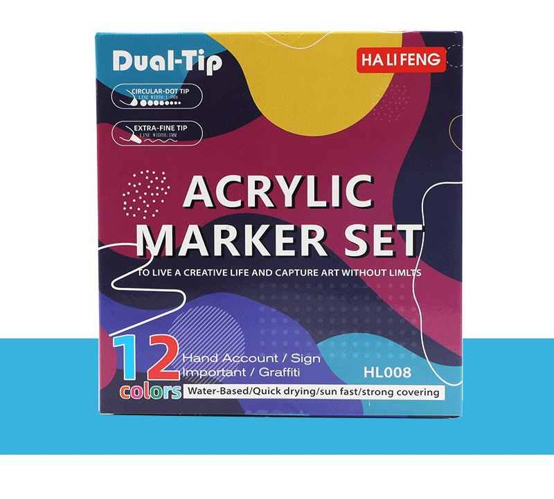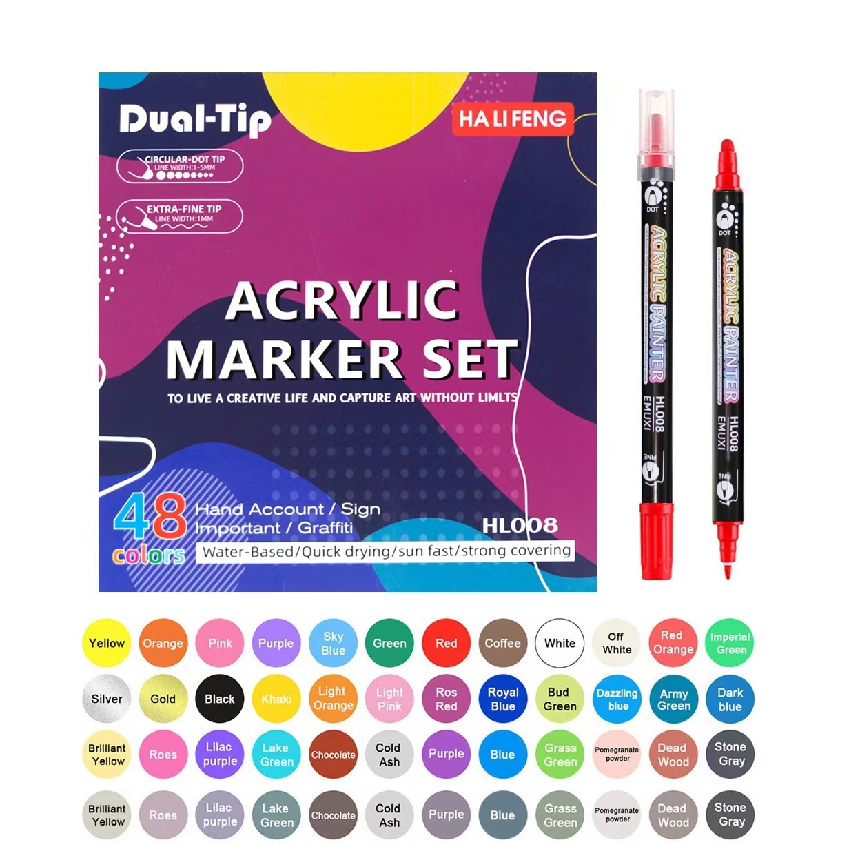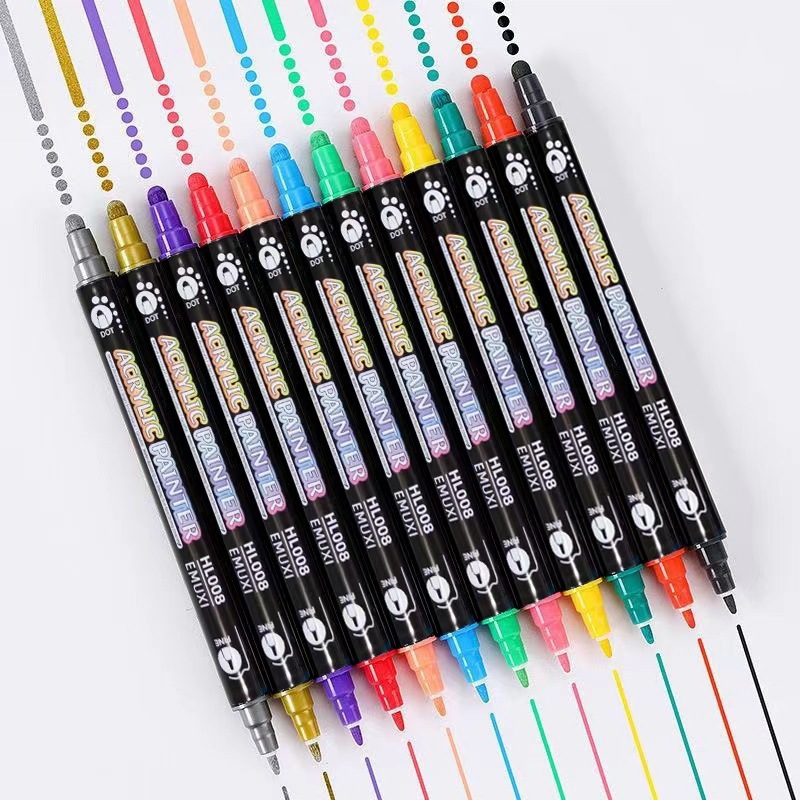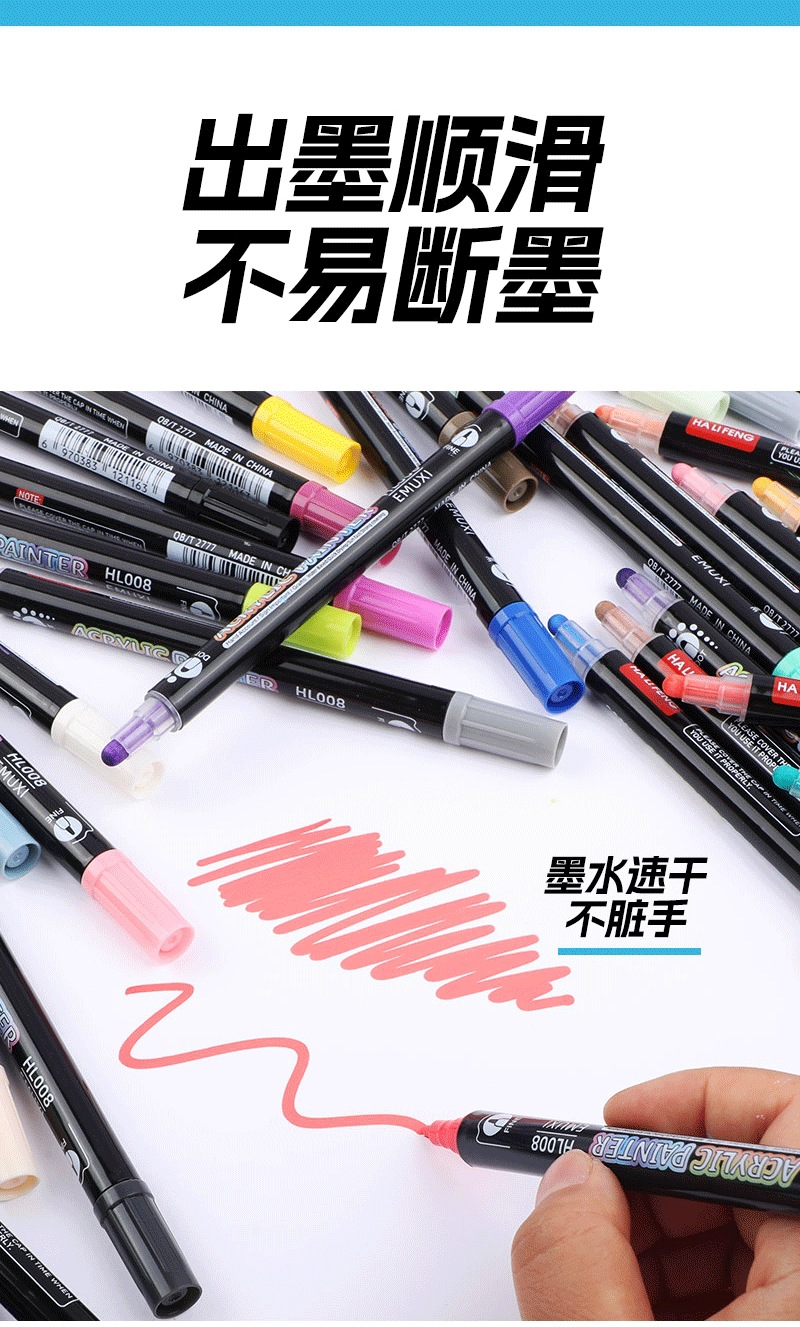 跨境双头丙烯马克笔可叠色软头不透色儿童画笔涂鸦水彩笔嘟嘟头