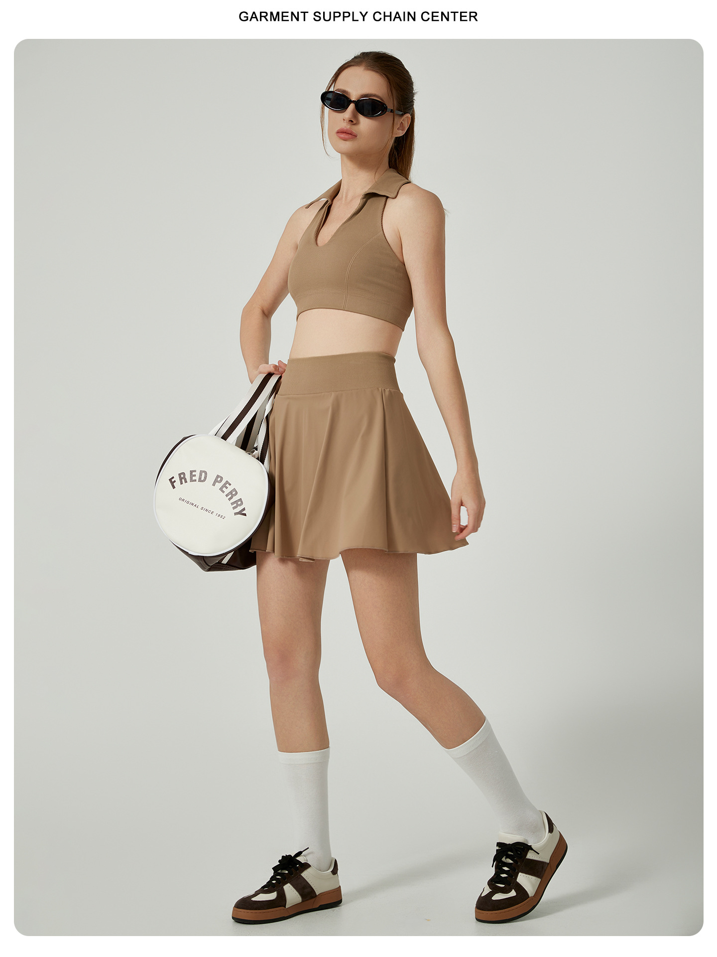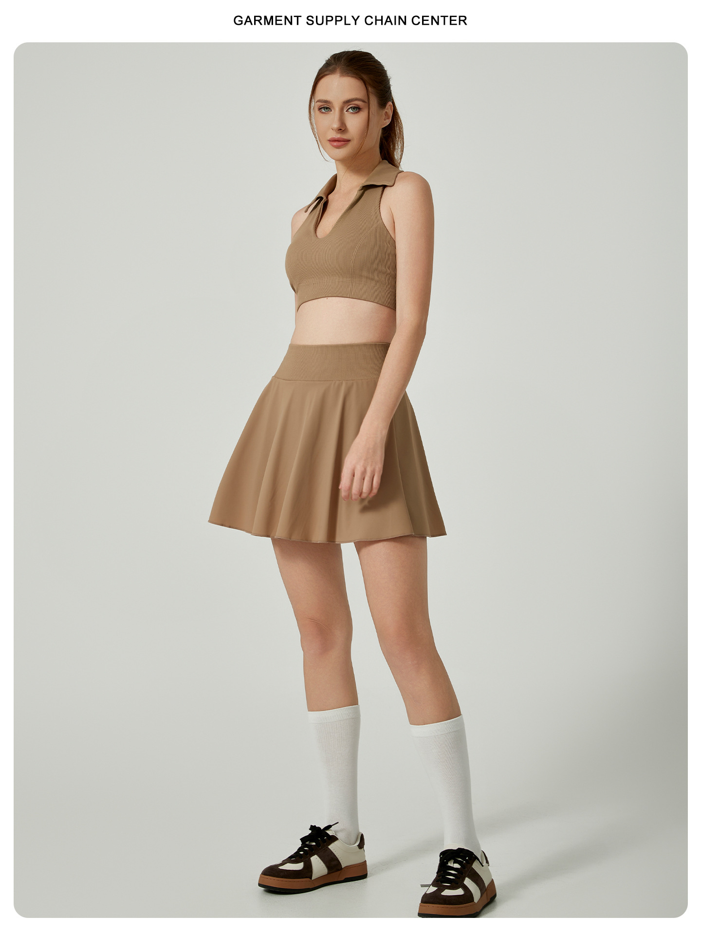跨境翻领背心冰感防紫外线高腰瑜伽短裙网球运动健身速干防晒短裙