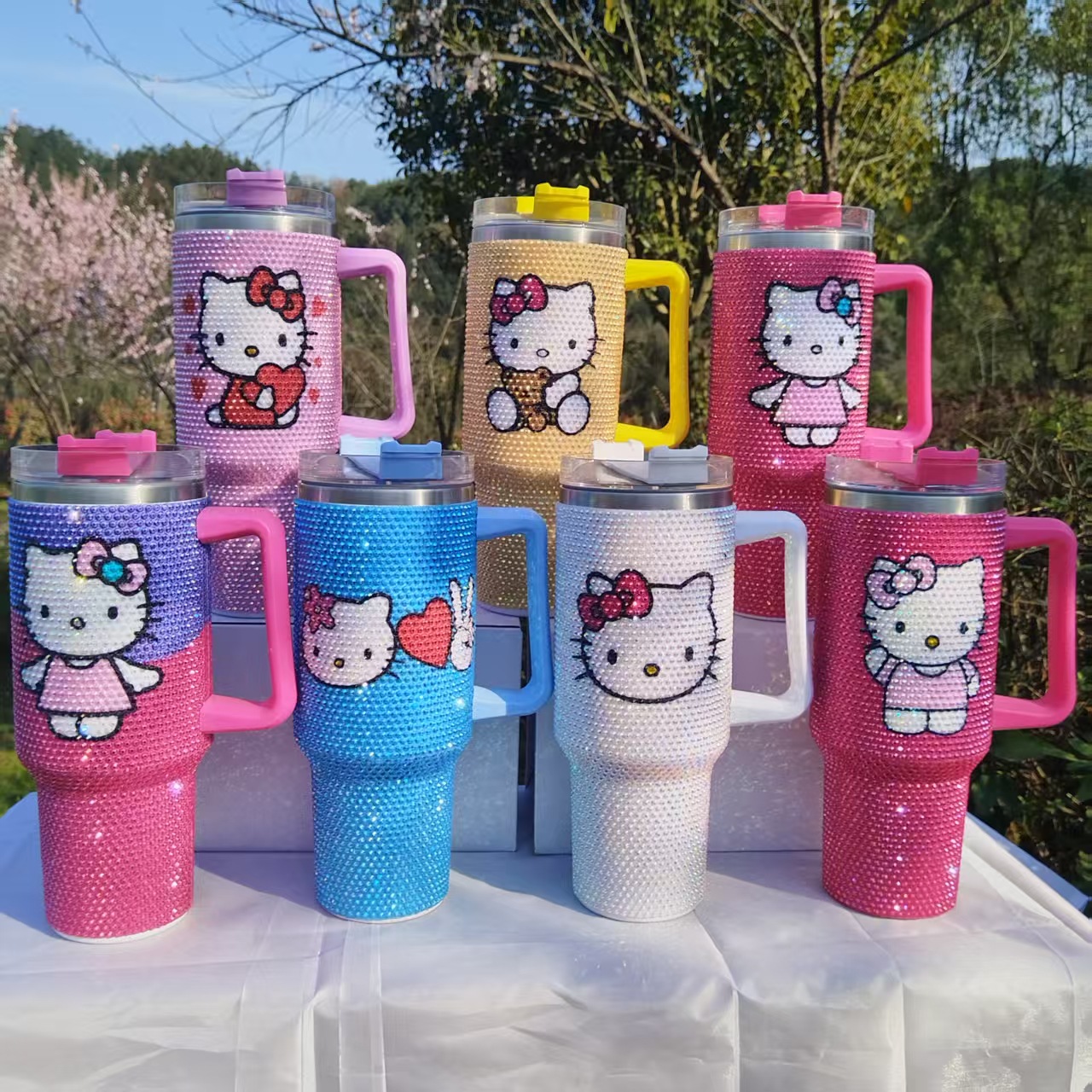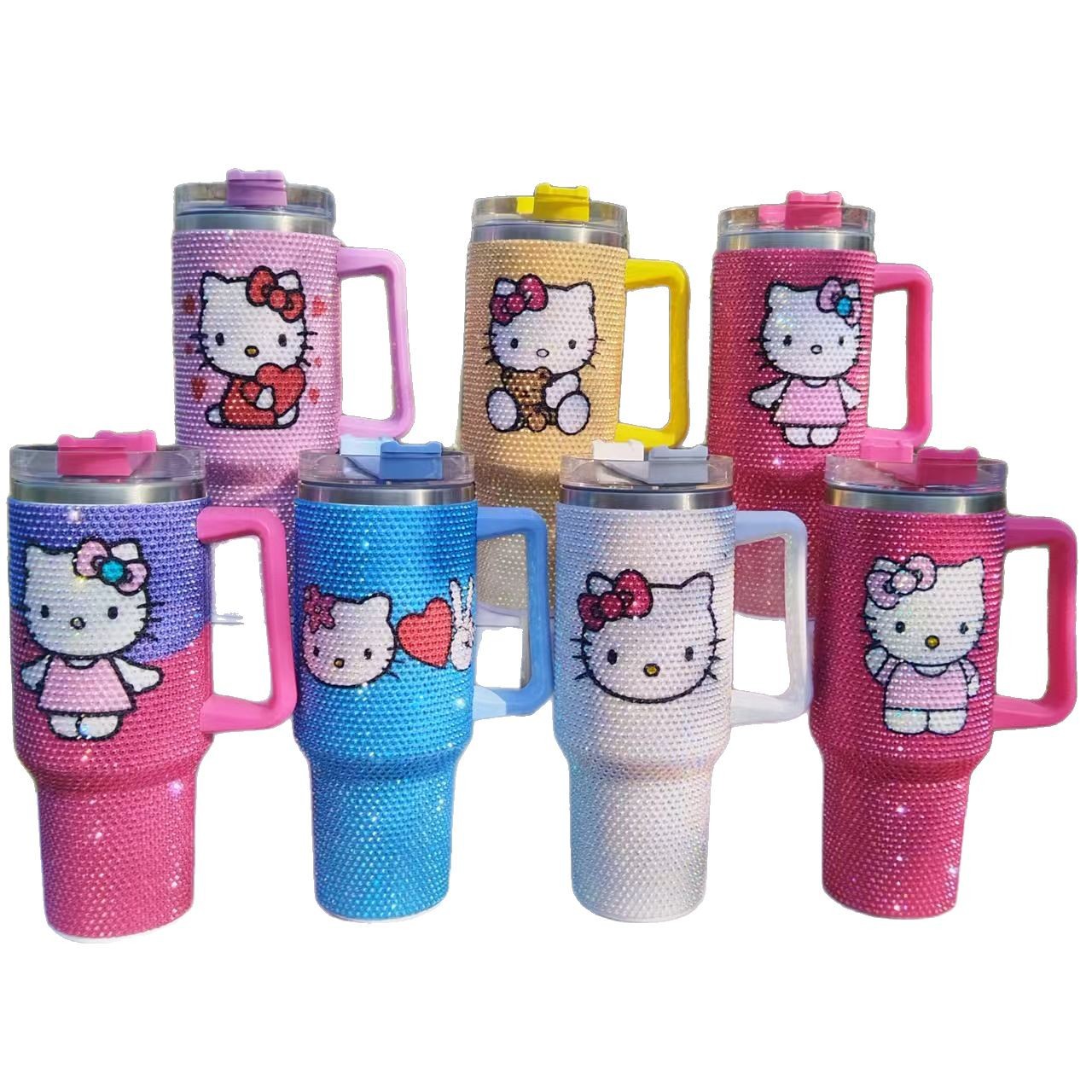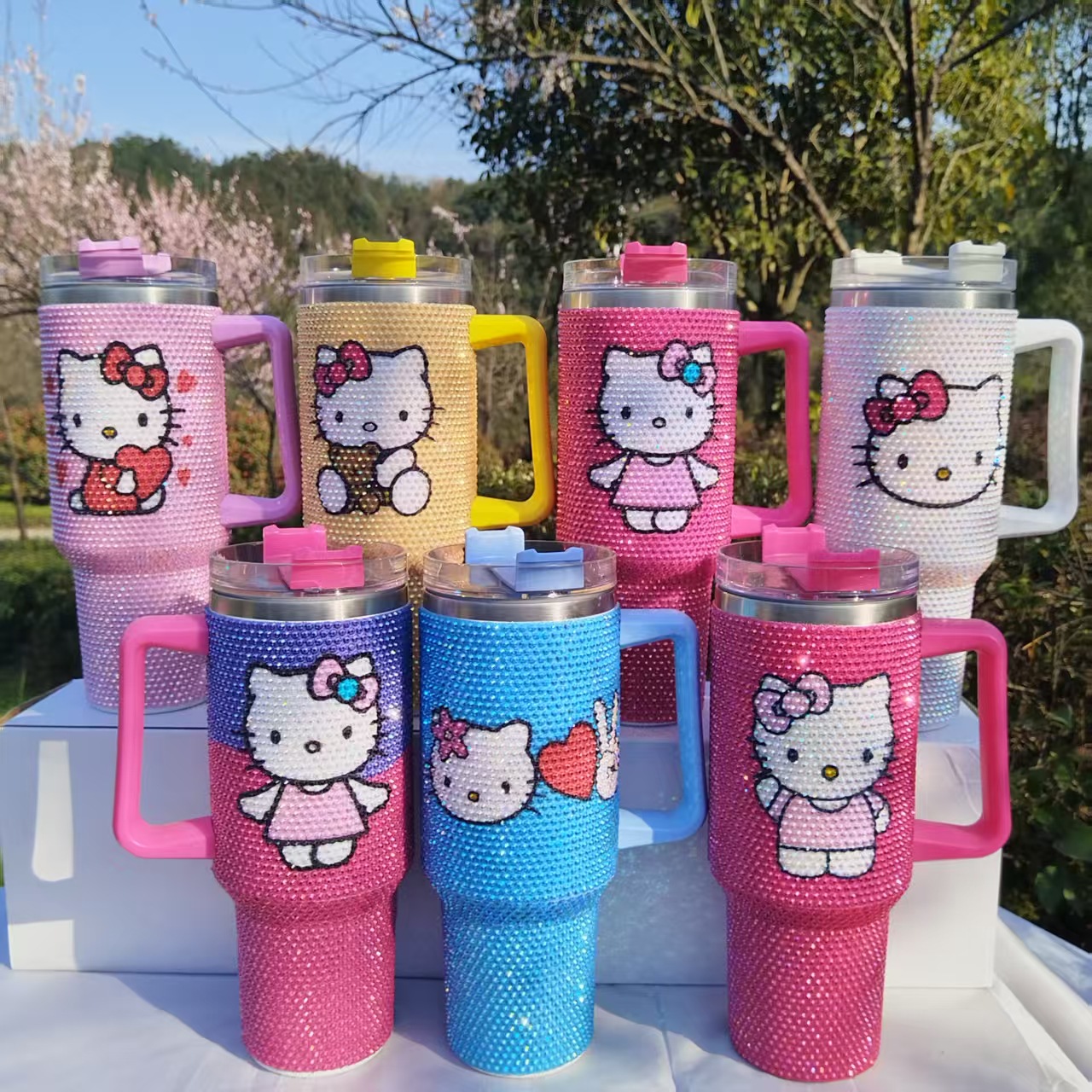 卡通KT猫40oz手柄汽车杯带吸管车载保冷冰霸杯304不锈钢保温杯