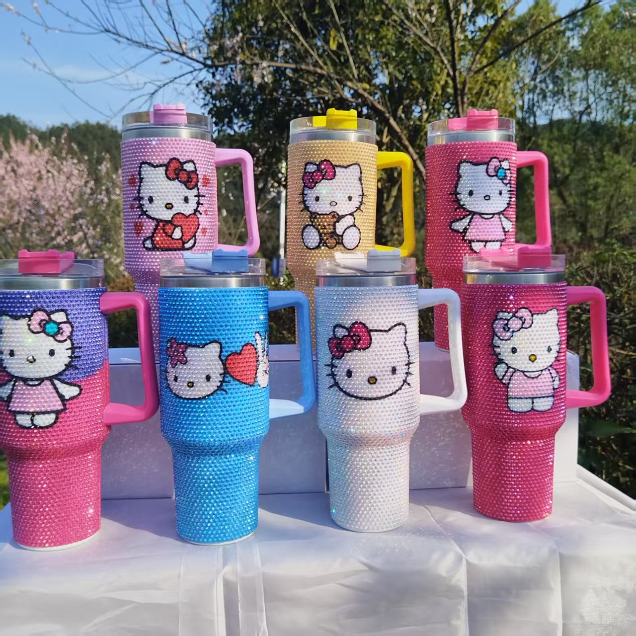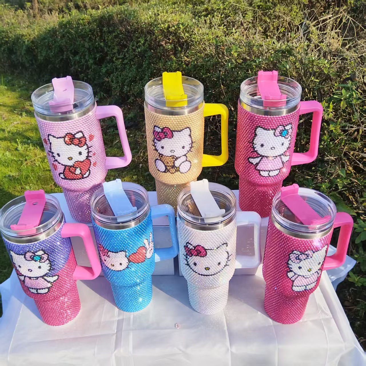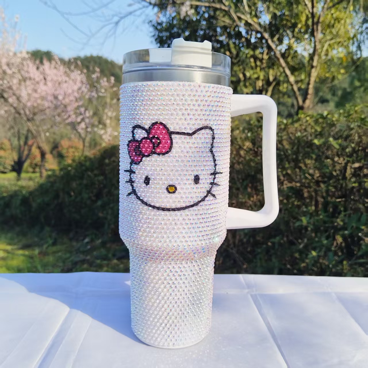 卡通KT猫40oz手柄汽车杯带吸管车载保冷冰霸杯304不锈钢保温杯