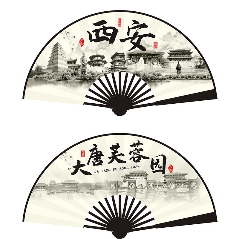 10寸景区折扇纪念品旅游文创纪念品绢布扇子竹制工艺扇国潮扇