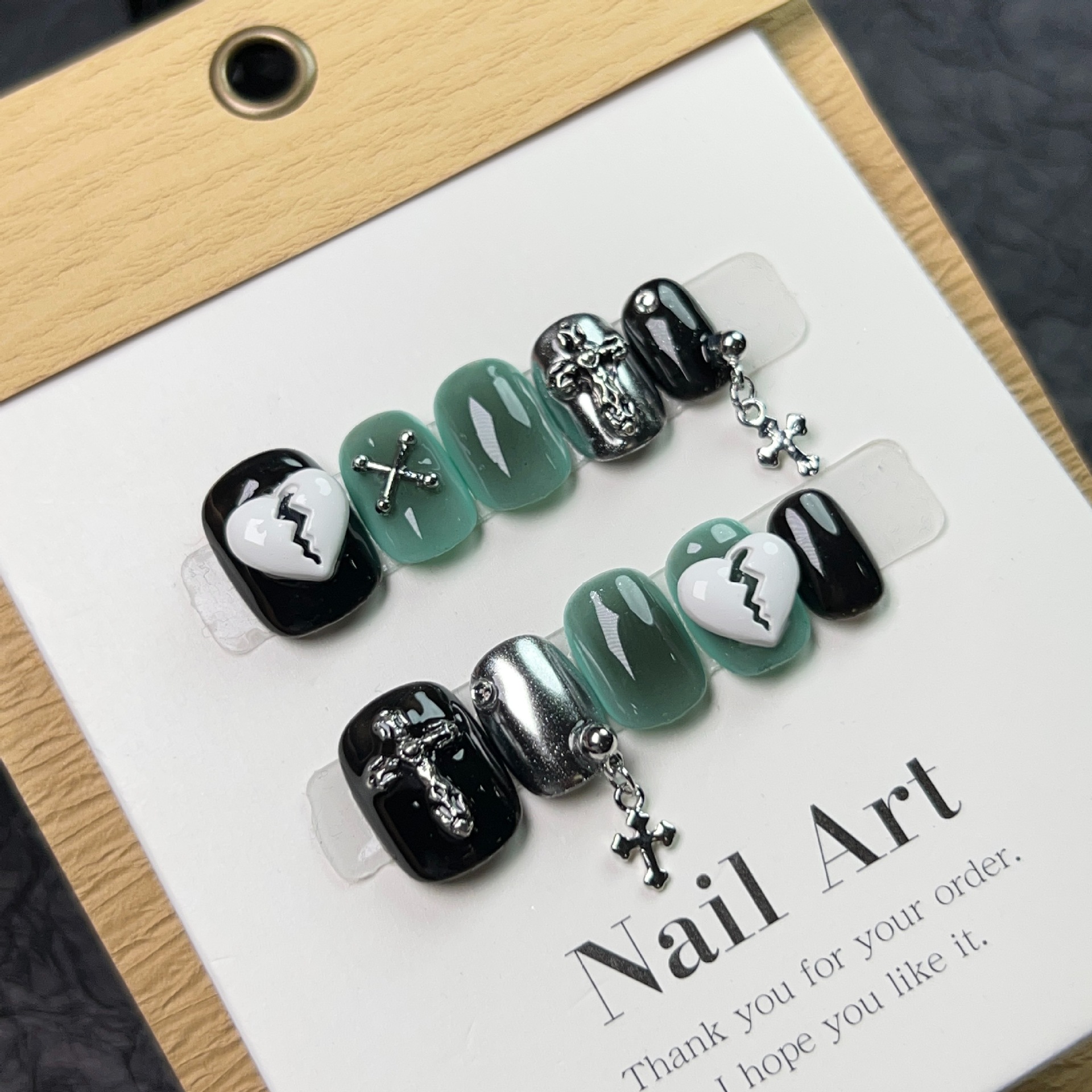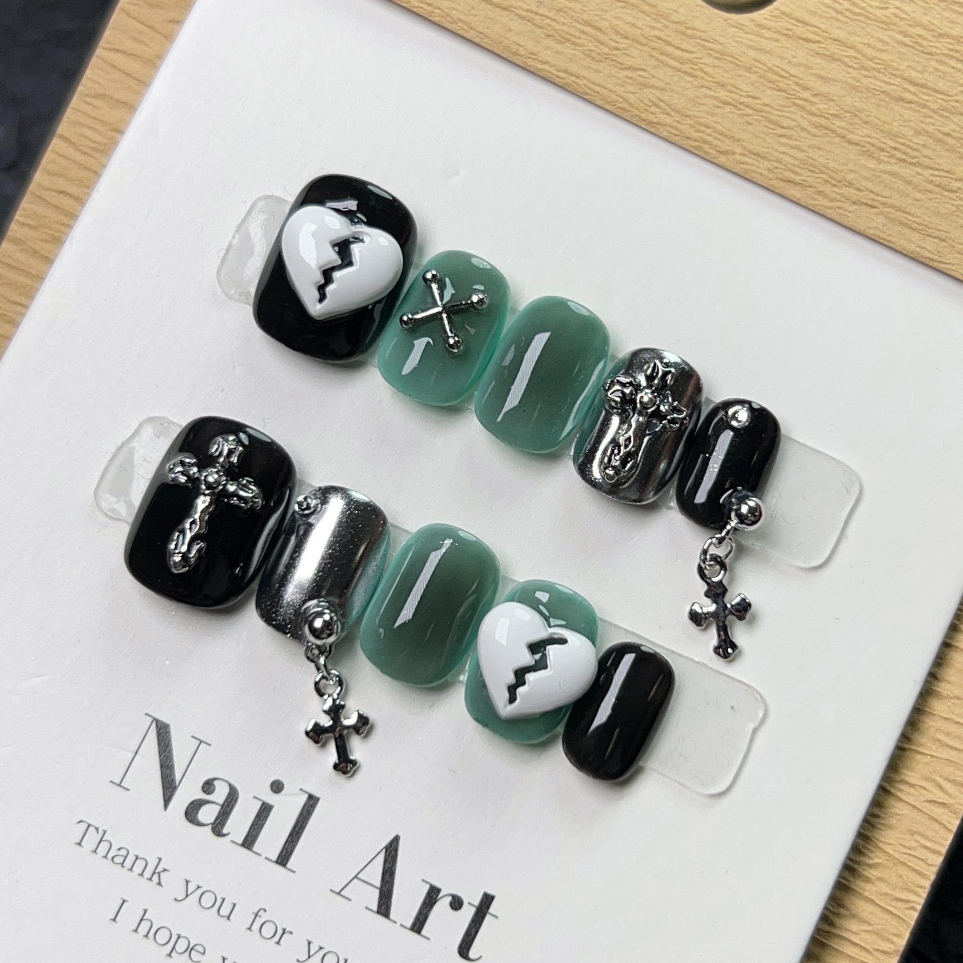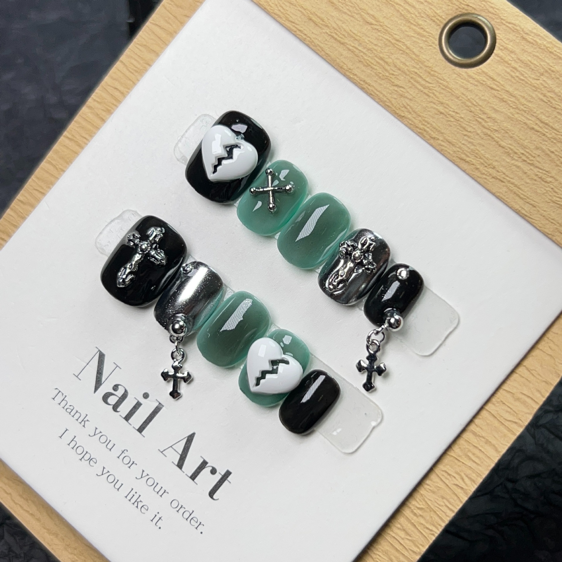 纯手工穿戴甲Y2K暗黑系显白 克罗心十字架链条美甲欧美风光疗甲片