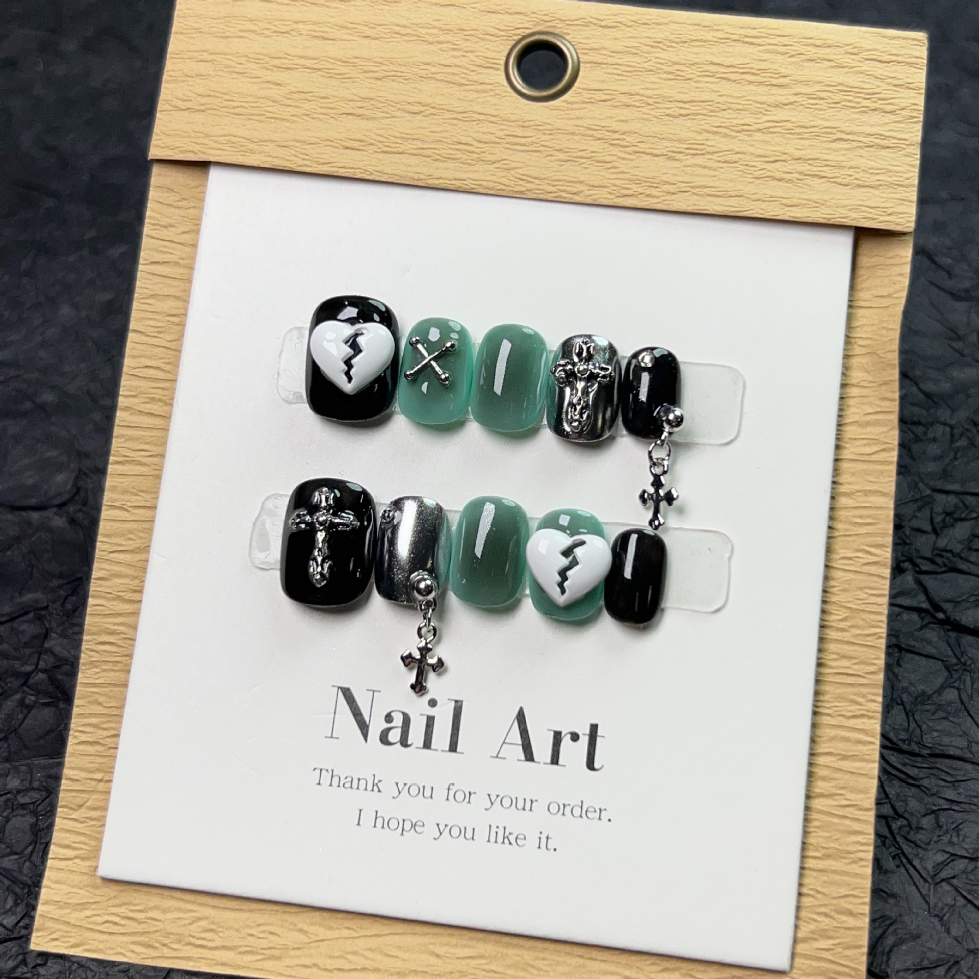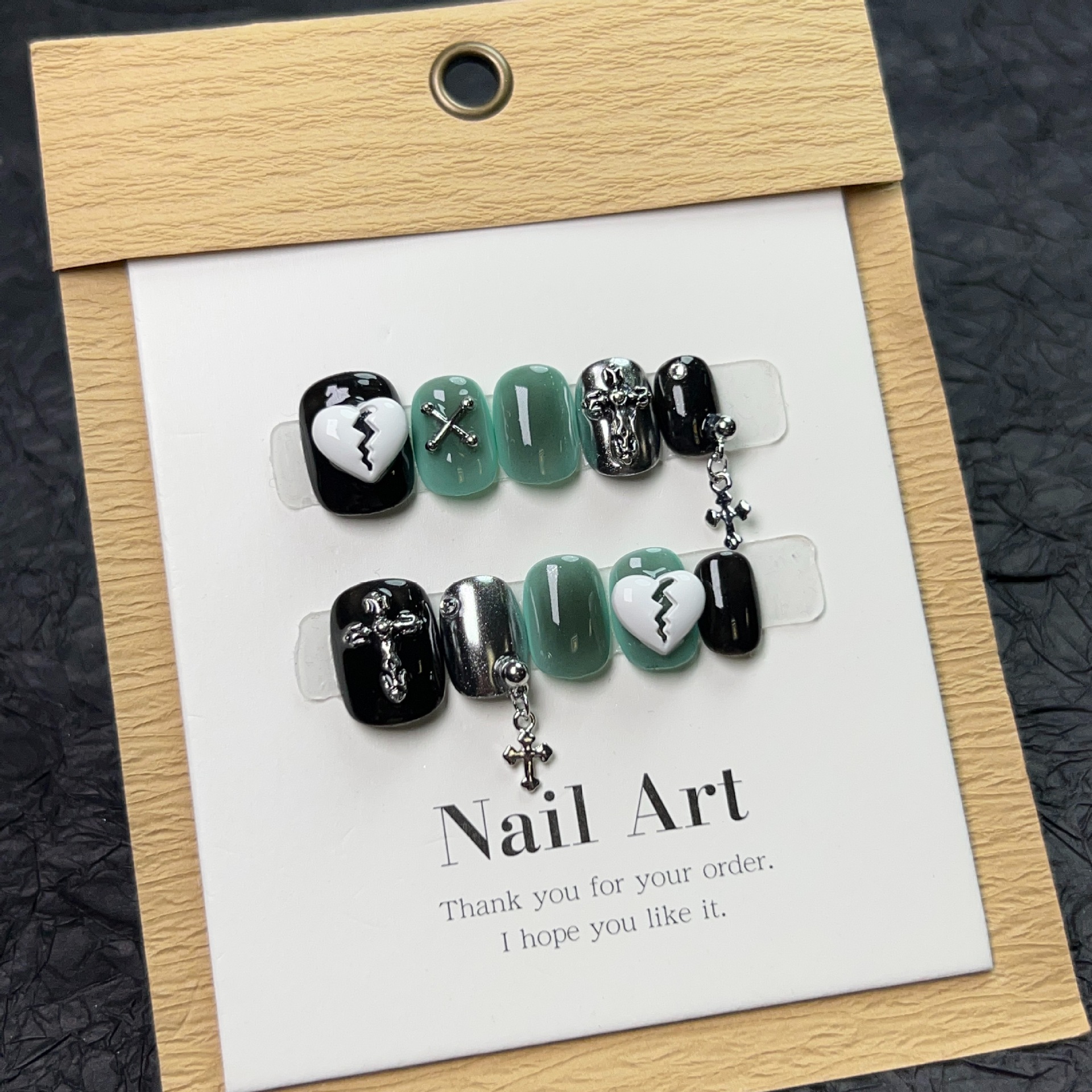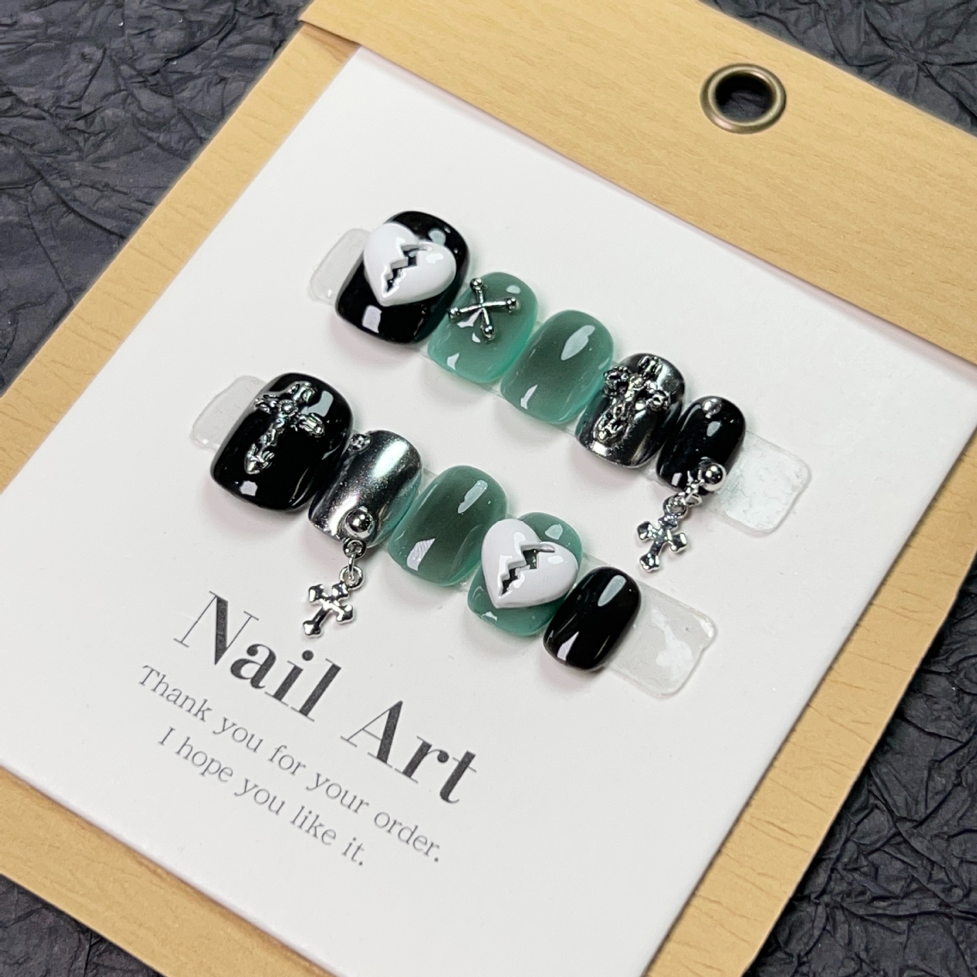 纯手工穿戴甲Y2K暗黑系显白 克罗心十字架链条美甲欧美风光疗甲片