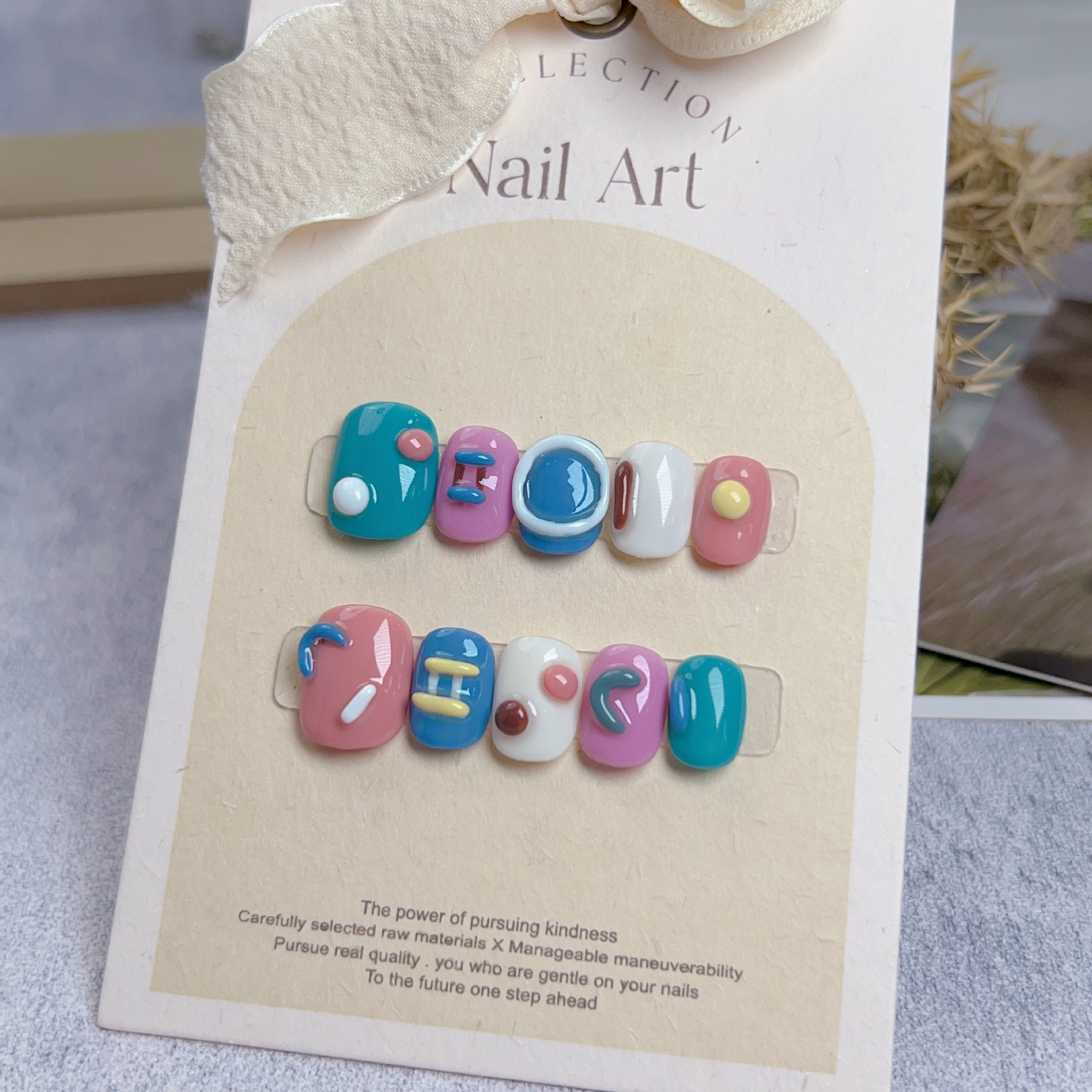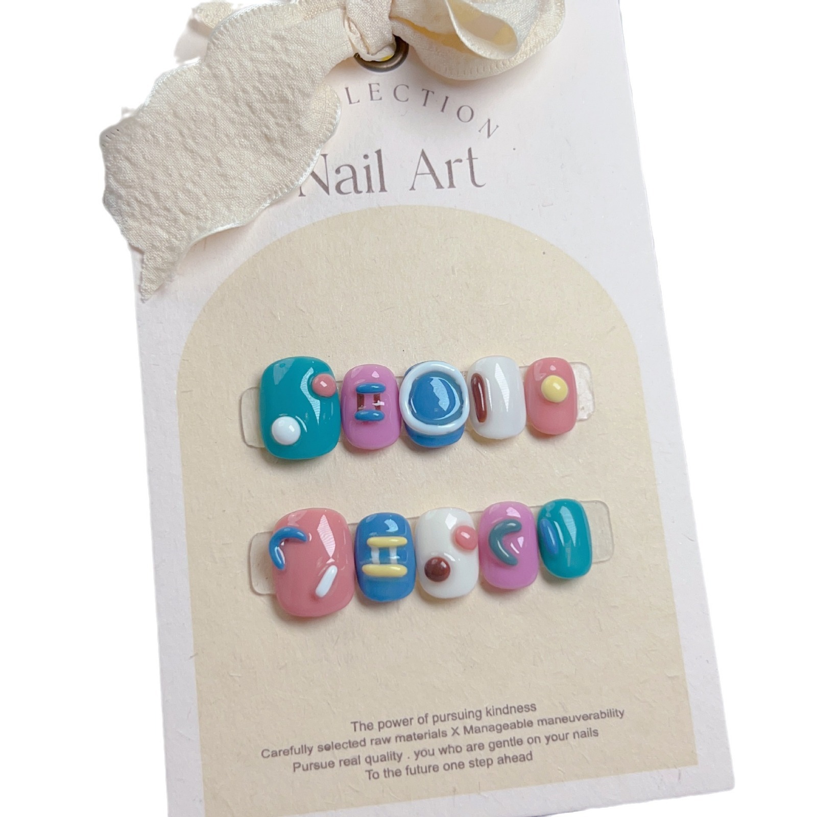 手工穿戴甲短款可爱马卡龙配色可拆卸纯欲风可爱学生爆款美甲日系