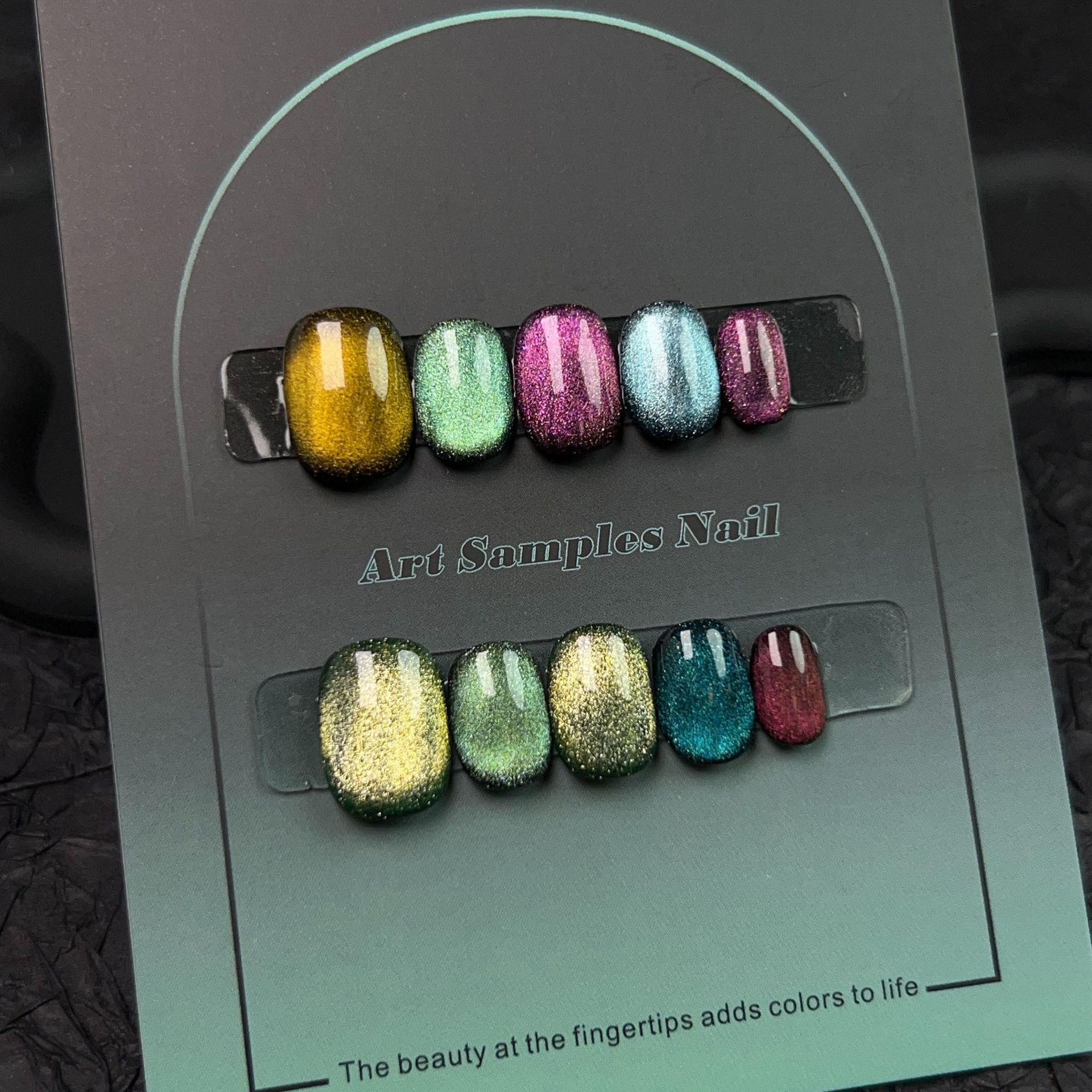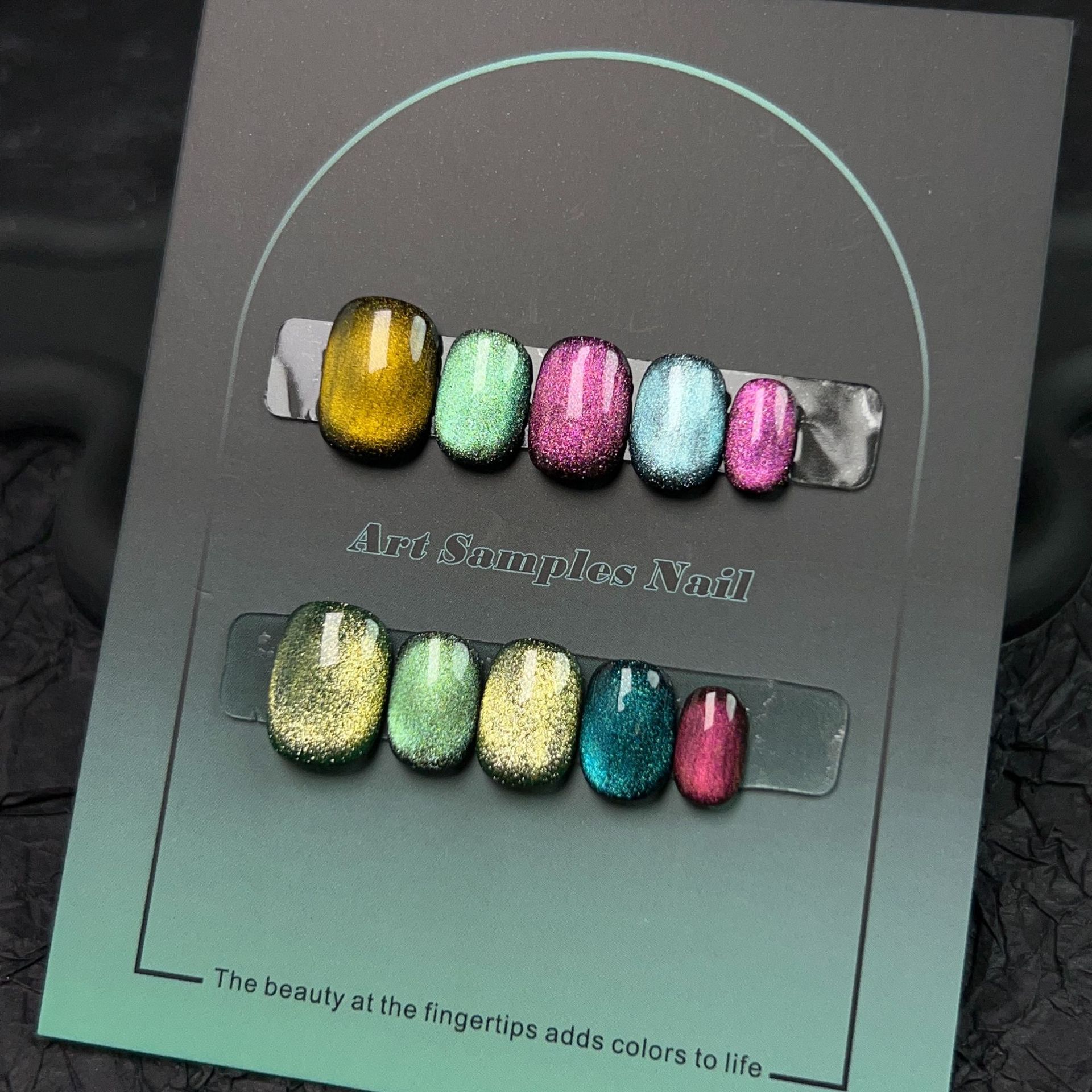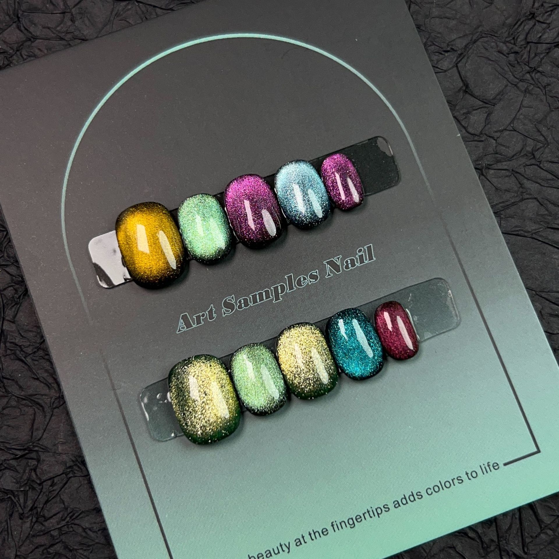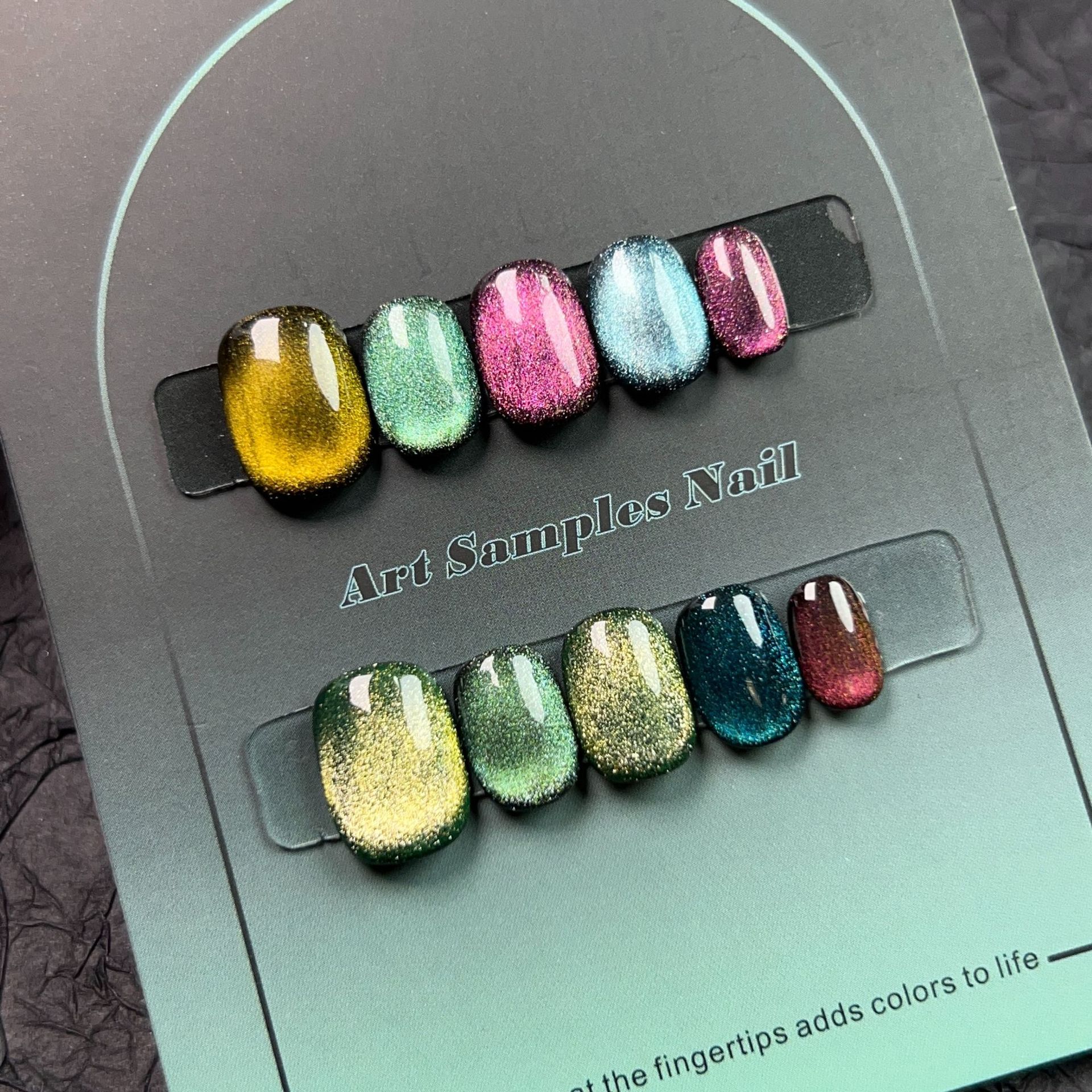 纯手工穿戴甲五彩猫眼欧美风短方圆学生甲片可拆卸重复使用美甲片