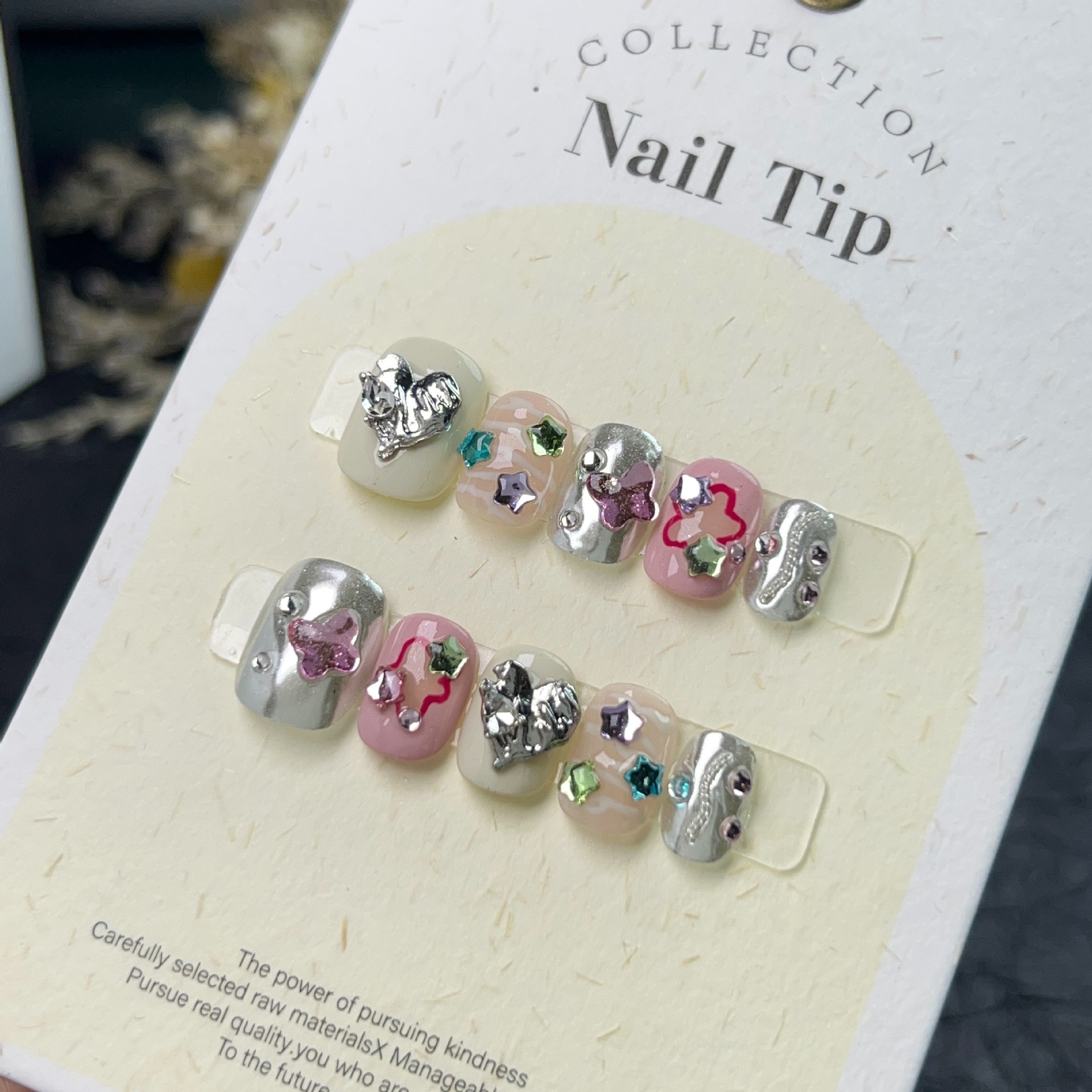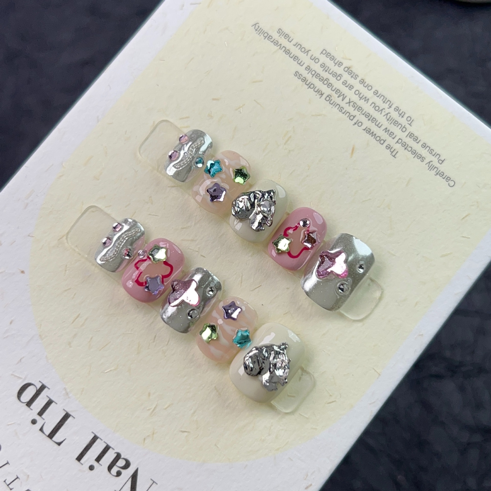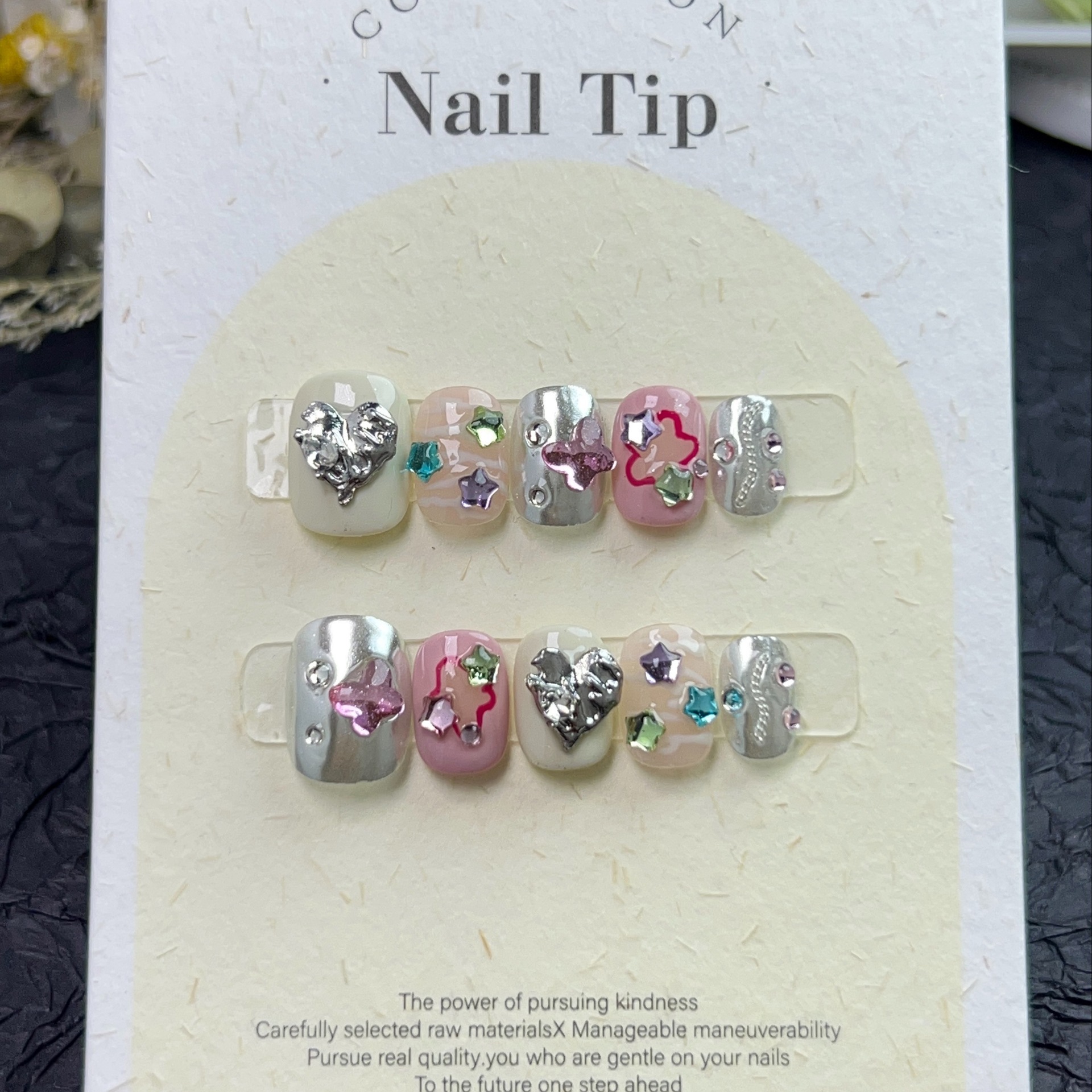 纯手工穿戴甲金属Y2K五彩钻 甜酷学生甲可拆卸甲片可爱星星穿戴甲