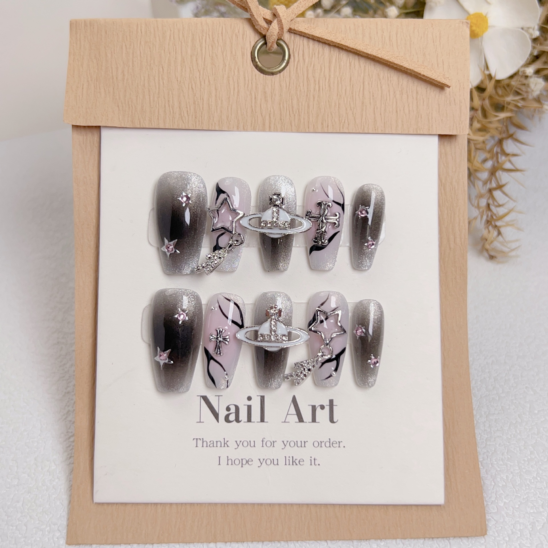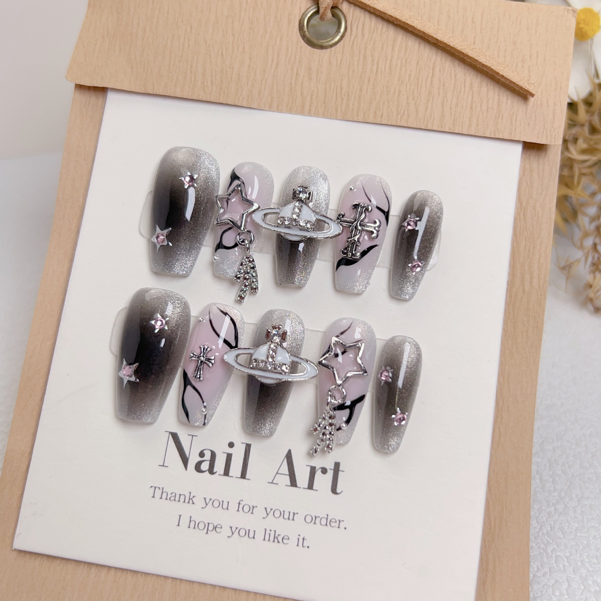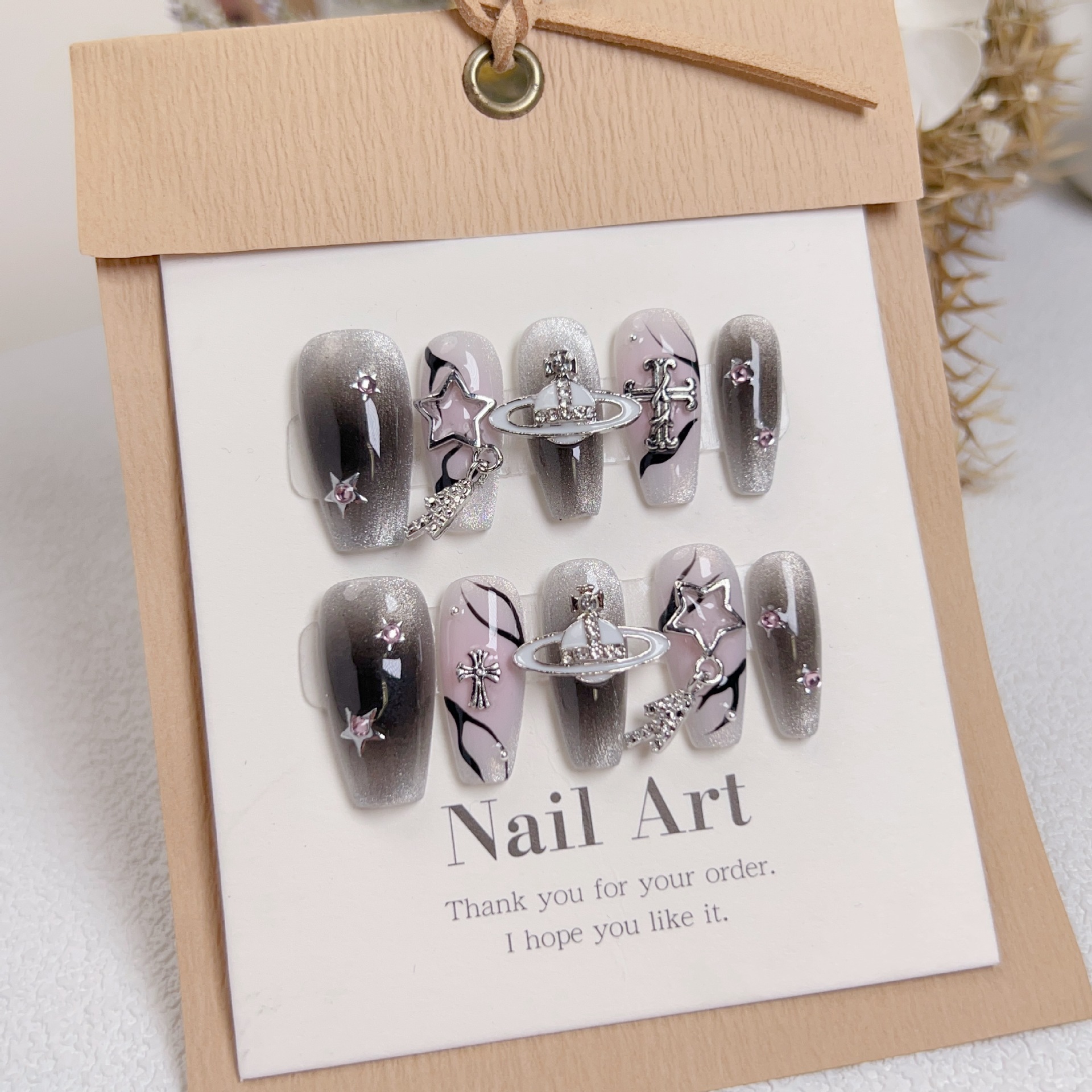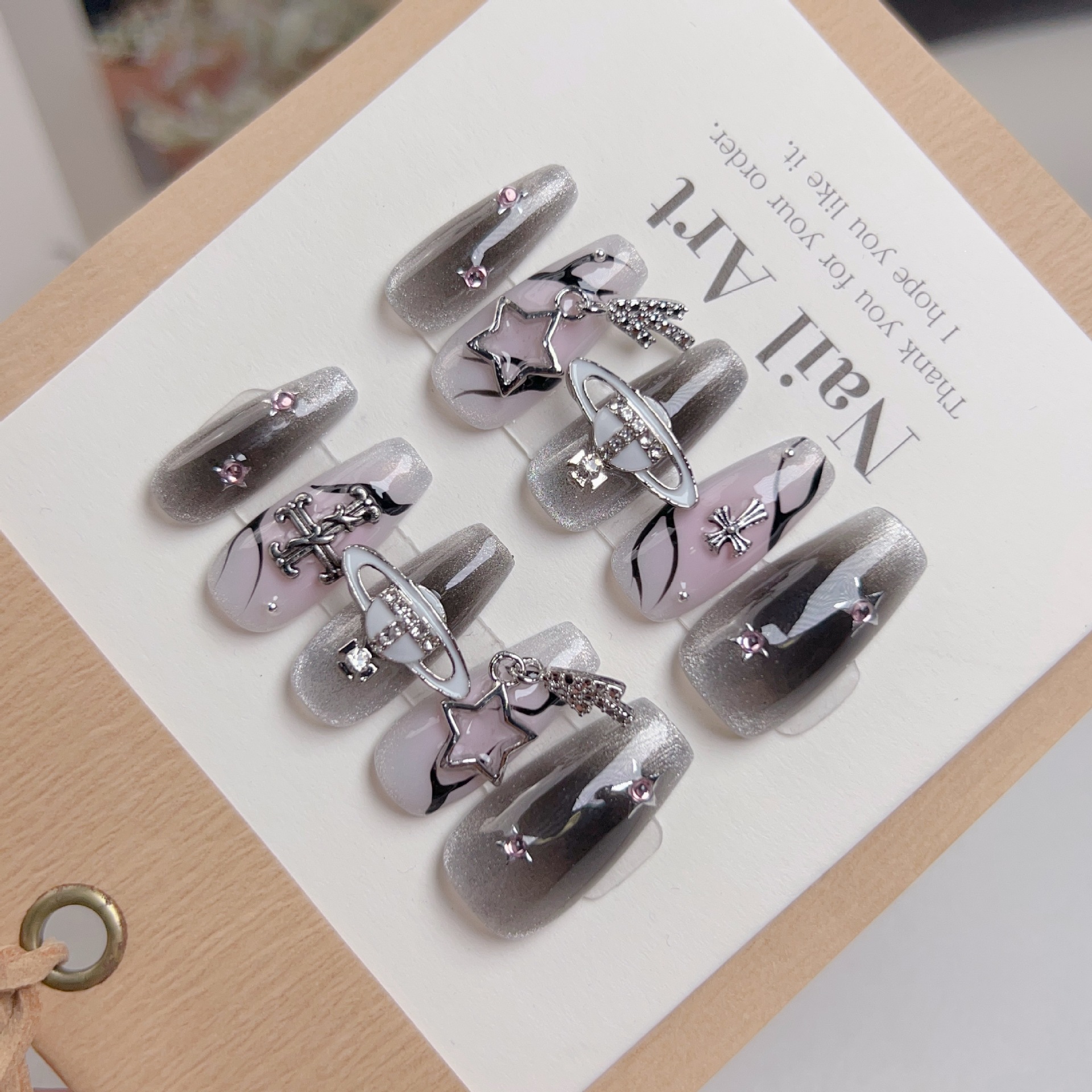 穿戴甲复古甜心克罗心猫眼朋克风十字架六芒星爱心美甲可拆卸甲片