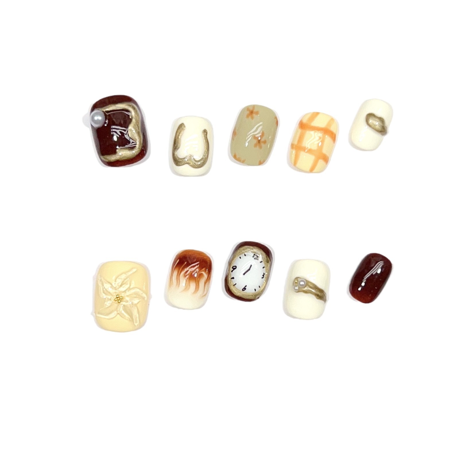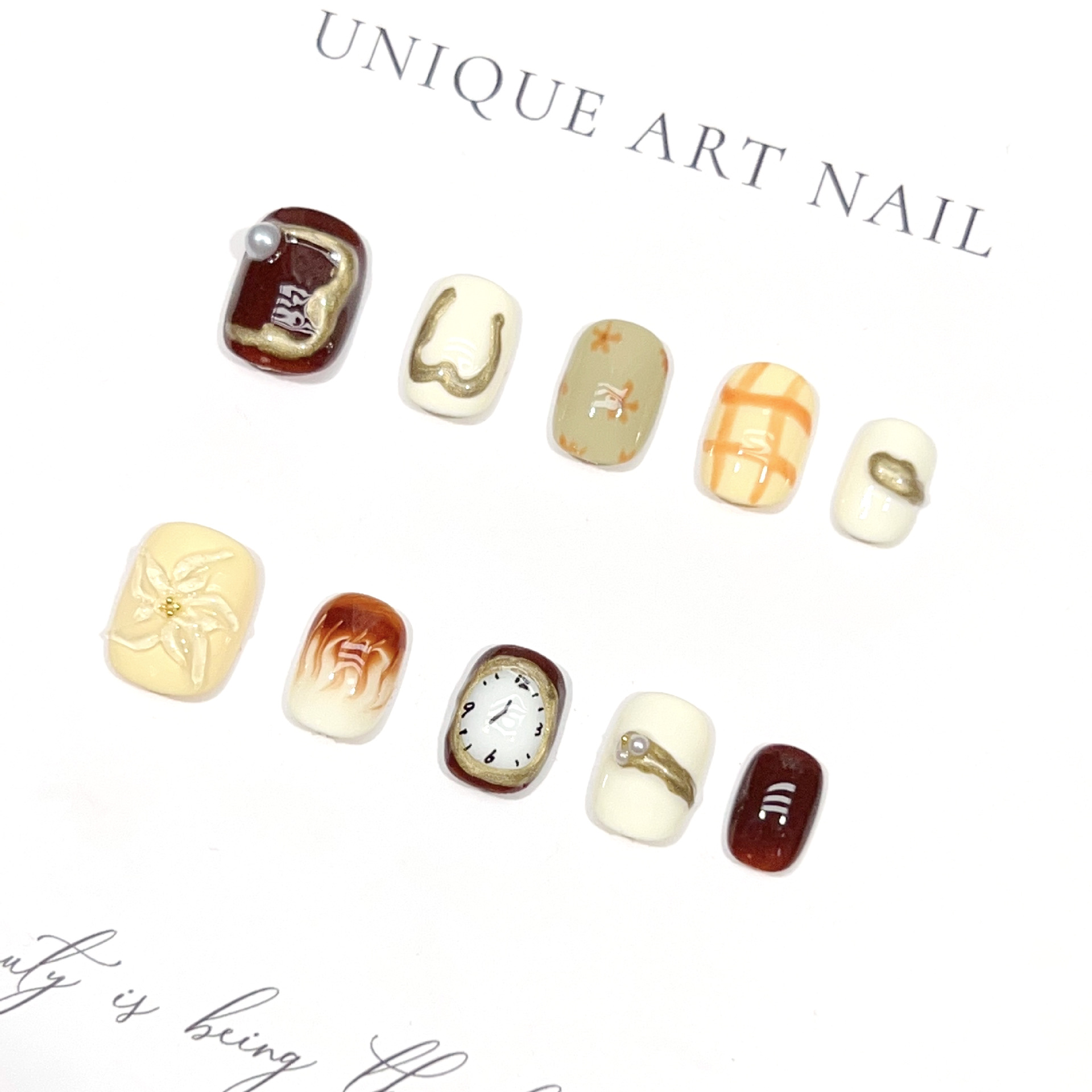 白驹过隙纯手工穿戴甲短款纯色跳色手绘美甲贴可爱花花可拆卸甲片
