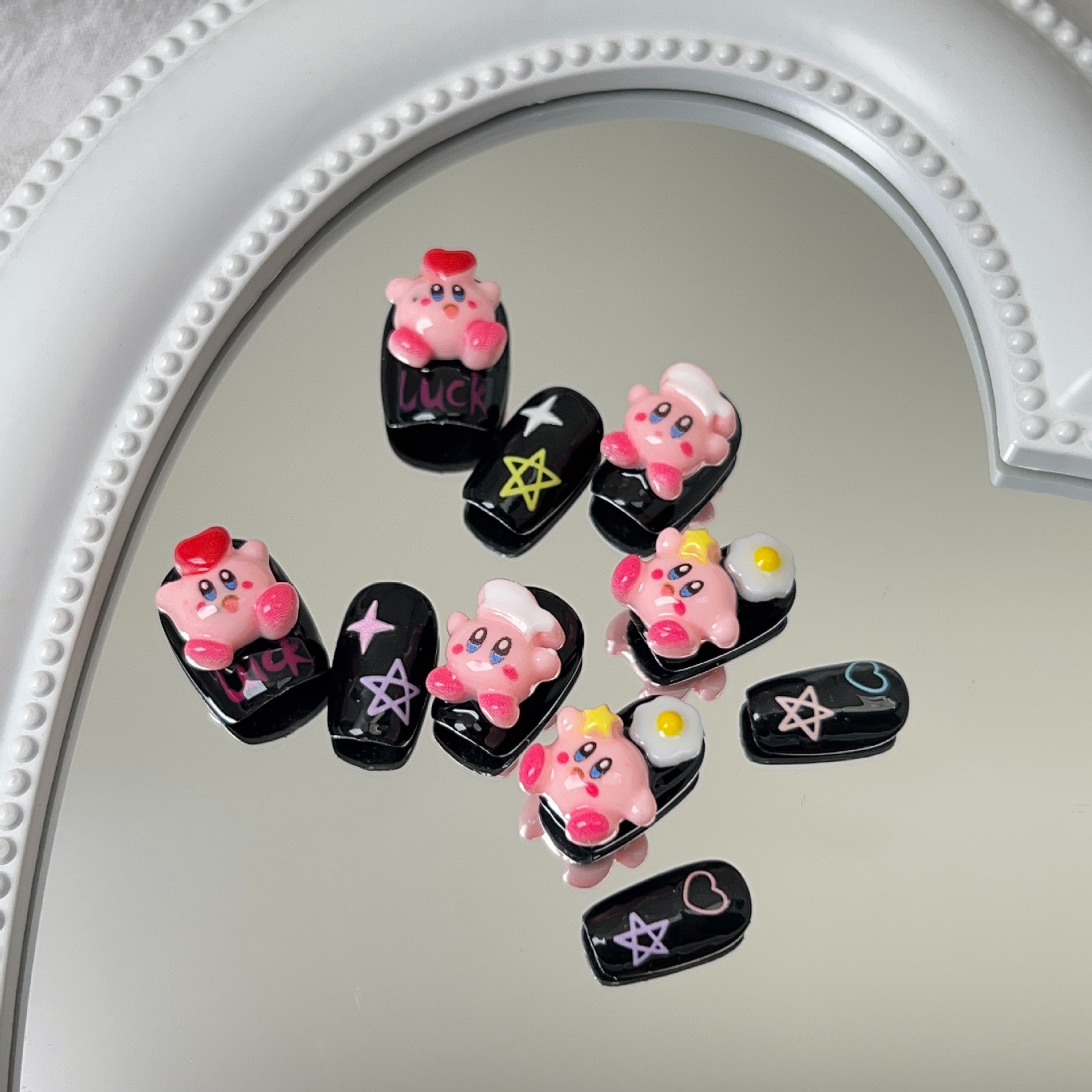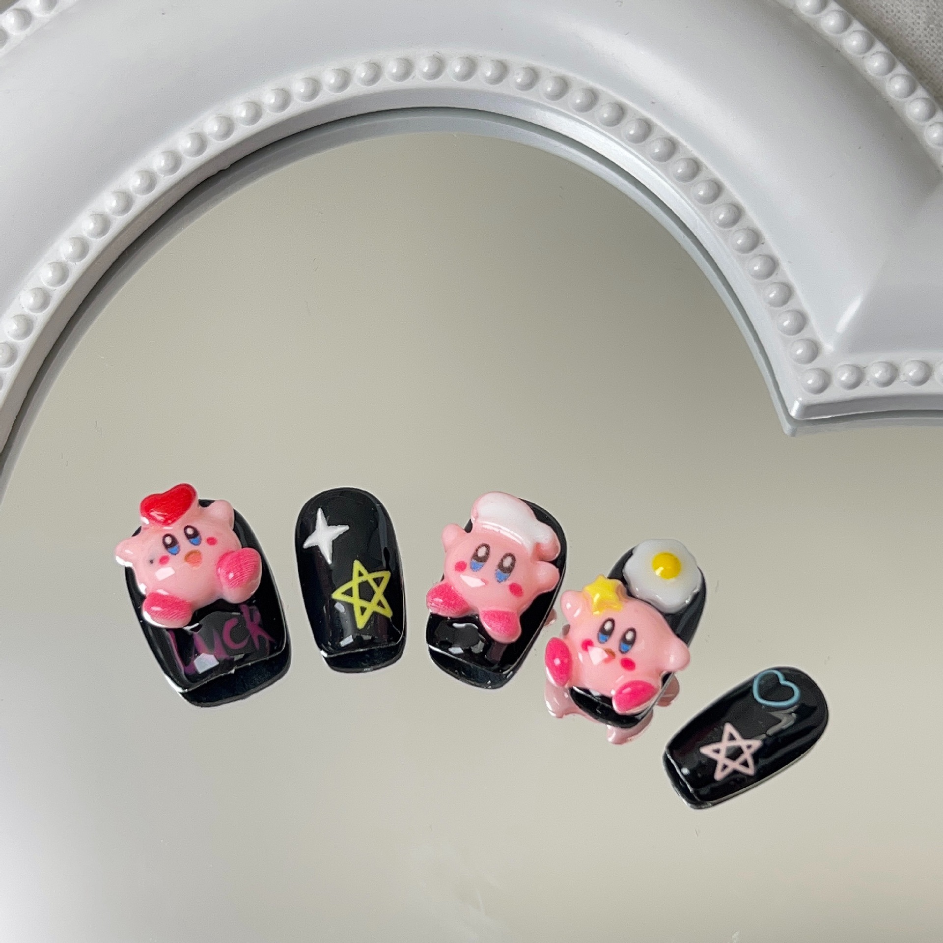 纯手工美甲可爱星之卡比公仔学生风穿戴甲片可拆卸重复使用美甲片