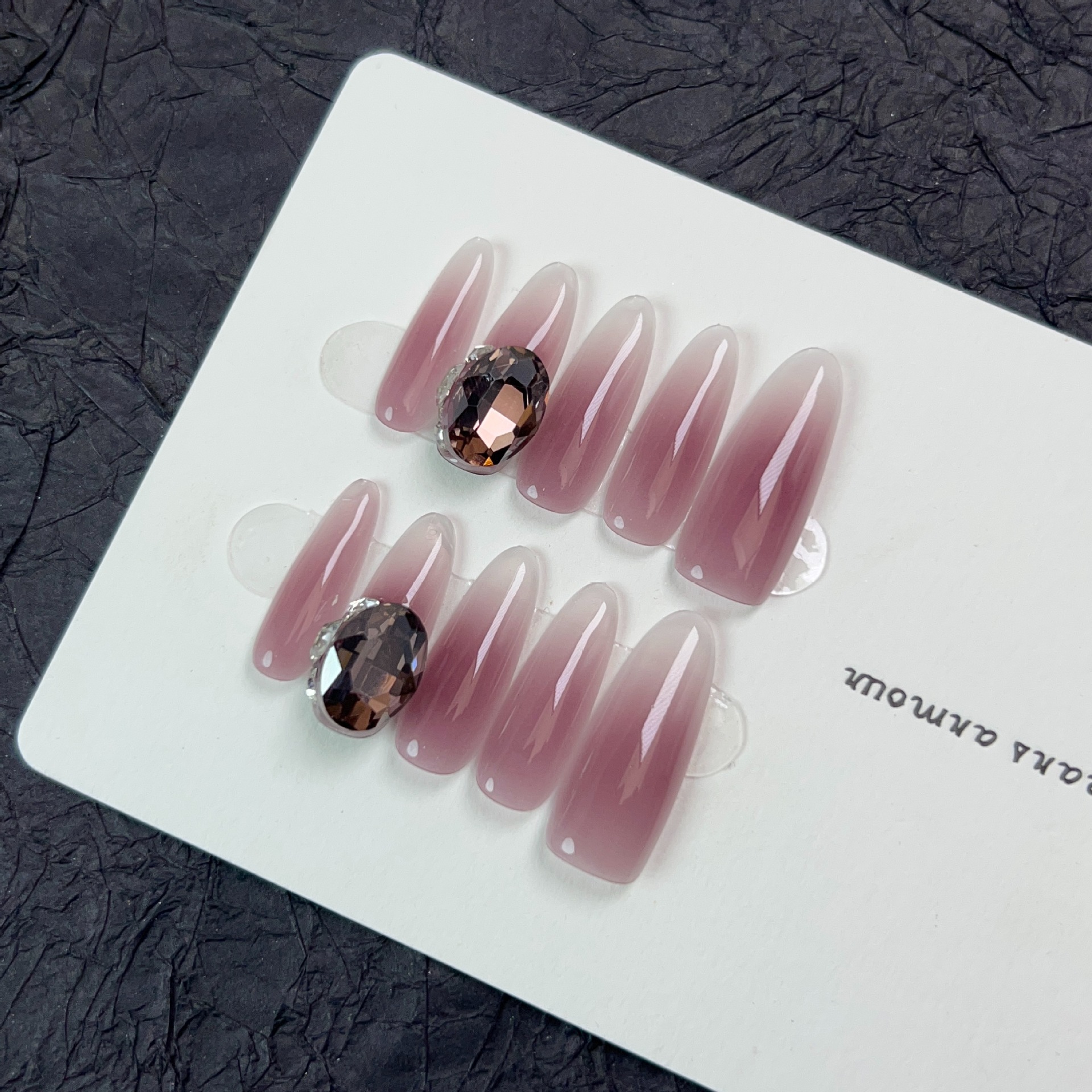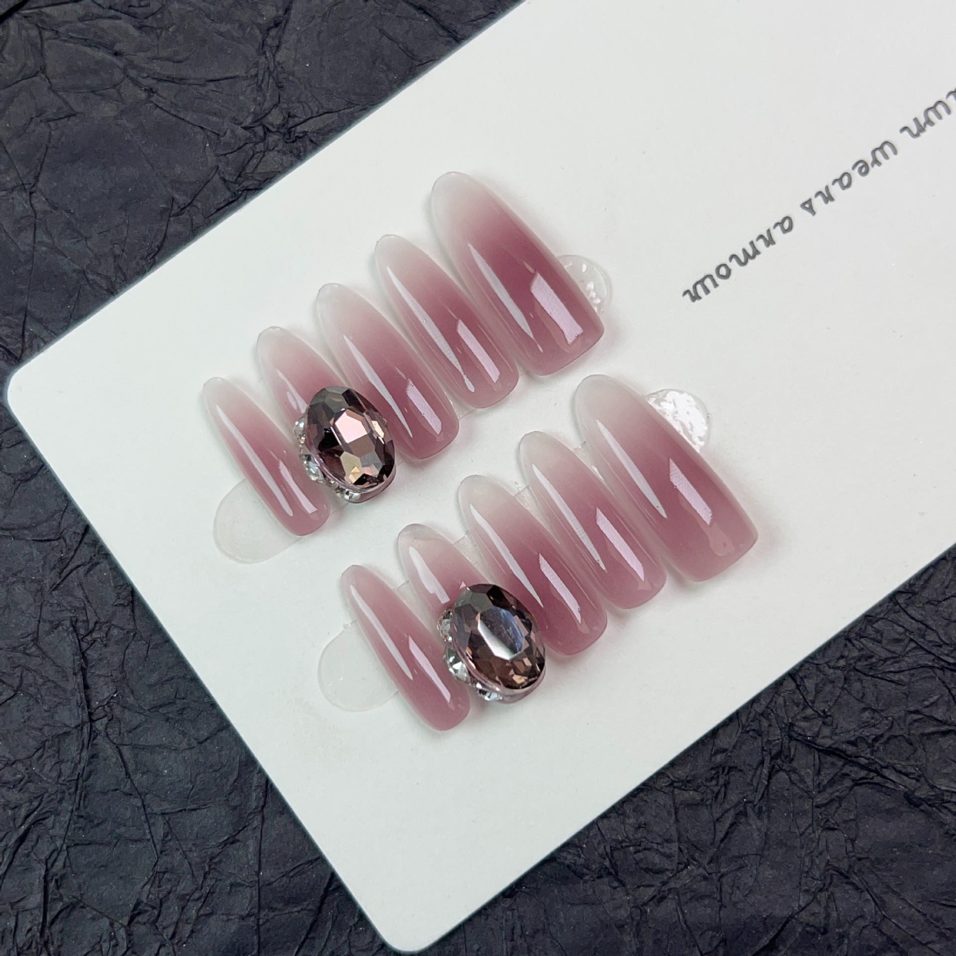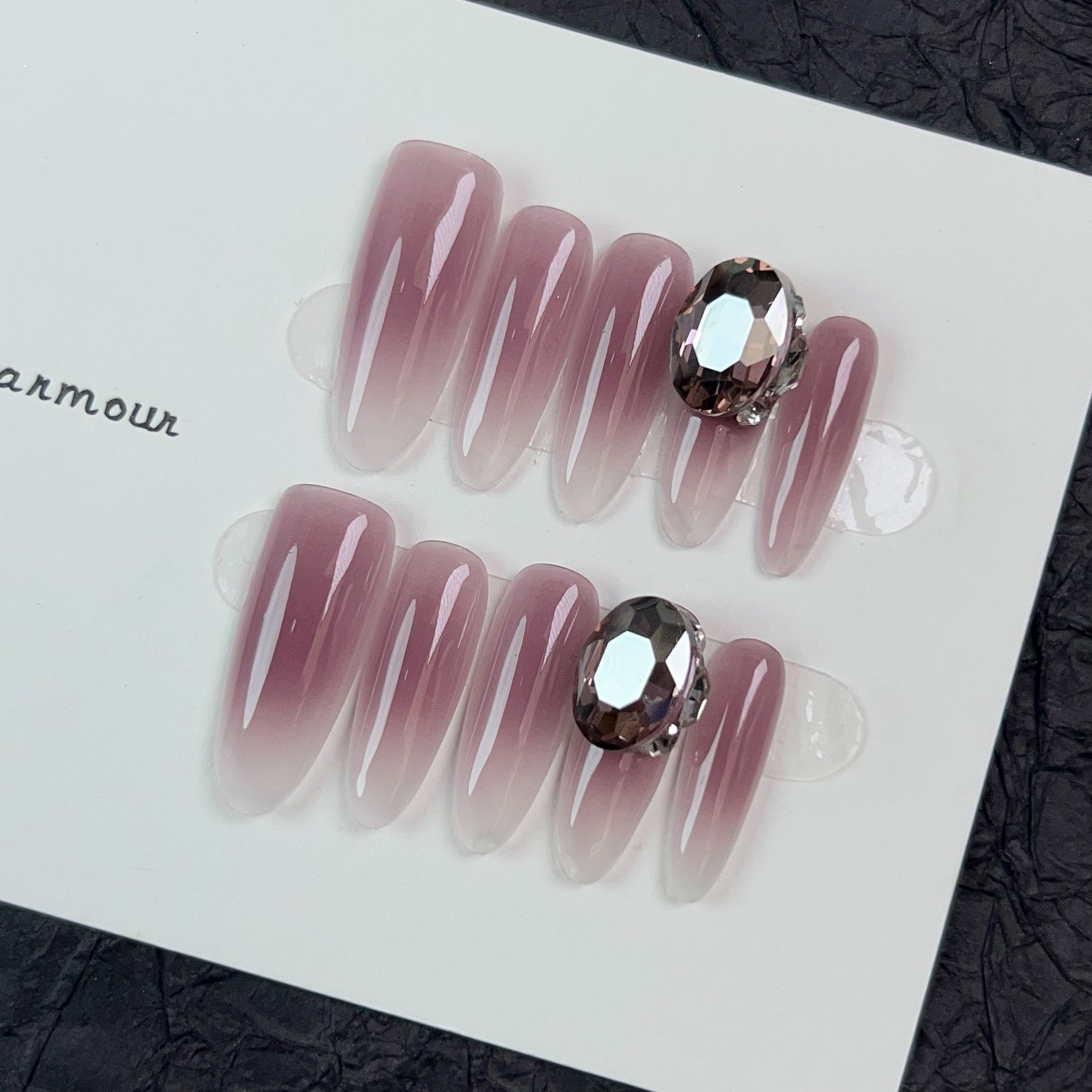 一揽流心纯手工穿戴甲长款裸色淡紫渐变贴钻美甲贴ins甲片成品