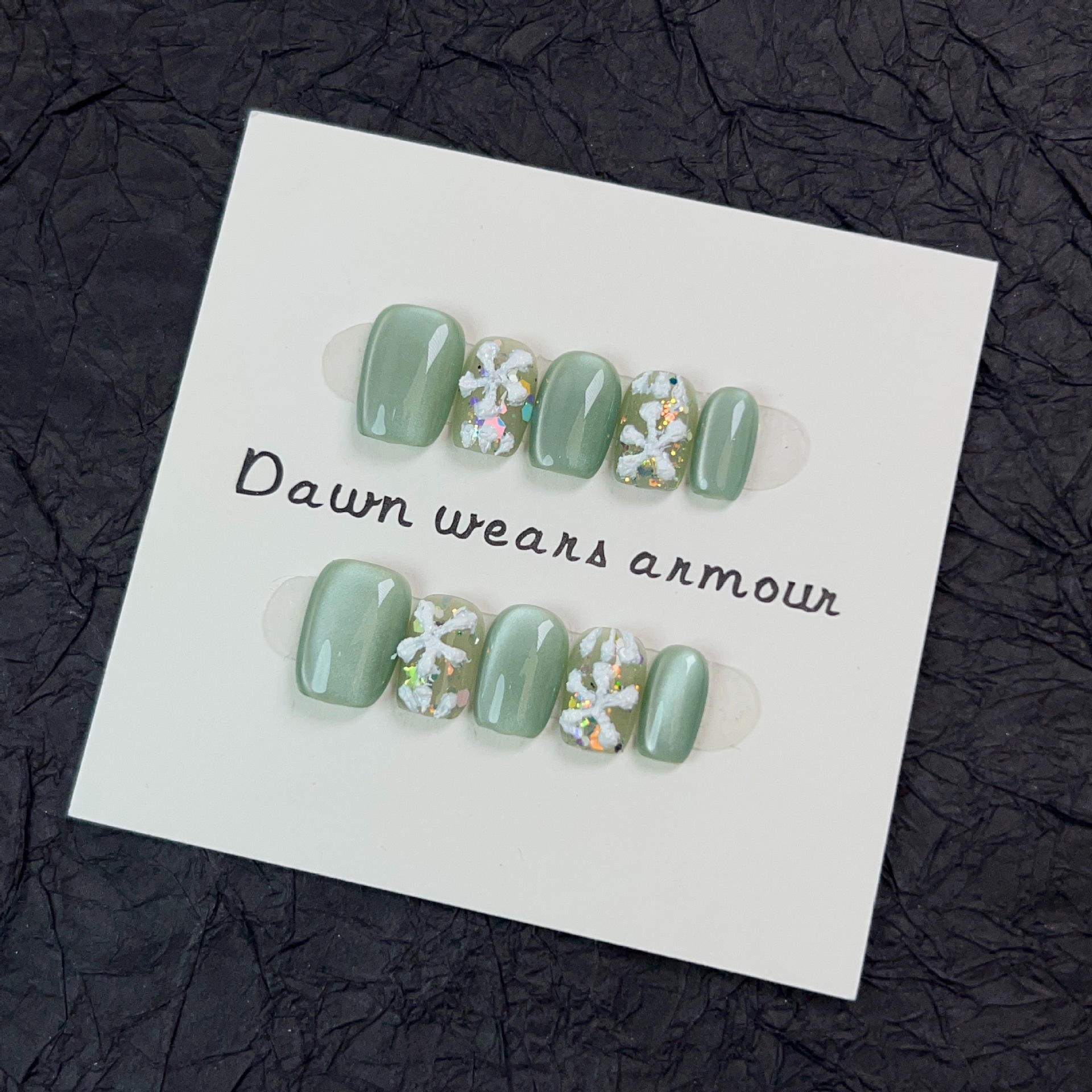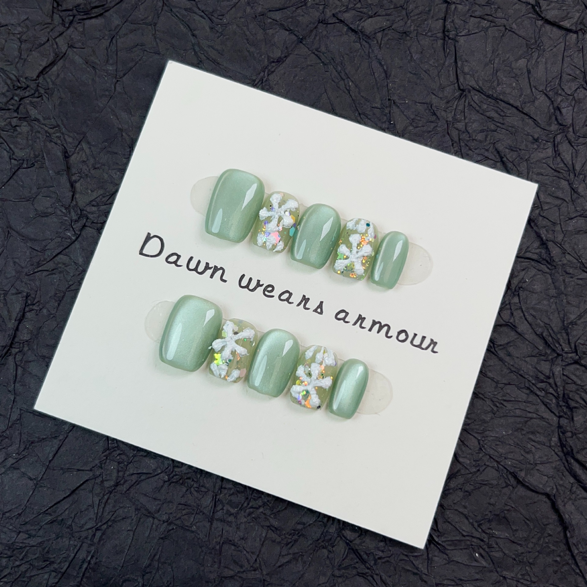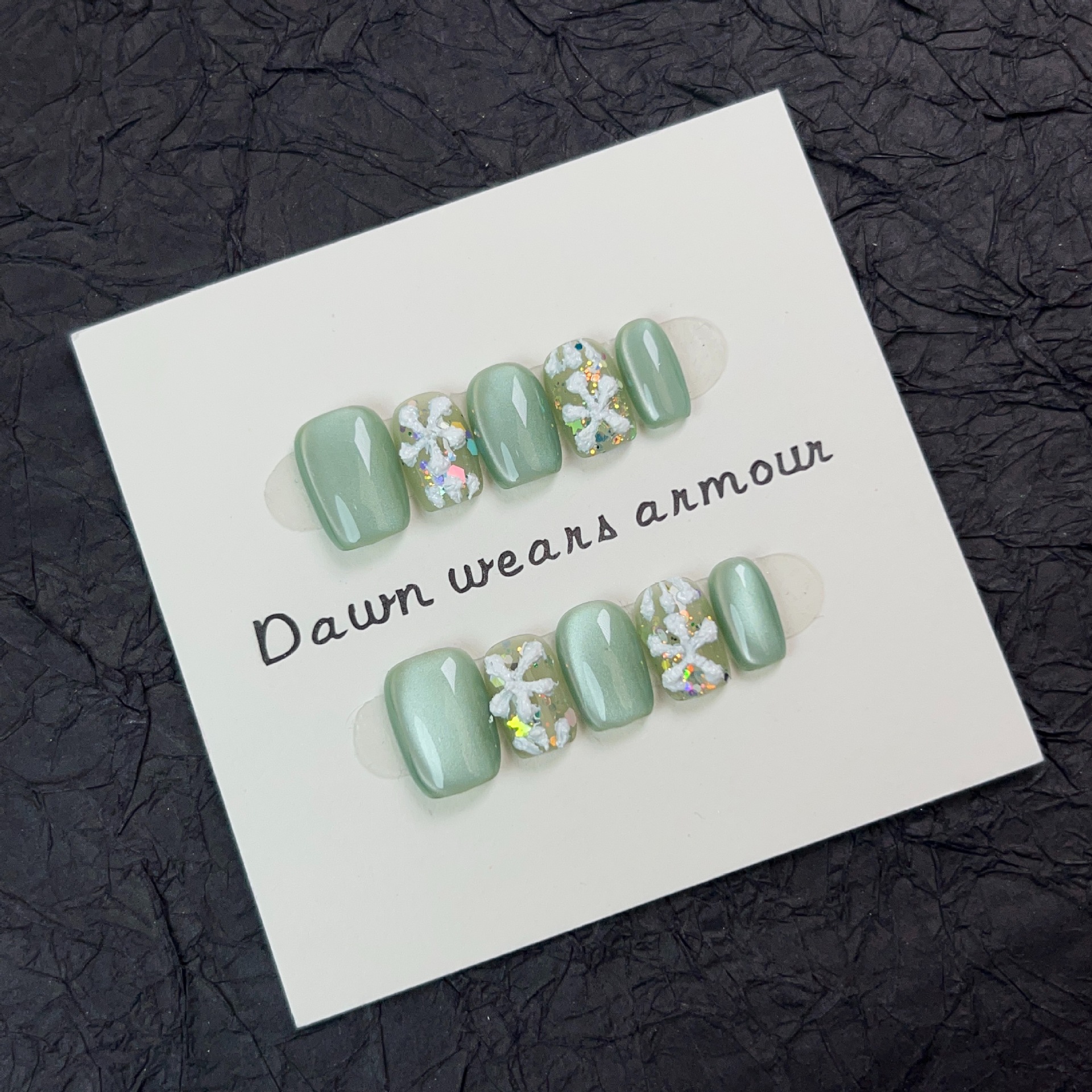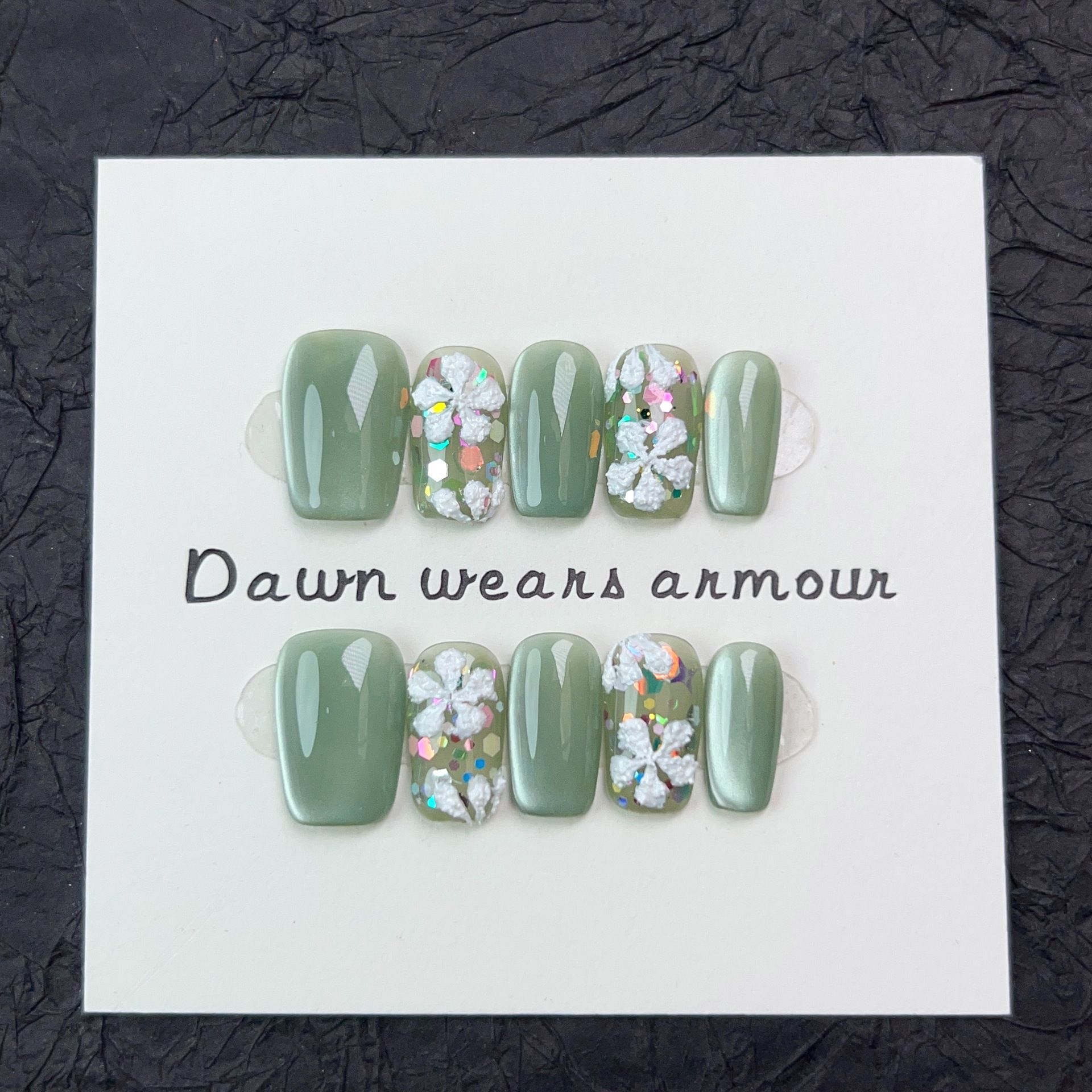 光影密林纯手工穿戴甲短款爆闪绿色玻璃猫眼小清新小花可拆卸甲片