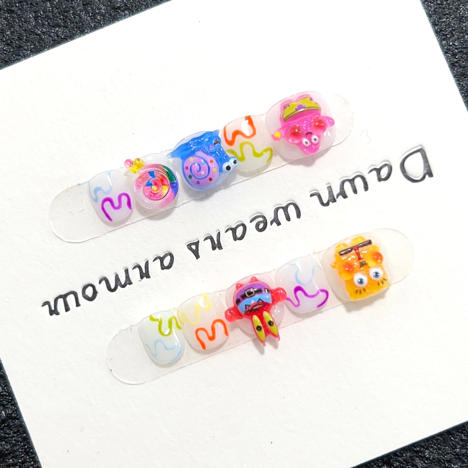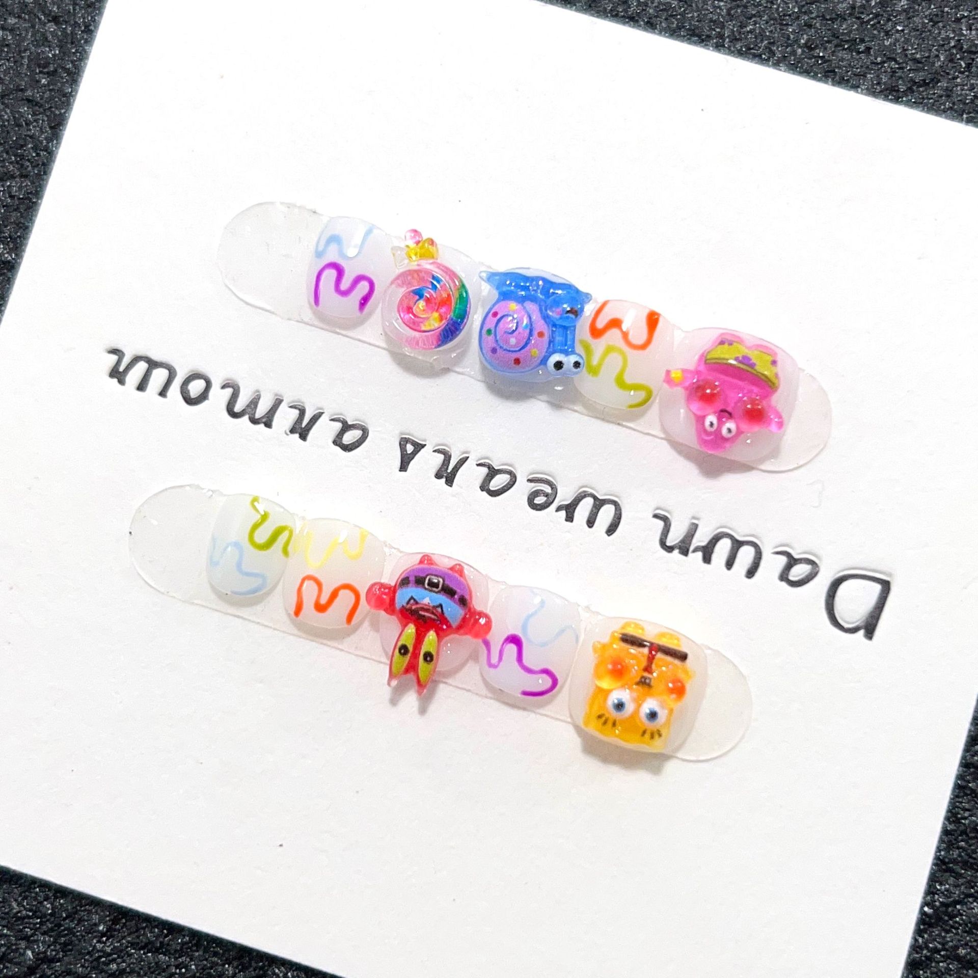 海绵家族纯手工穿戴甲短款儿童甲海绵宝宝派大星可爱美甲贴可拆卸