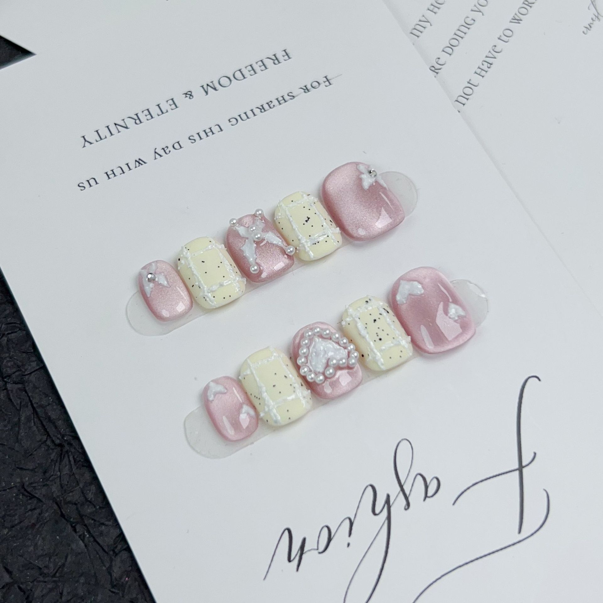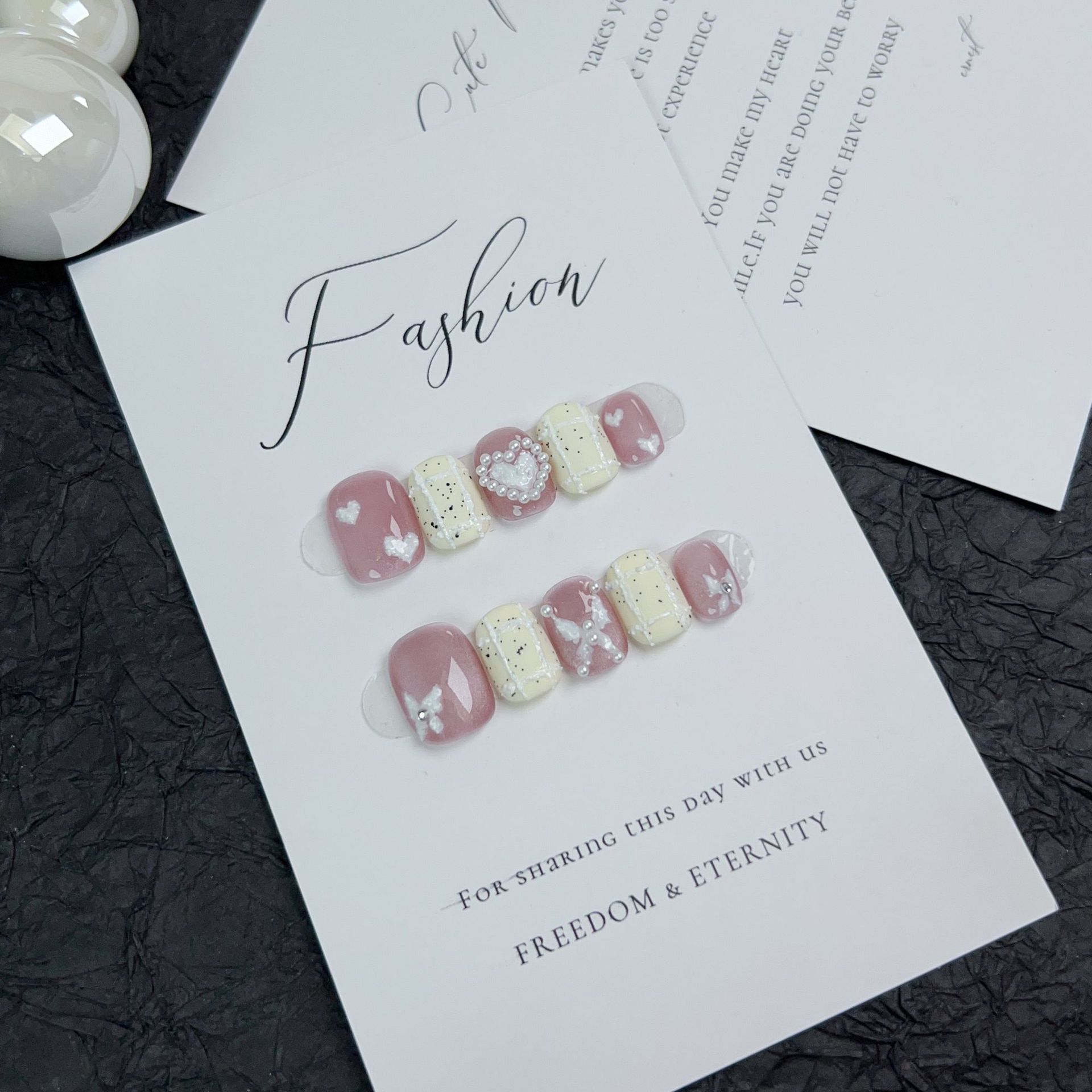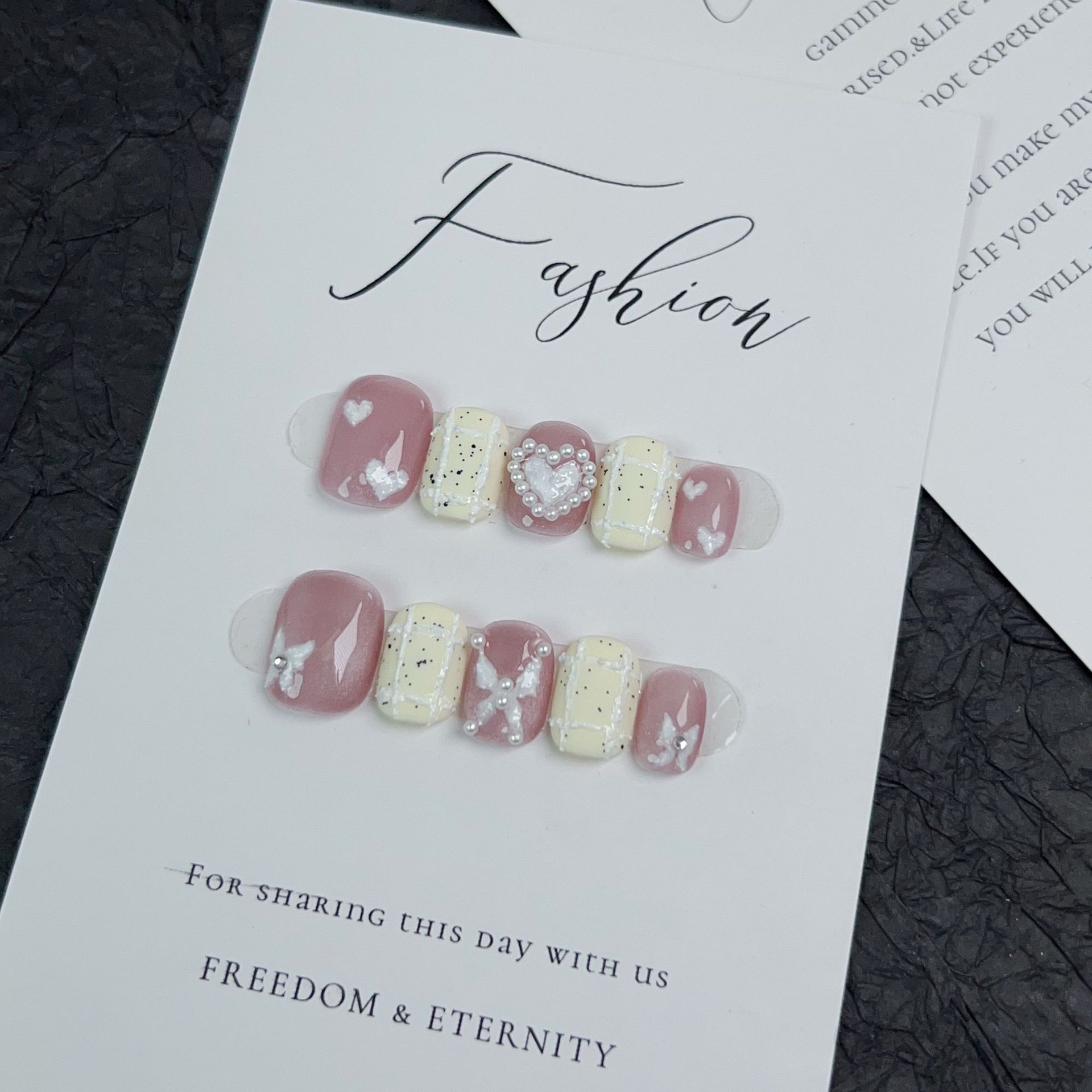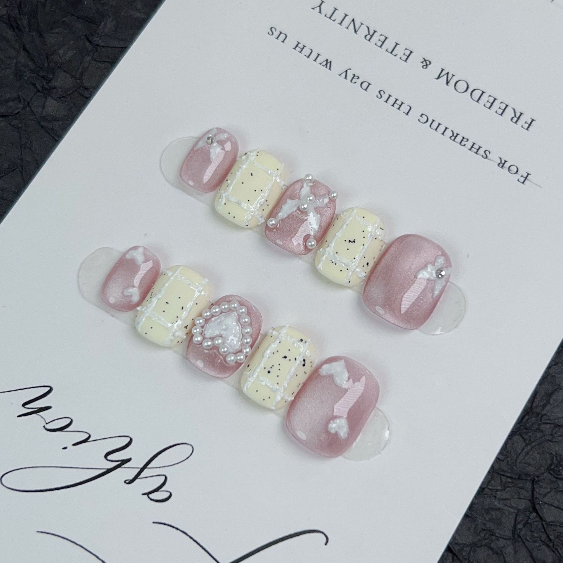 落英缤纷纯手工穿戴甲粉色短款小香风气质美甲手绘爱心可拆卸甲片