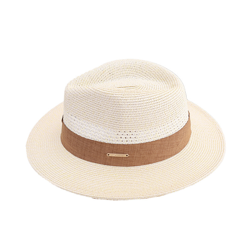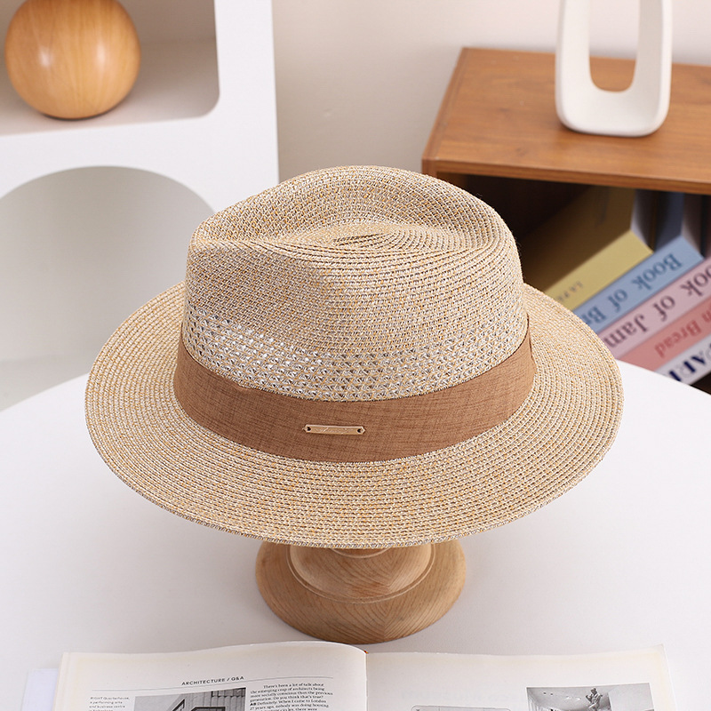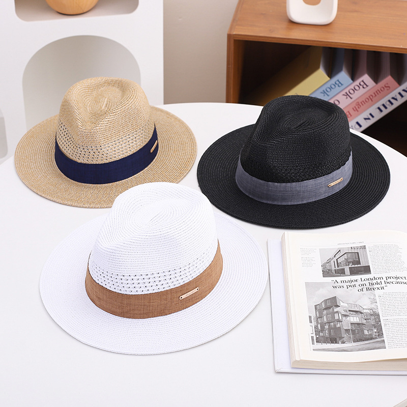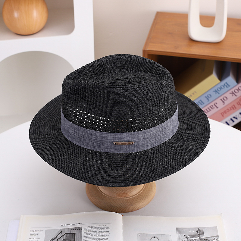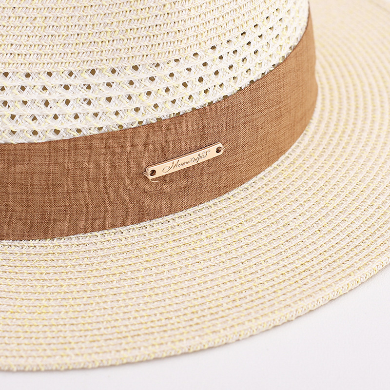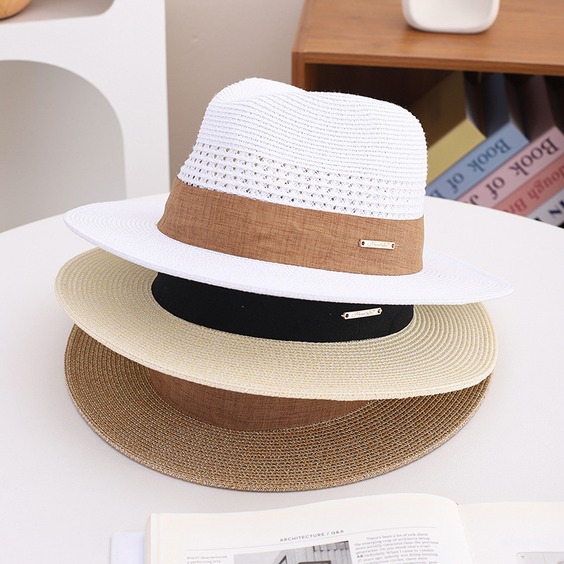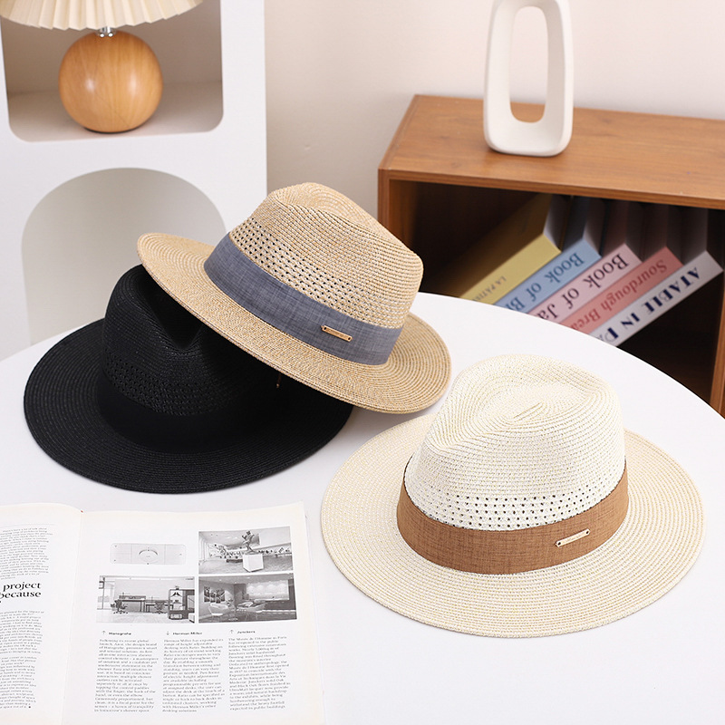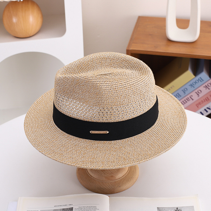跨境热卖草帽女夏海边遮阳平顶帽镂空顶编织防晒帽子休闲帽透气