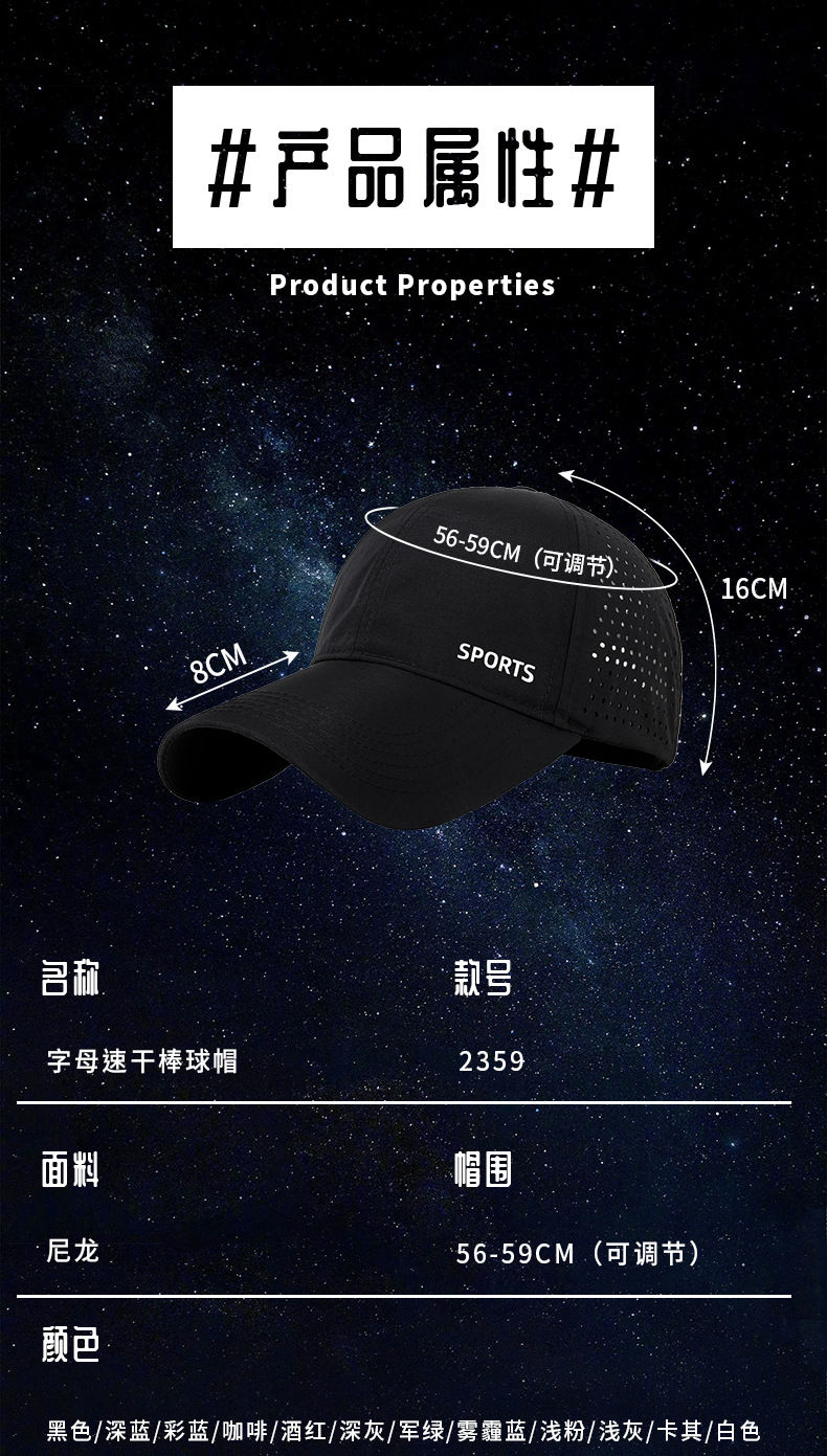 春夏新款字母加大码太阳帽女户外骑行防晒网帽鸭舌速干软顶棒球帽