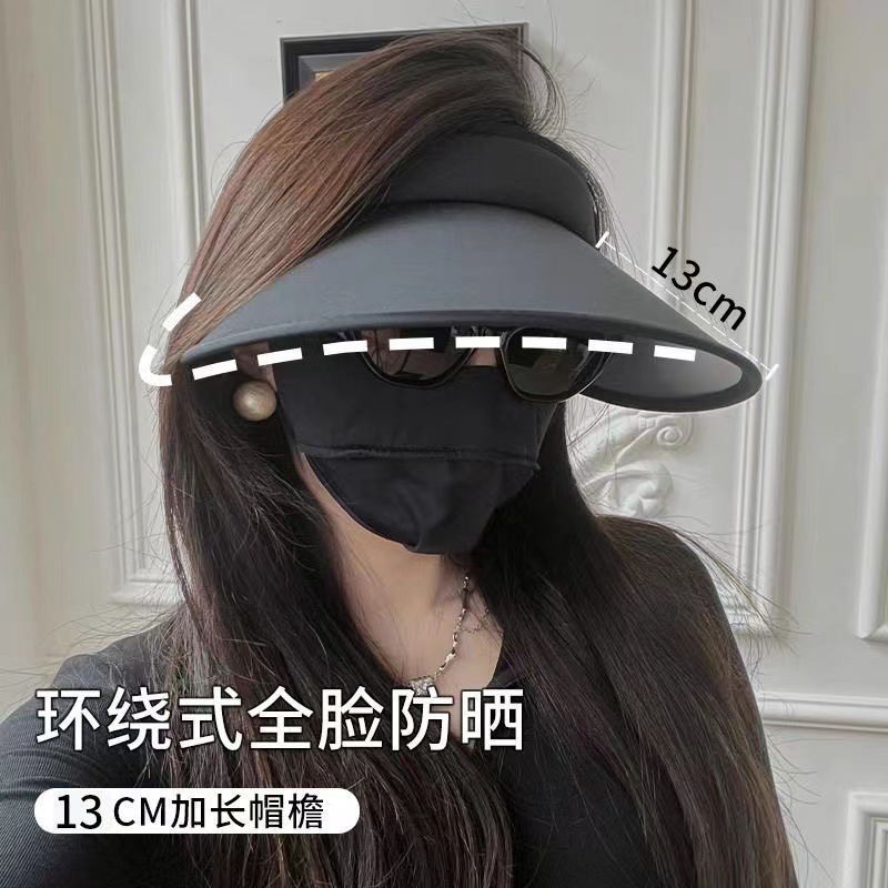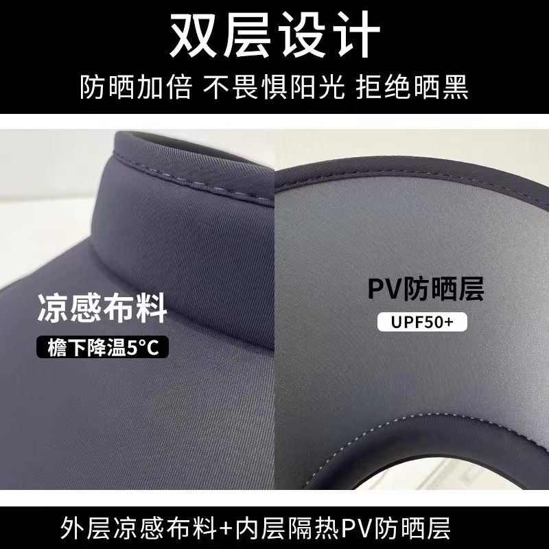 防晒遮阳帽子女新款夏季大檐UV防紫外线双面冰丝空顶骑车太阳帽子