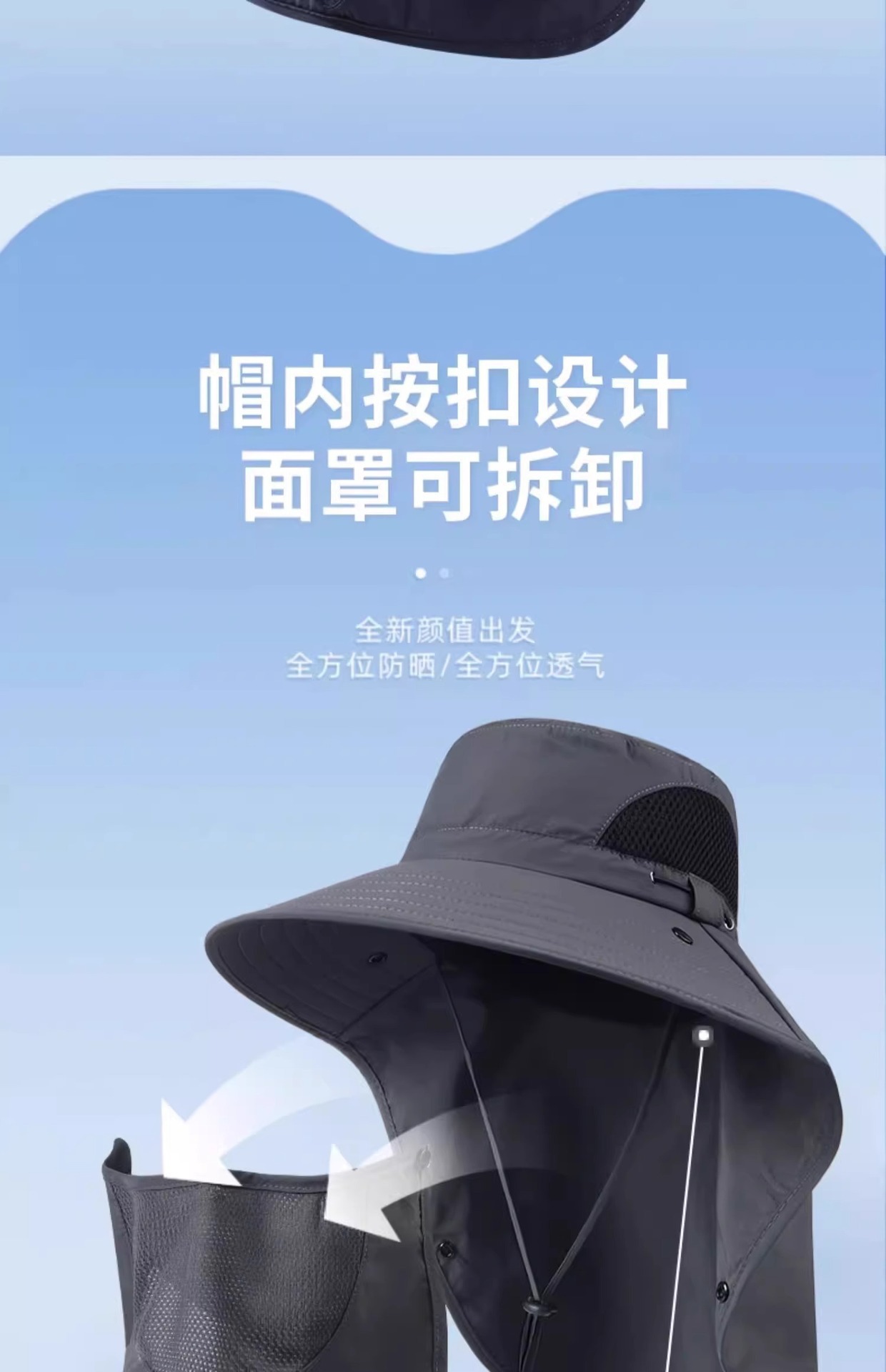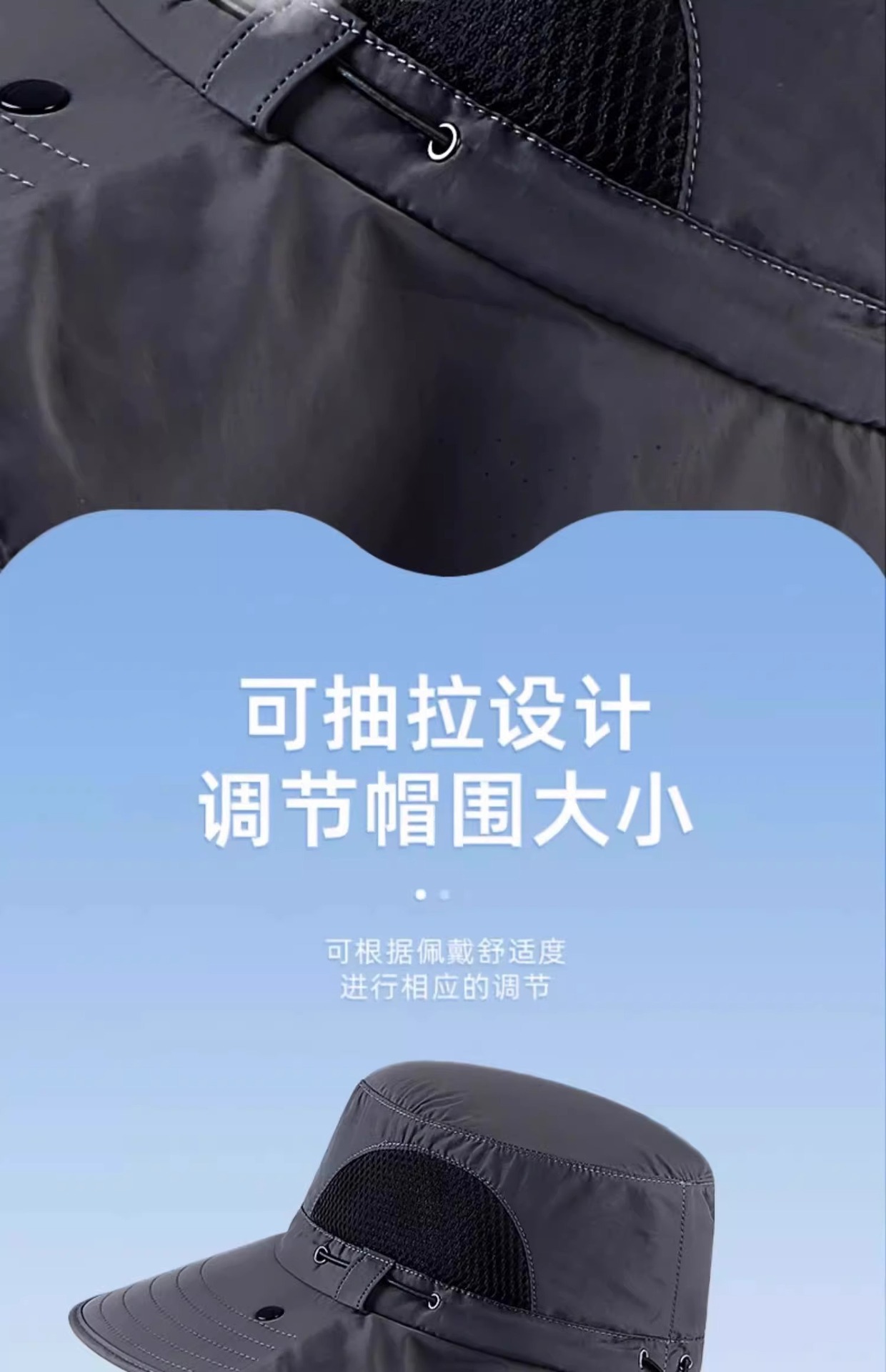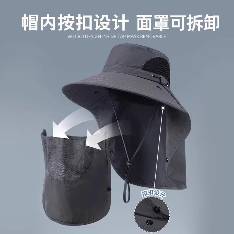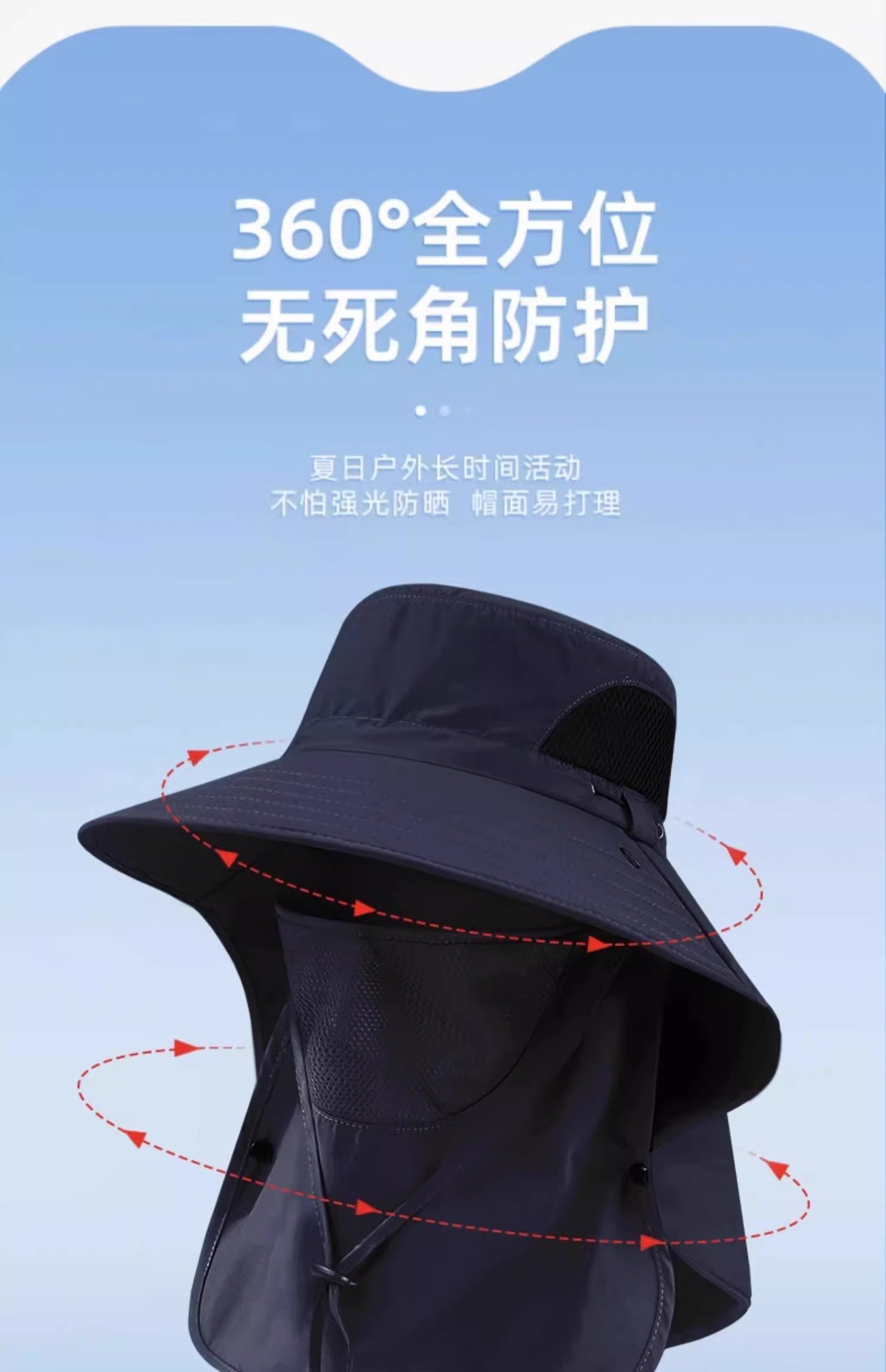 春夏季钓鱼帽子男款大檐防晒遮阳帽全方位户外登山休闲遮脸防蚊帽