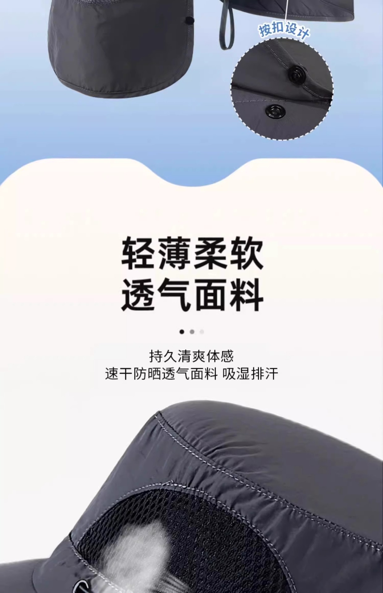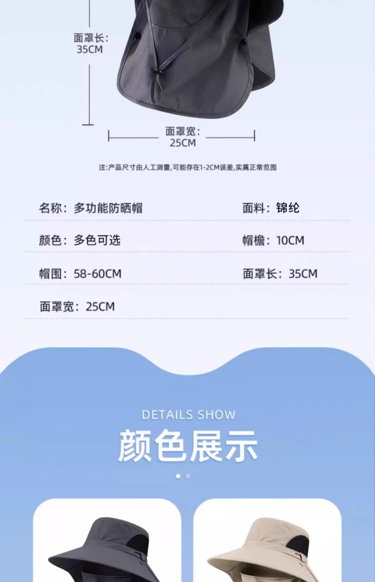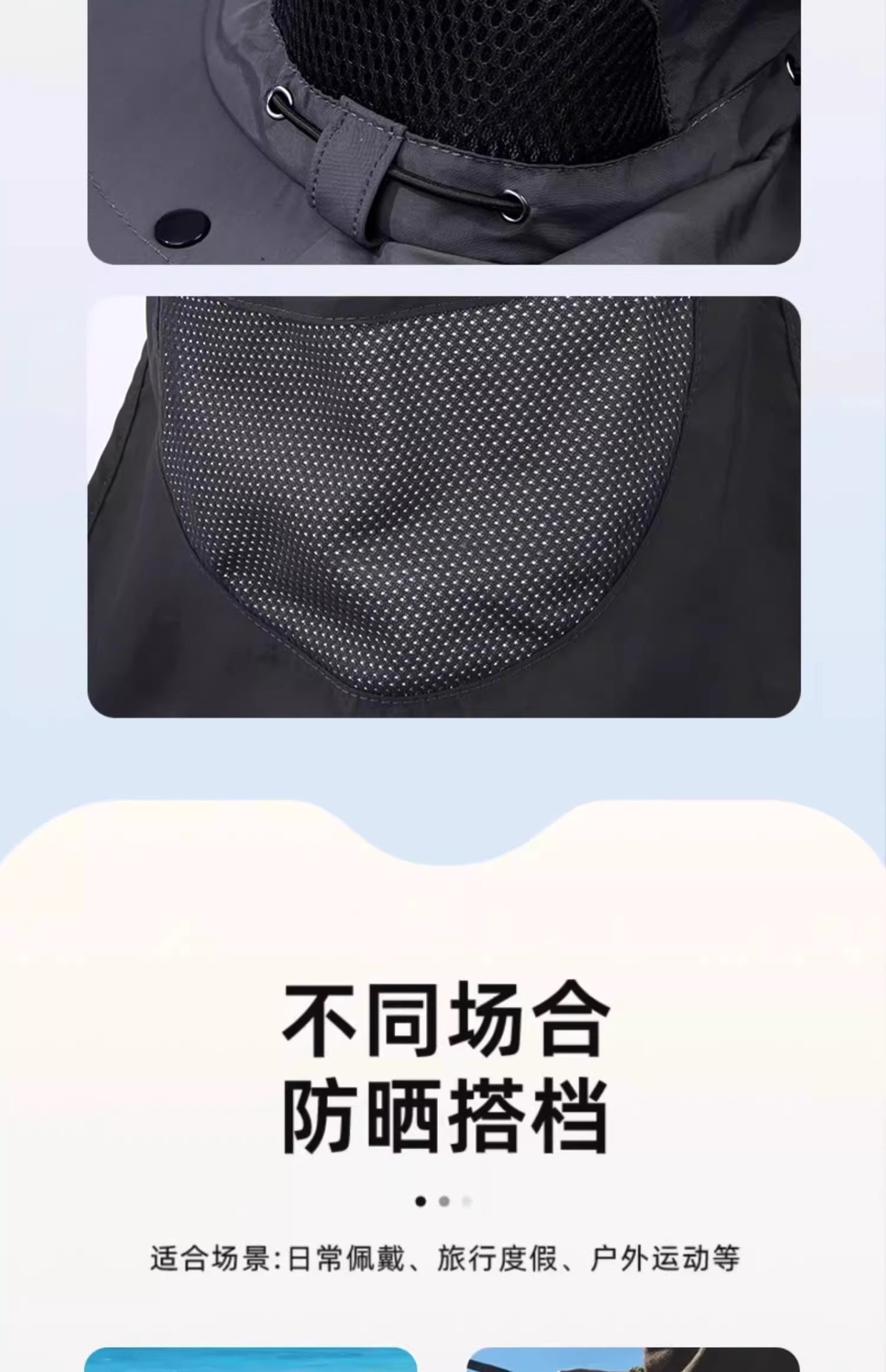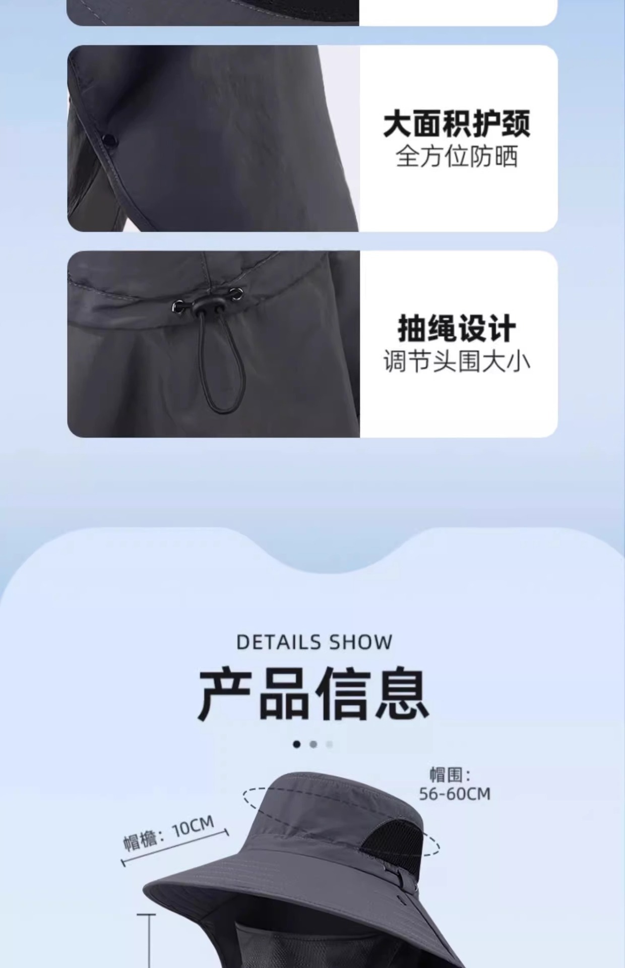 春夏季钓鱼帽子男款大檐防晒遮阳帽全方位户外登山休闲遮脸防蚊帽