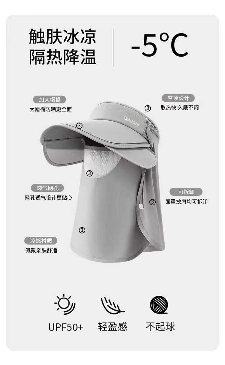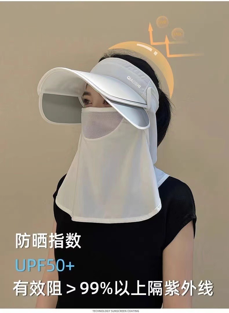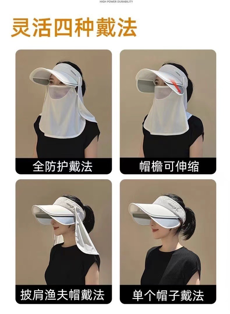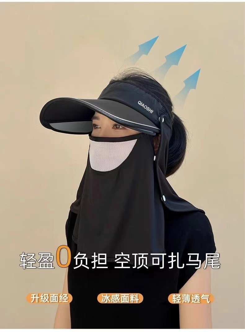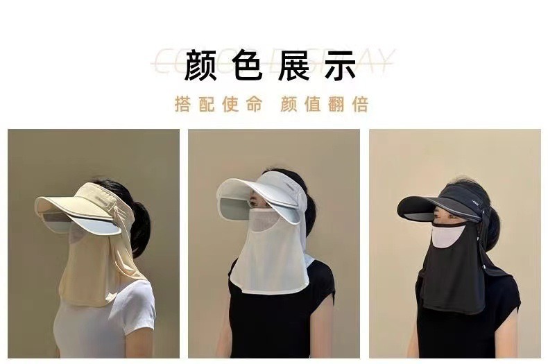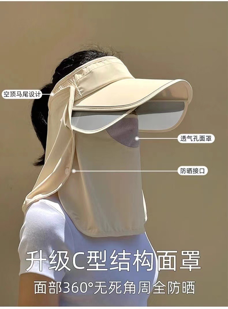 夏季遮阳帽防紫外线遮脸面罩防晒帽子大檐空顶户外骑行太阳帽女