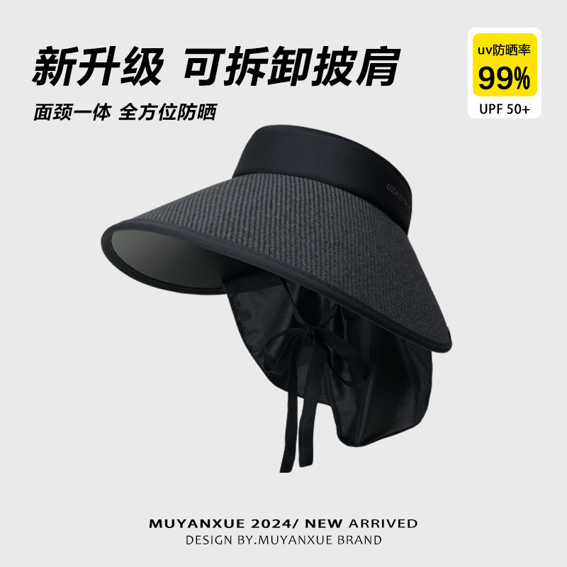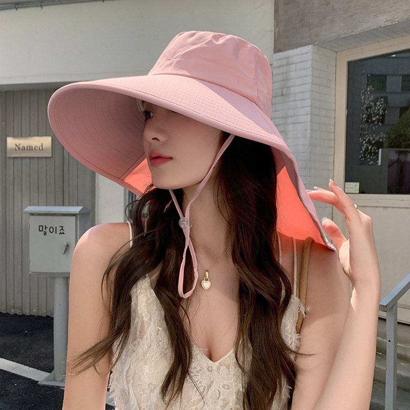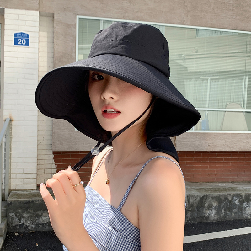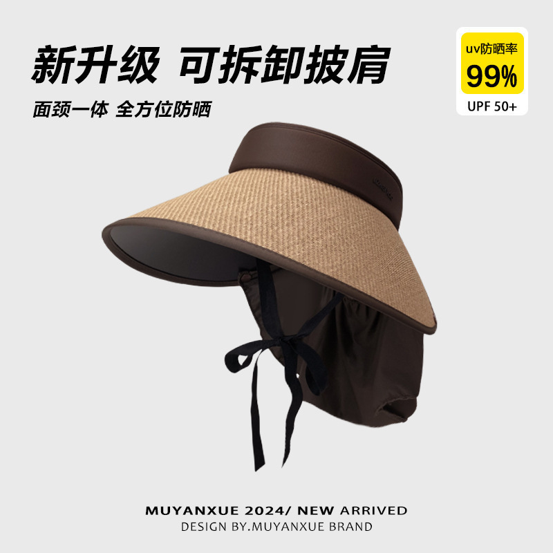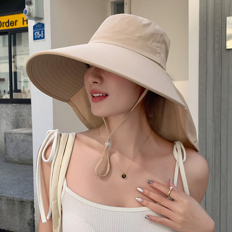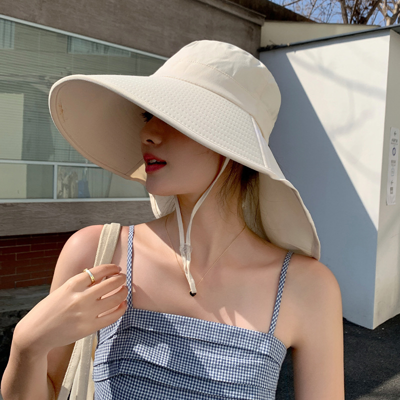夏季遮阳帽女空顶防晒帽大檐护脖披肩太阳帽时尚百搭显脸小渔夫帽