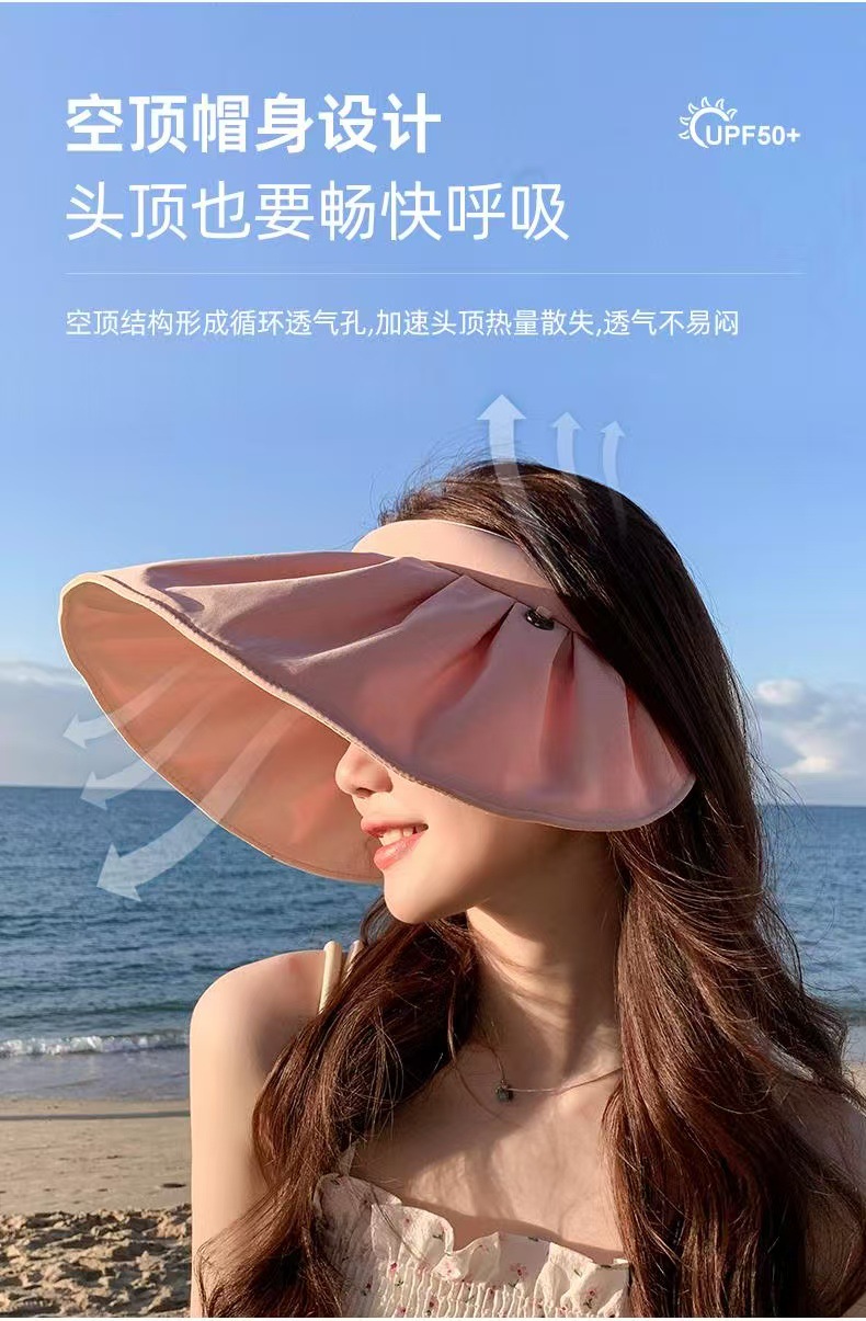防紫外线防晒帽女遮阳帽子大帽檐空顶骑车2025网红夏季太阳帽遮脸