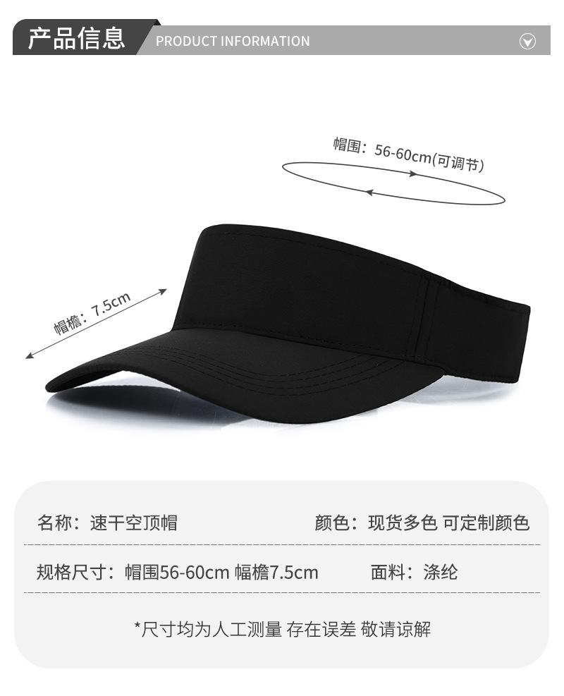 速干空顶帽子定制logo夏季男女网球帽户外运动防晒遮阳帽跑步纯色