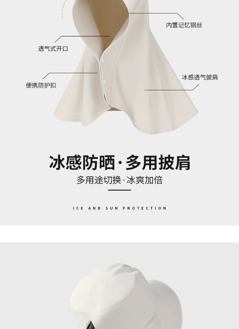护肩颈一体防晒帽子女夏季遮脸超大披肩渔夫帽防紫外线遮阳帽批发
