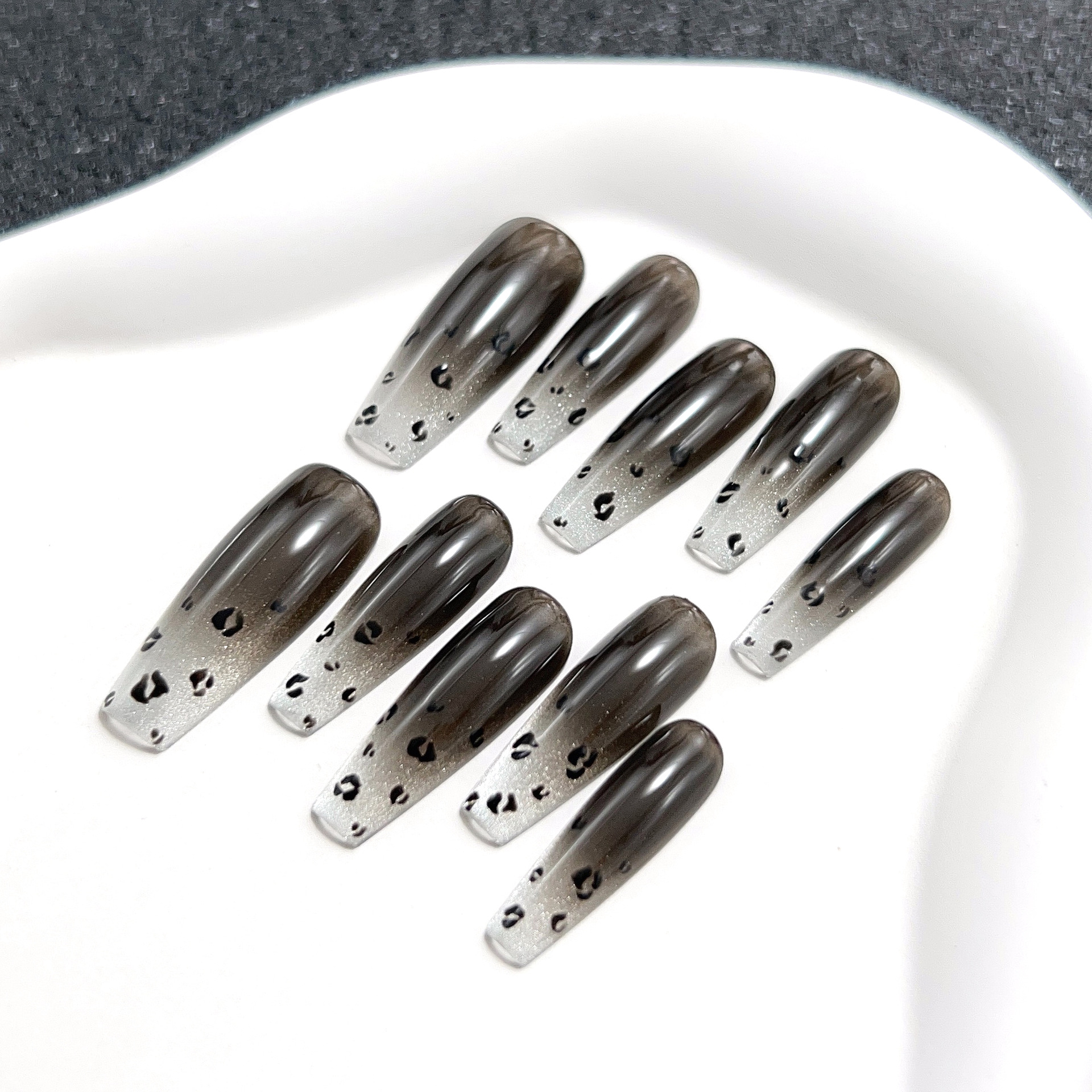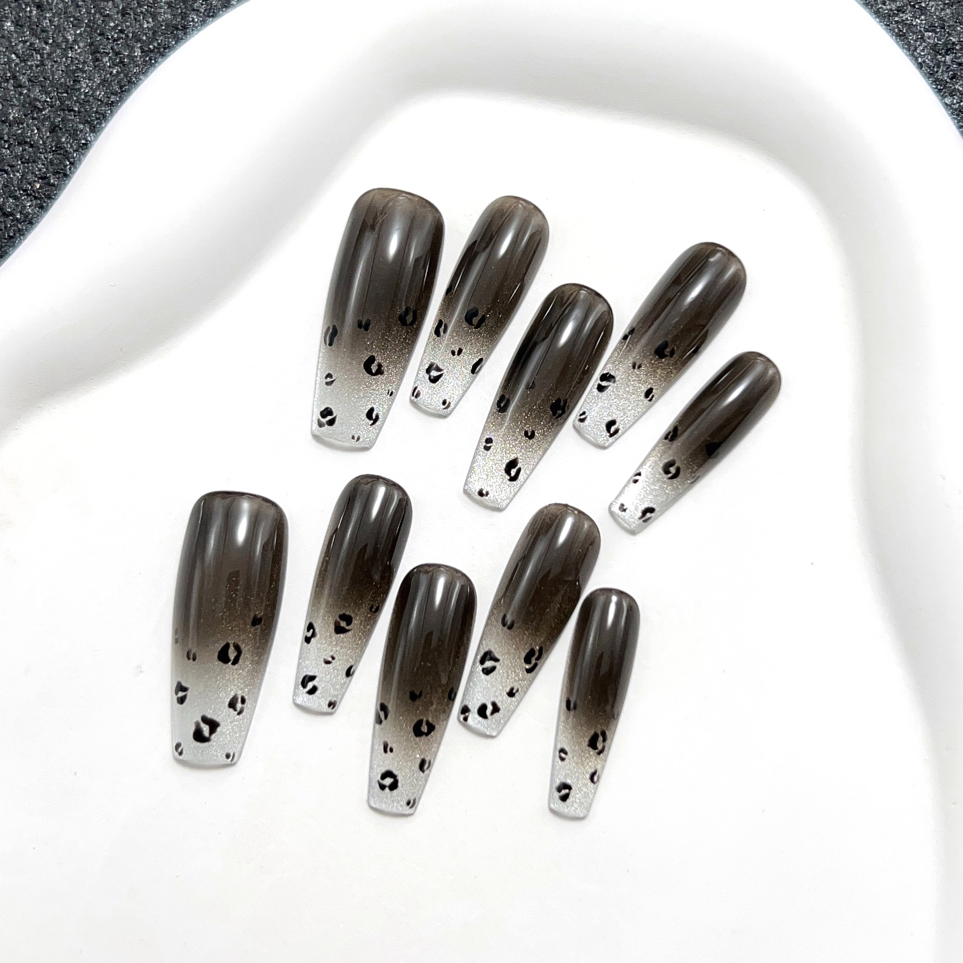 暗夜之吻纯手工穿戴甲长款渐变美甲贴甜酷哥特风爆闪可拆卸甲片