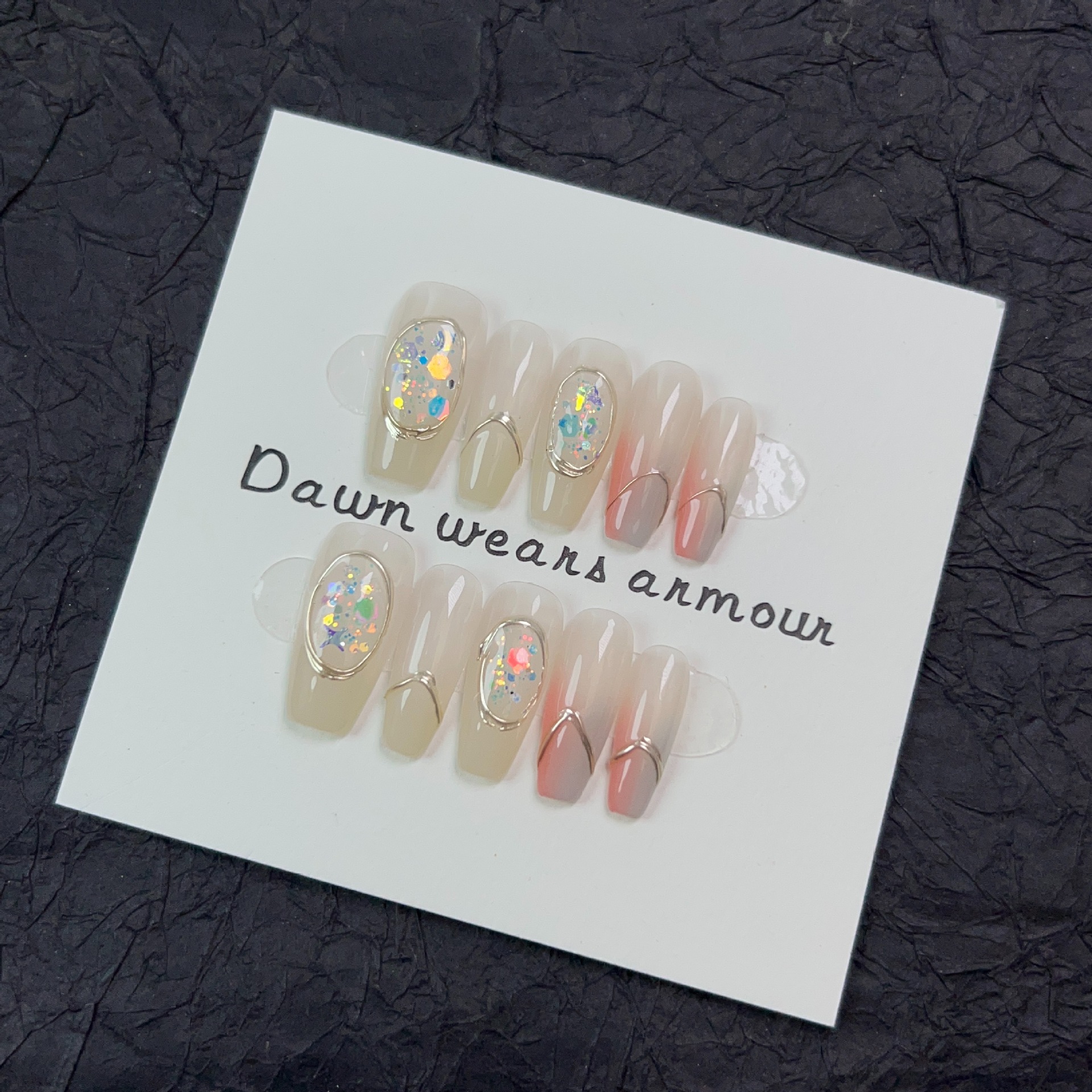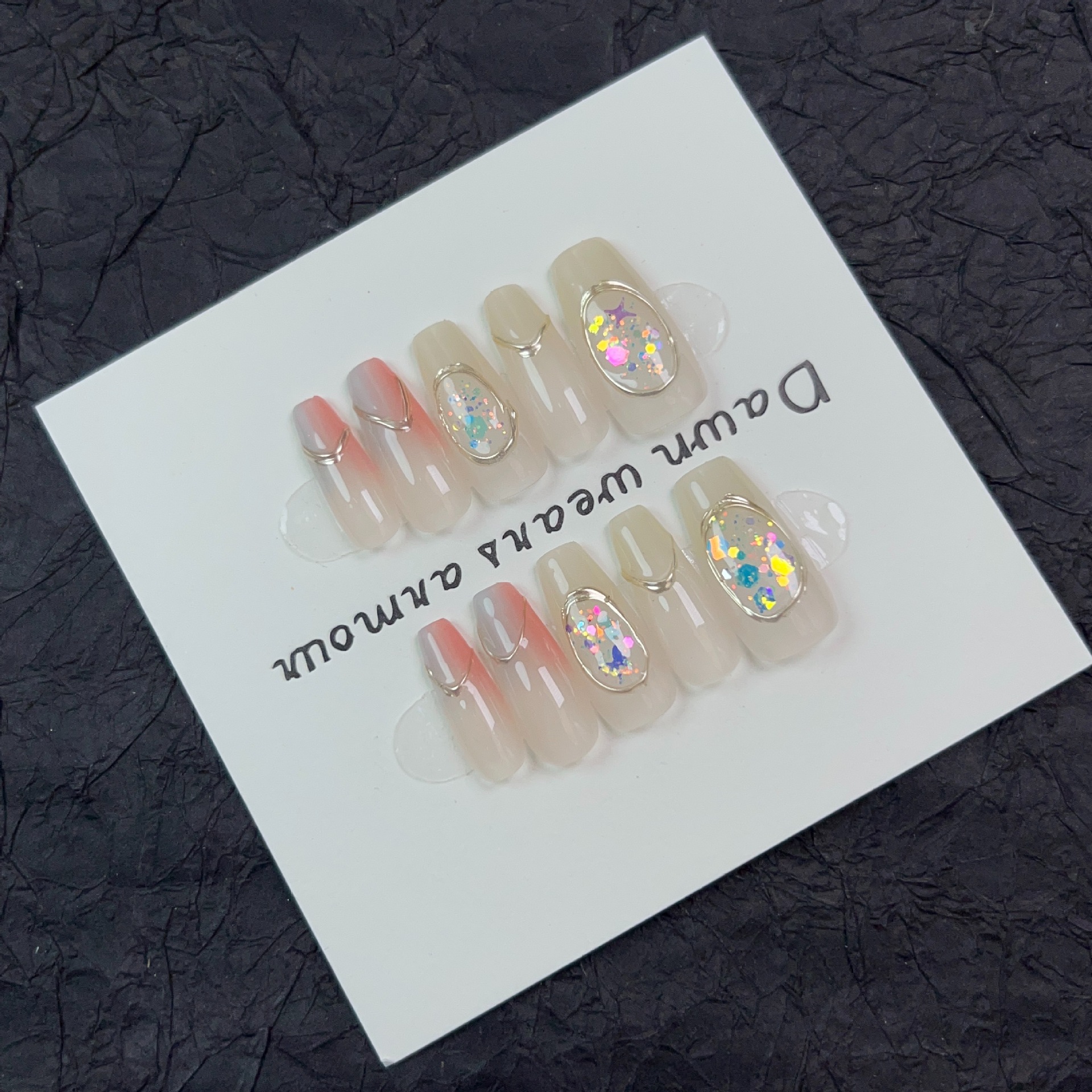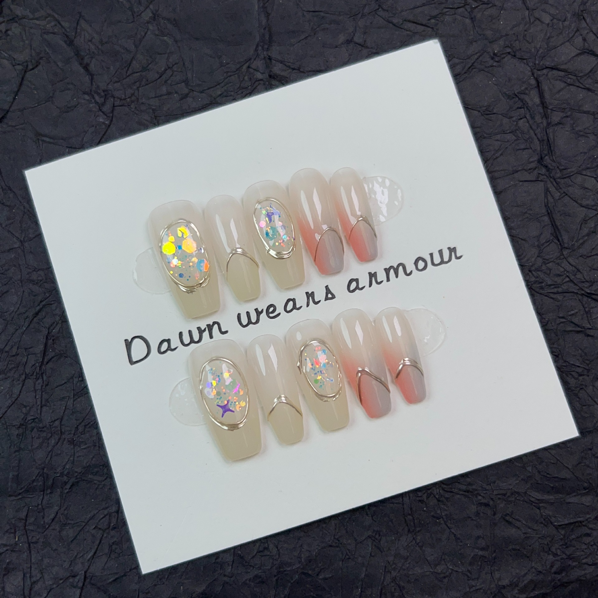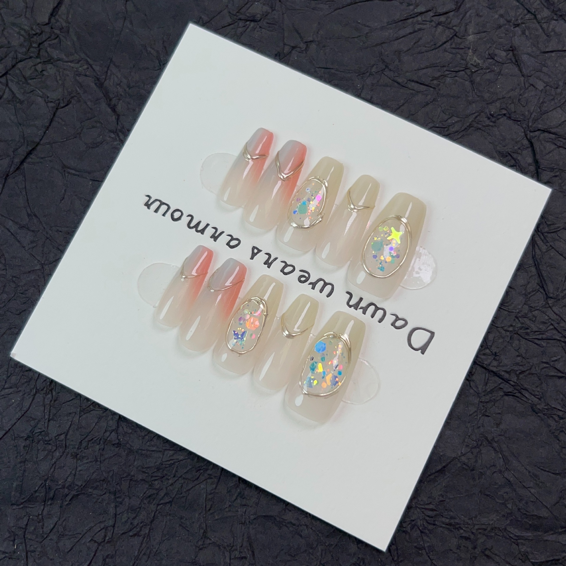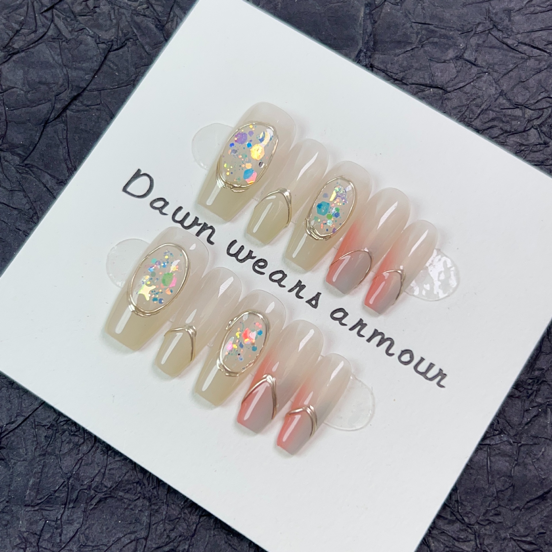 水染江南纯手工穿戴甲长款冰透裸粉渐变指甲贴片小清新纯欲可拆卸