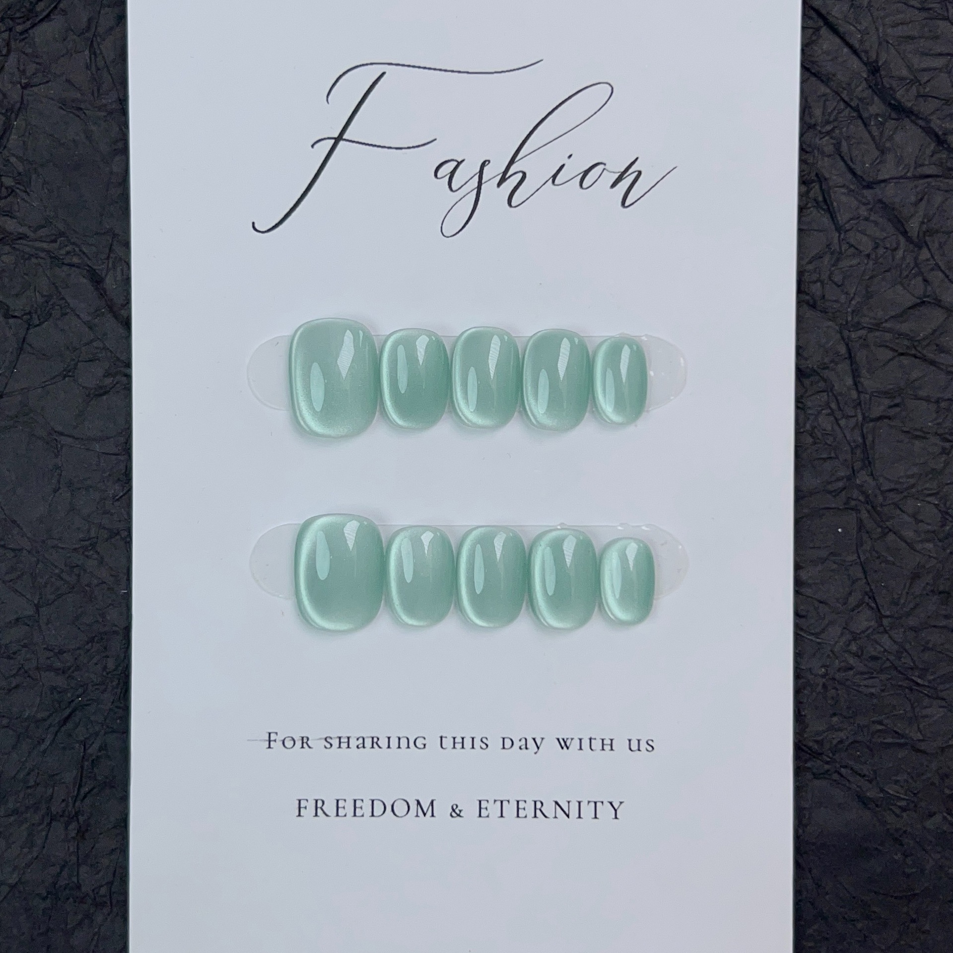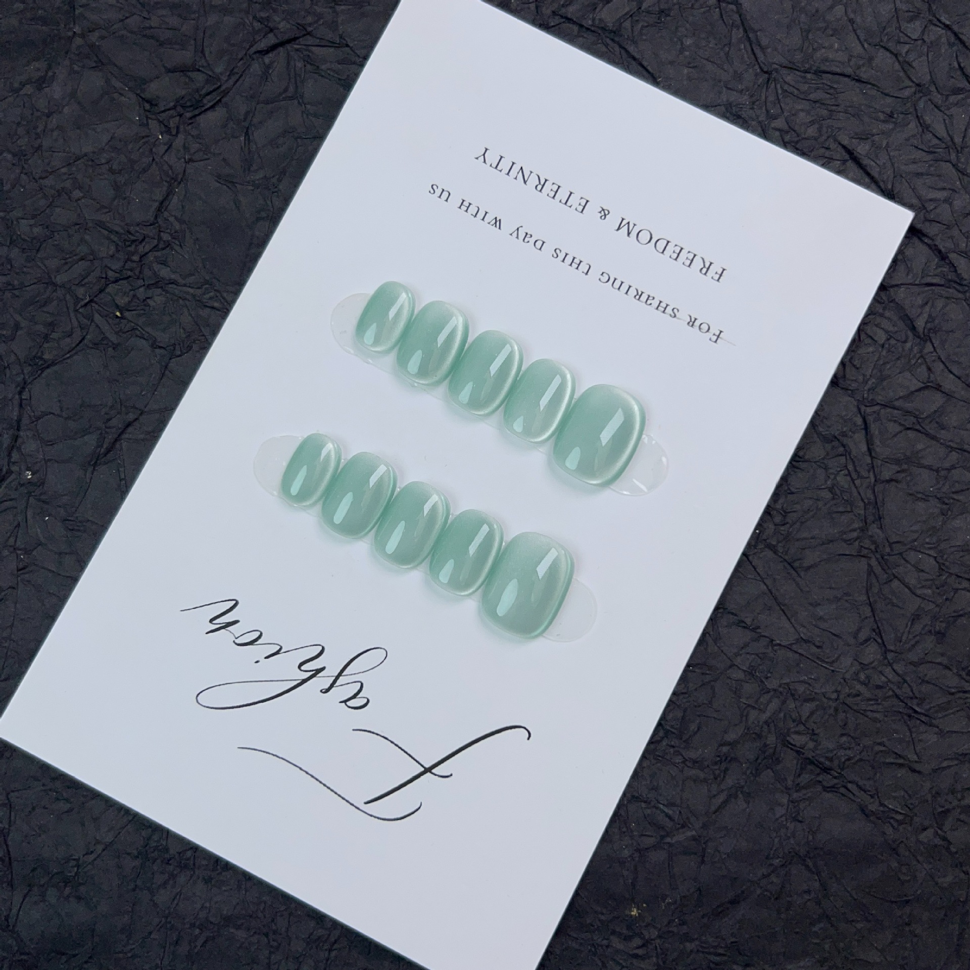 薄荷曼波纯手工穿戴甲短款绿色纯色猫眼美甲贴气质显白可拆卸甲片