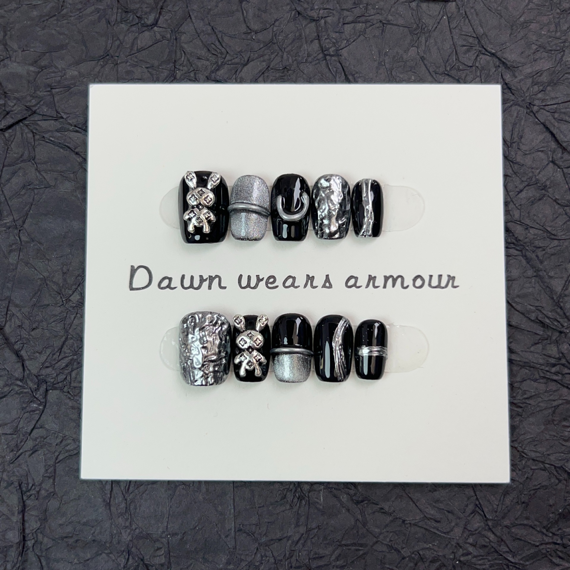 前兔无忧纯手工穿戴甲短款纯色兔子美甲贴甜酷风重金属可拆卸甲片