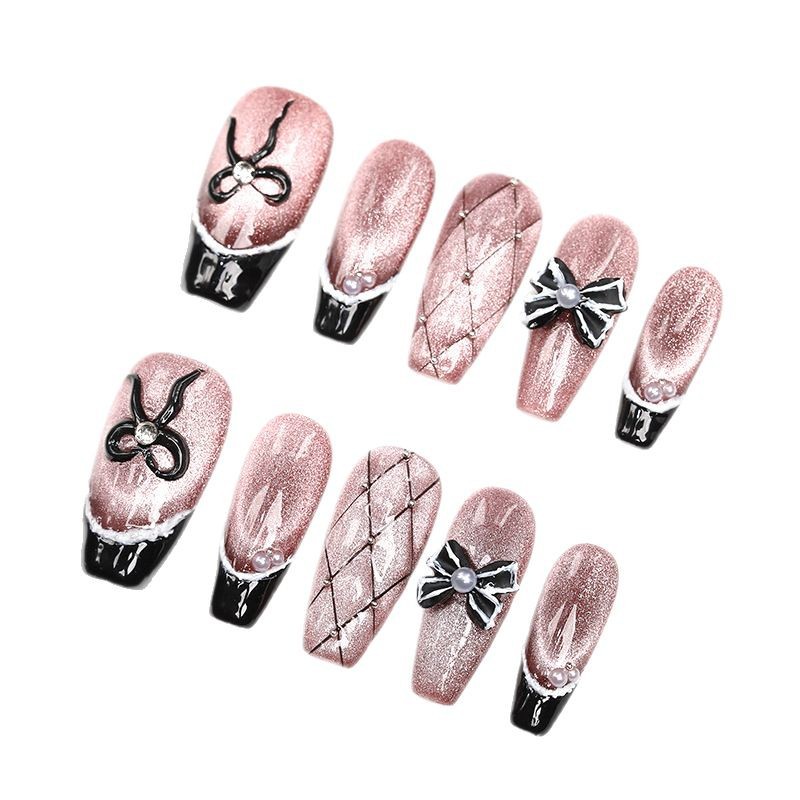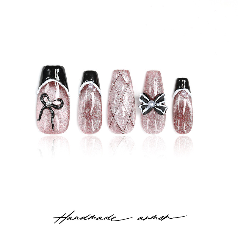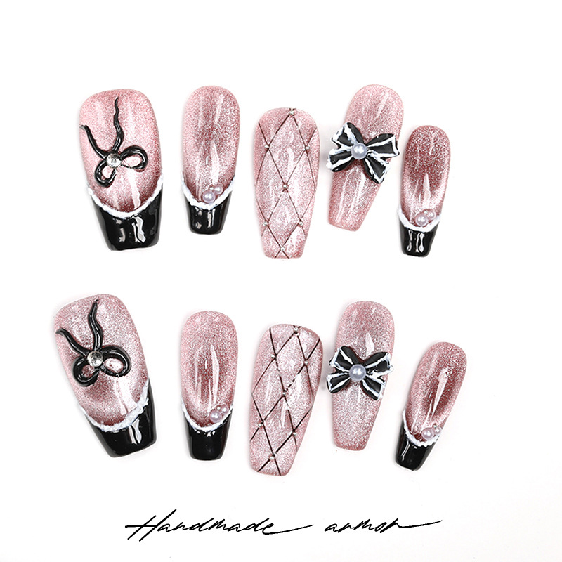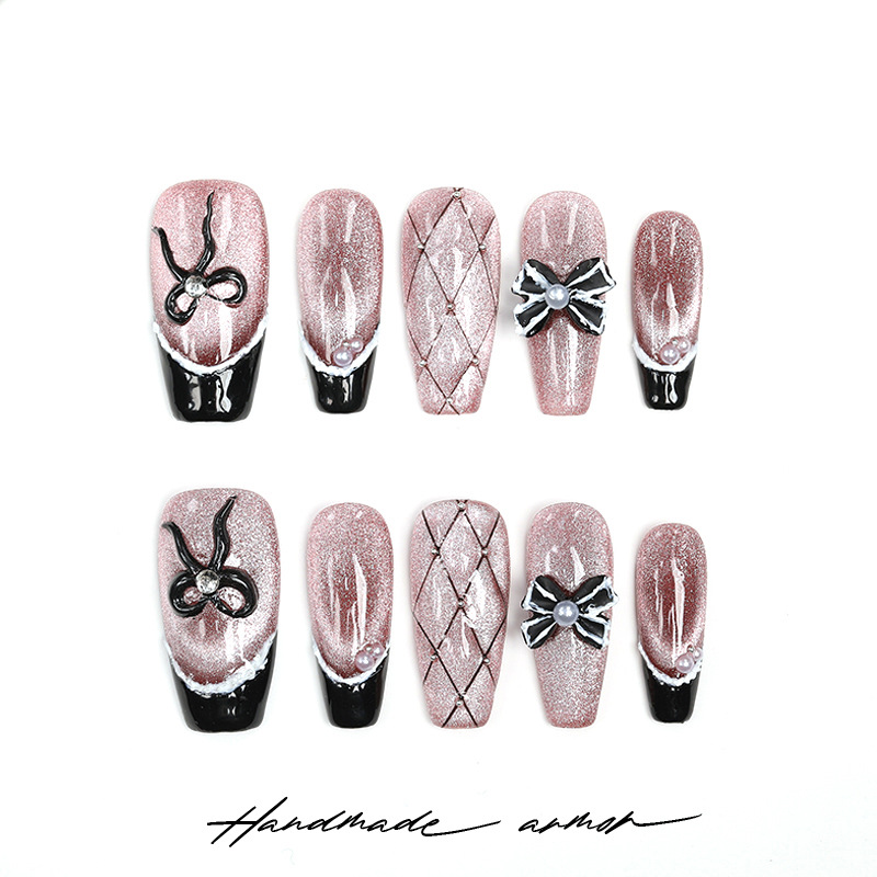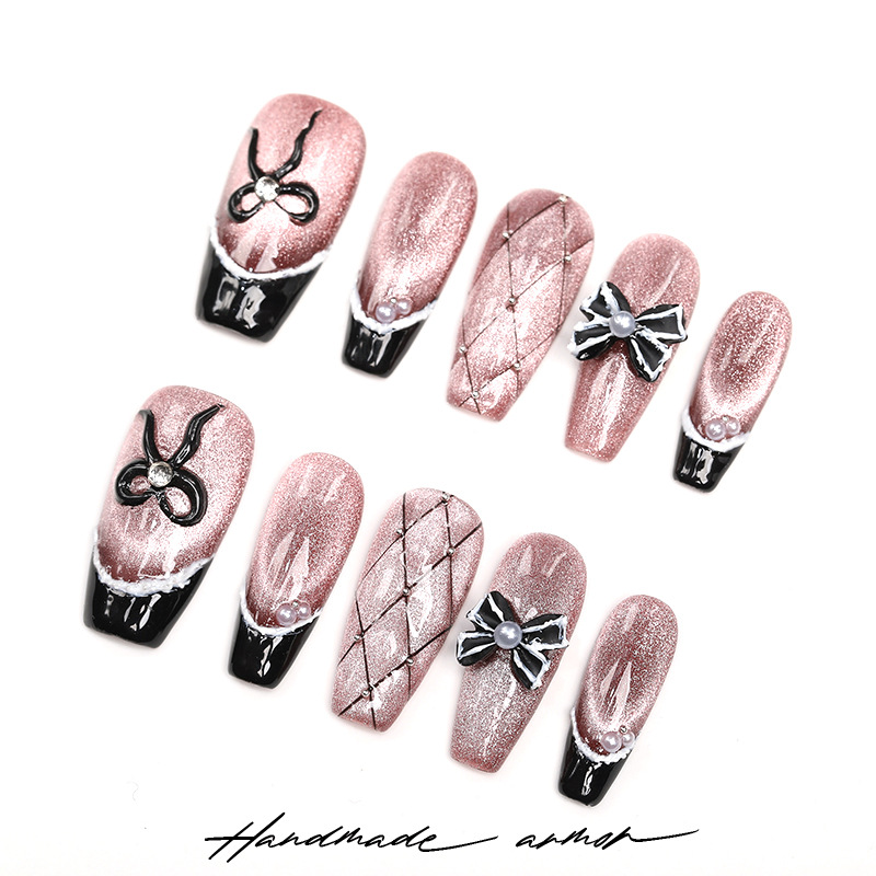 暮色吟游纯手工穿戴甲中长款棕色爆闪猫眼黑色法式小香风百搭甲片