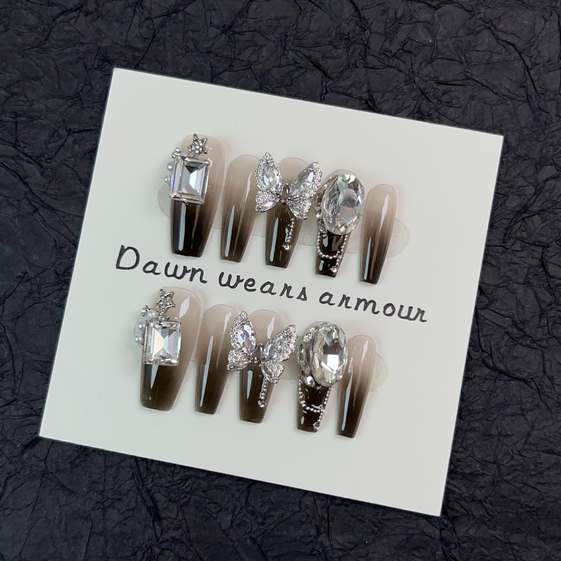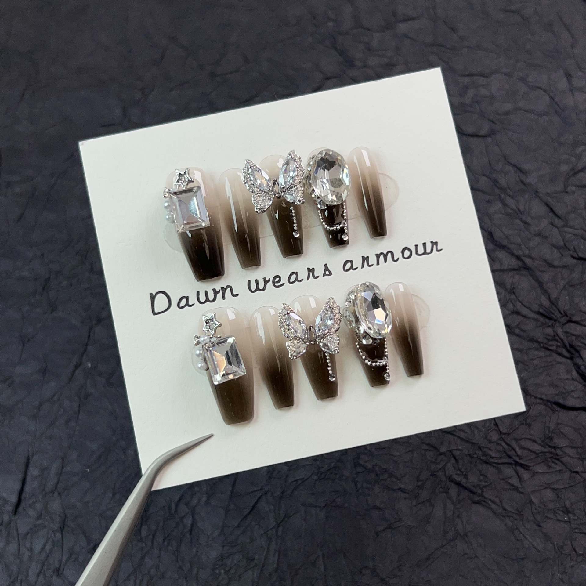 蝶梦逆境穿戴甲纯手工甲片成品冰透渐变蝴蝶贴钻美甲轻奢可拆卸