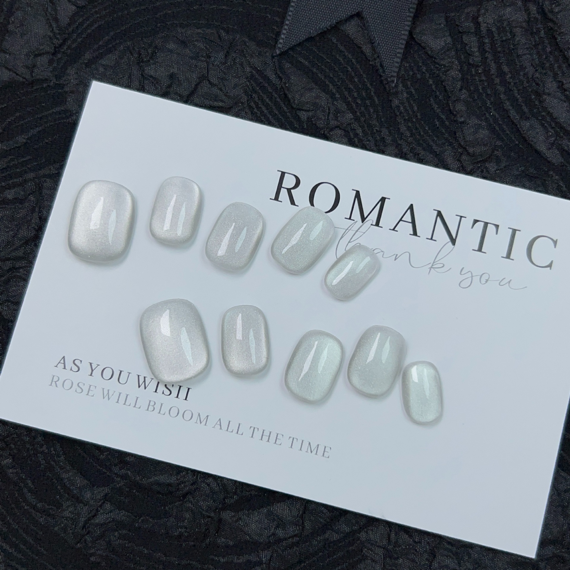 新款纯手工穿戴甲猫眼白月光短款美甲贴清冷高级显白可拆卸甲片