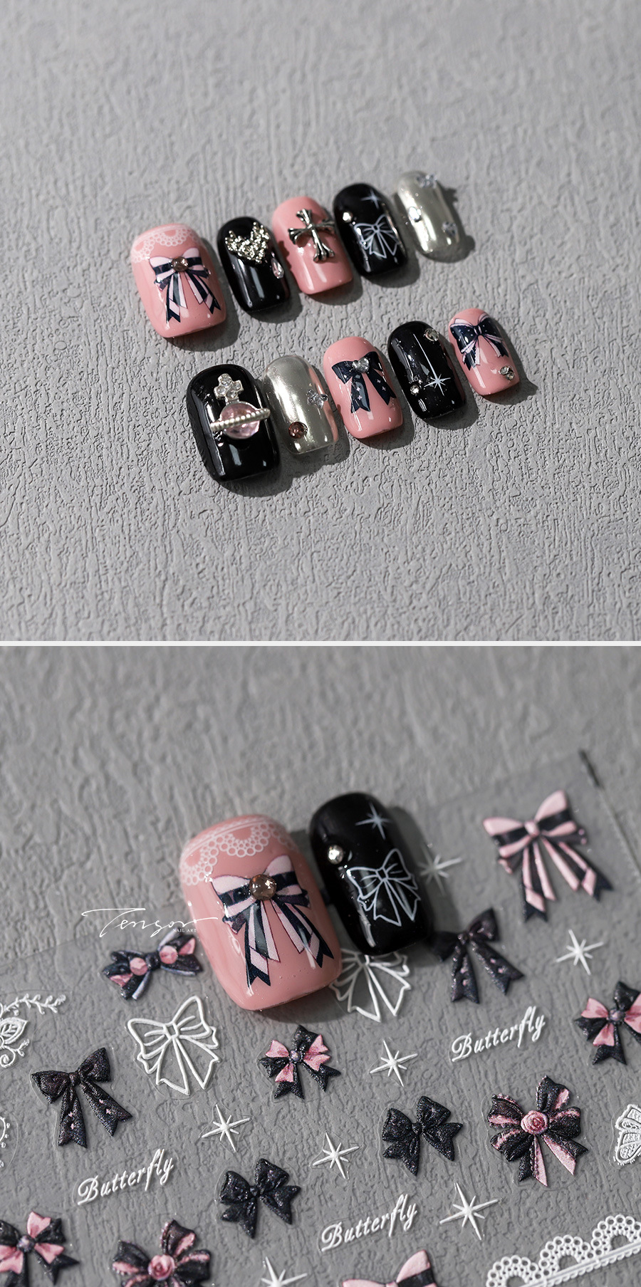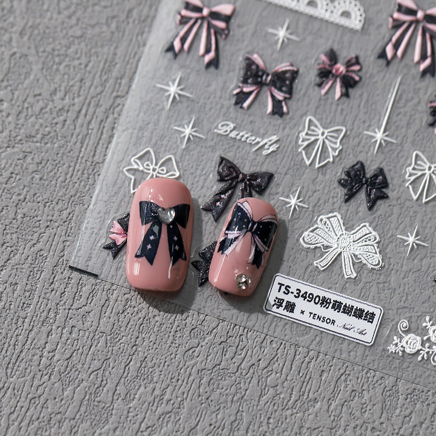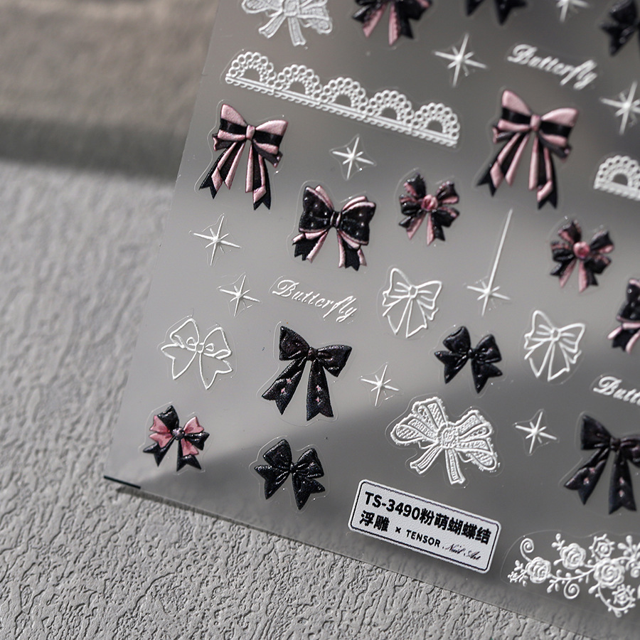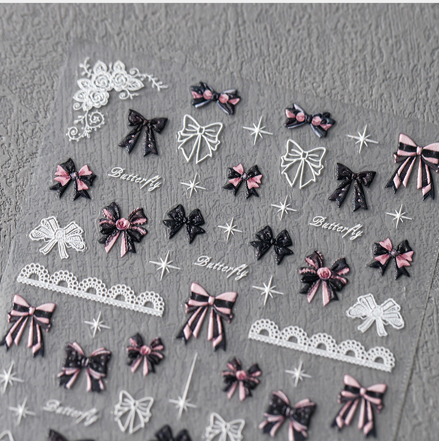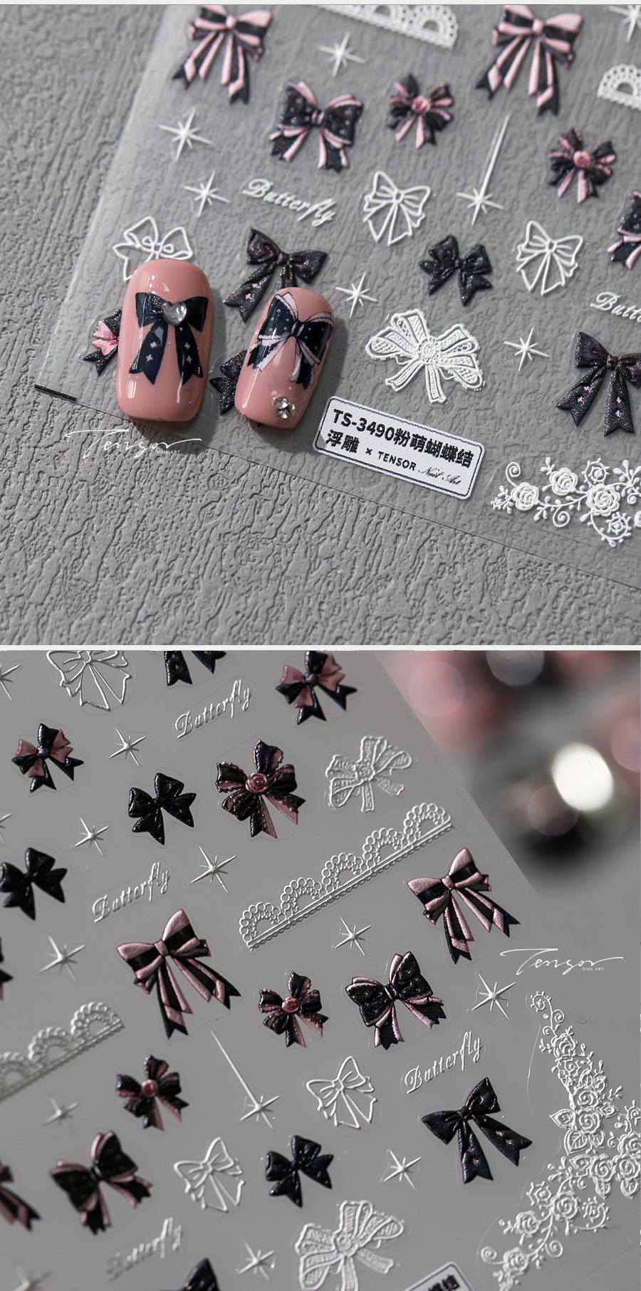 卡通美甲贴纸立体背胶指甲贴饰品粉萌蝴蝶结贴纸