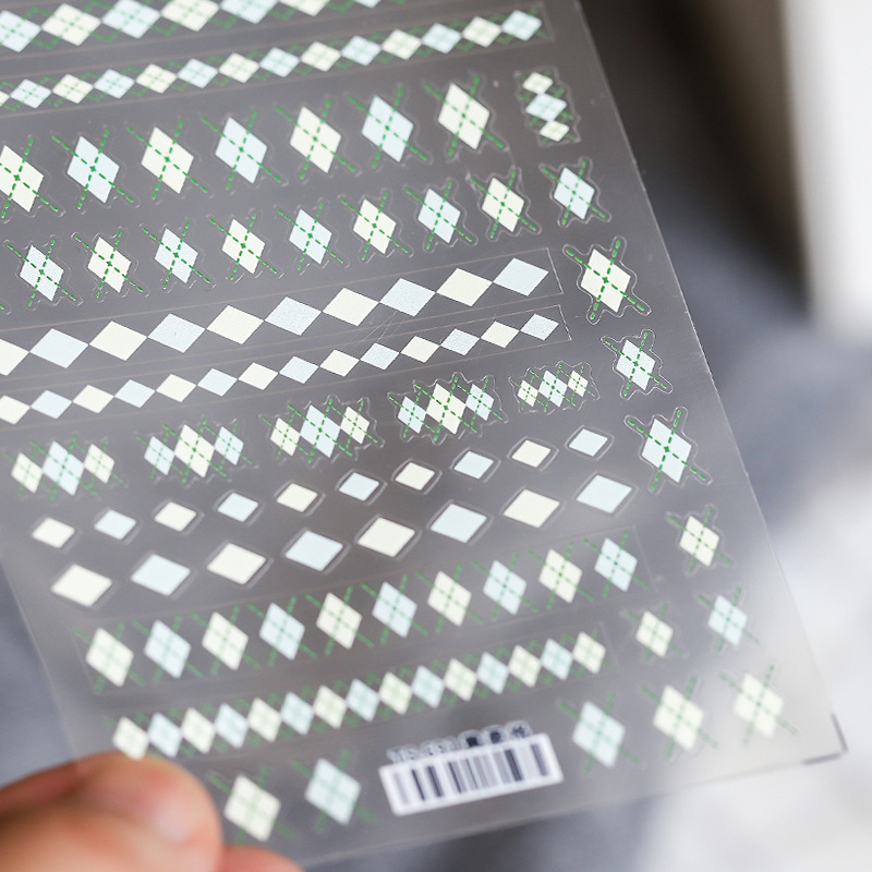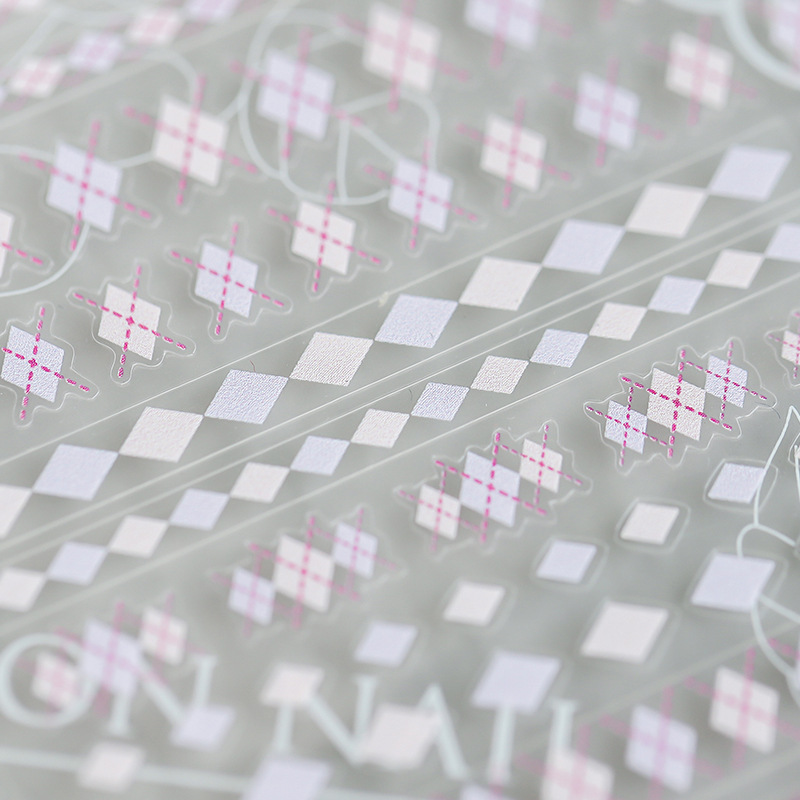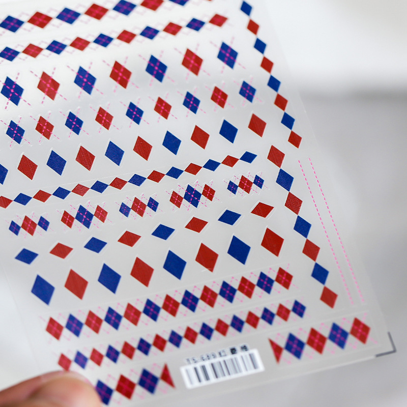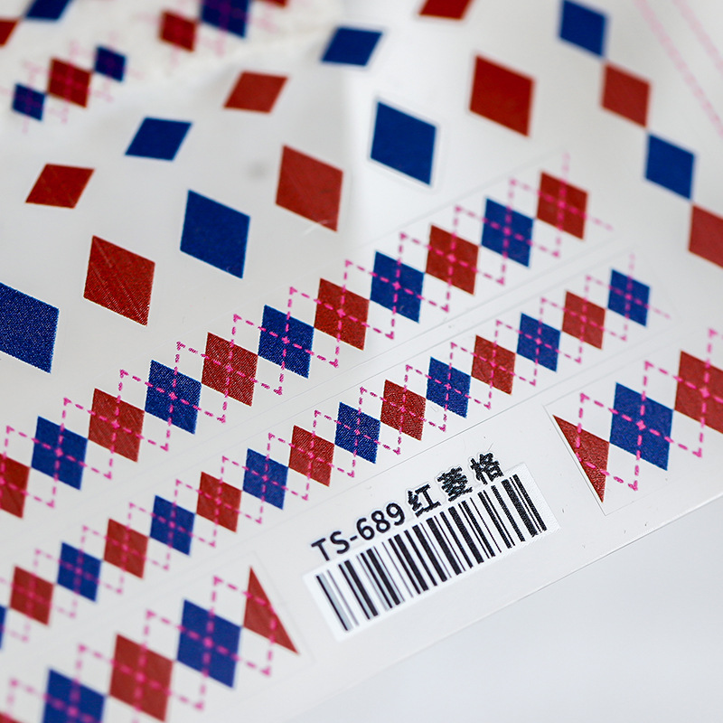 薄透美甲贴纸薄韧背胶指甲贴指甲饰品红菱格贴纸
