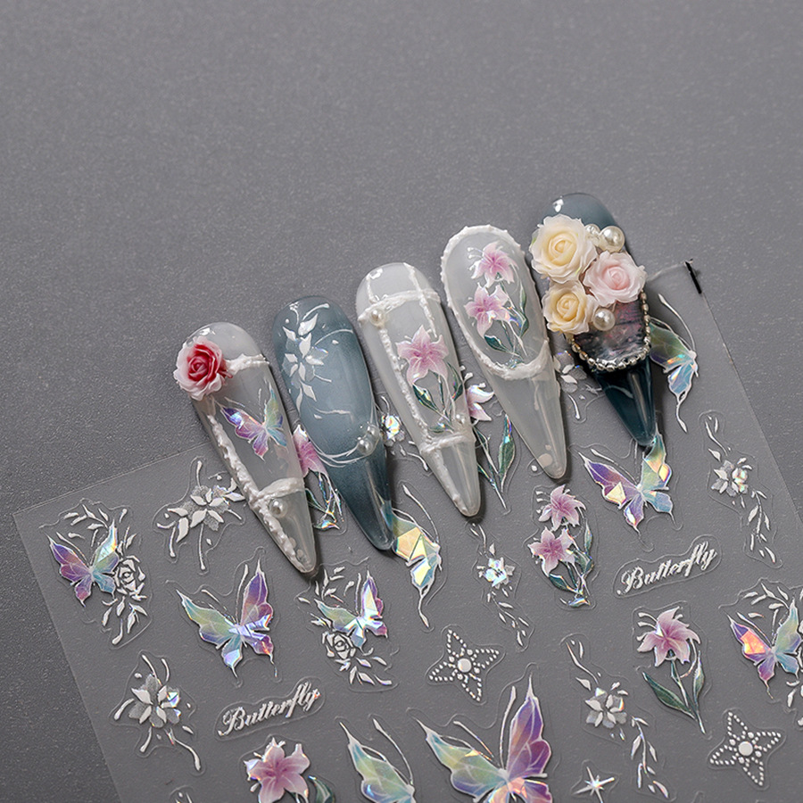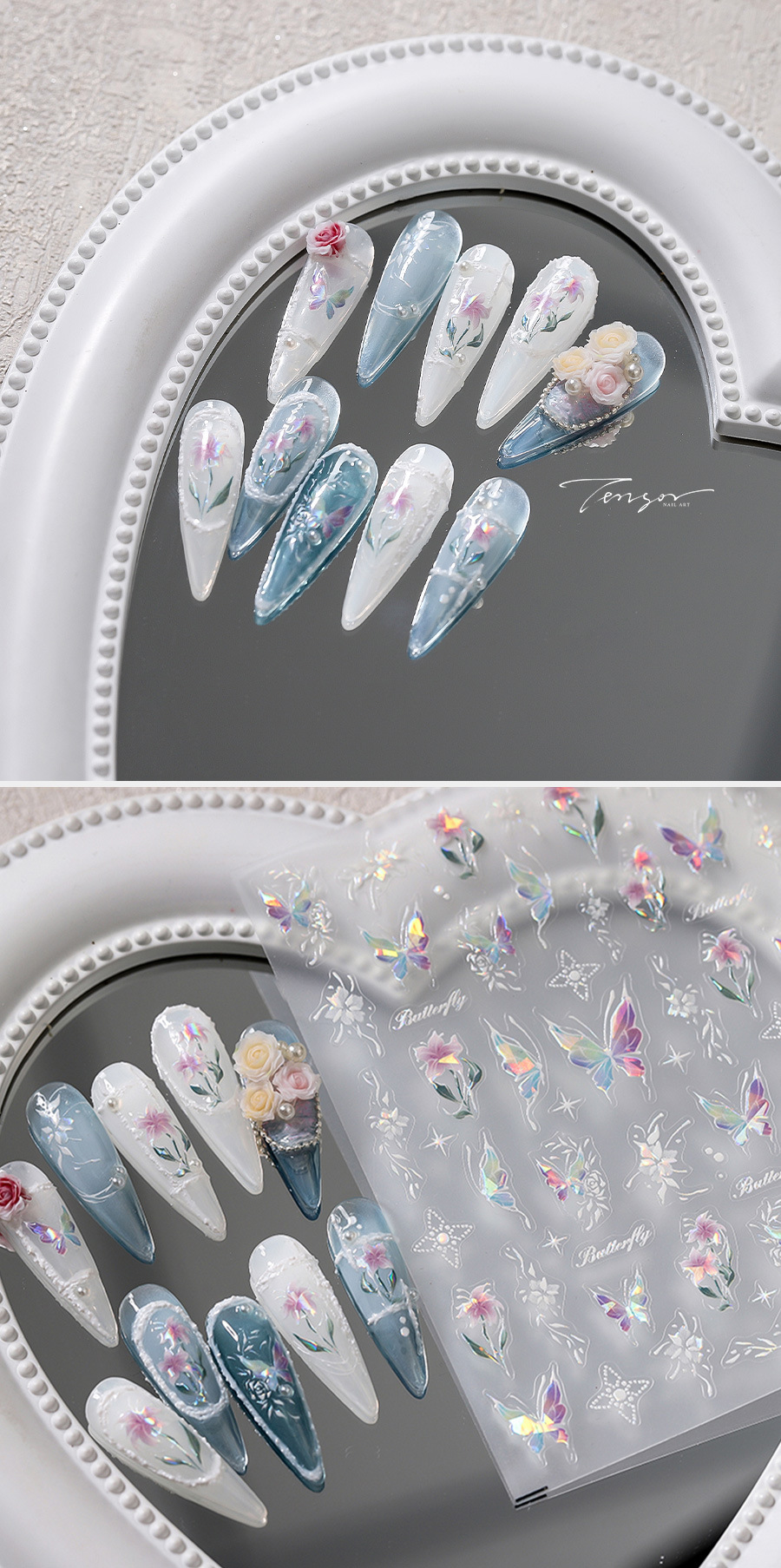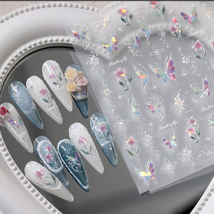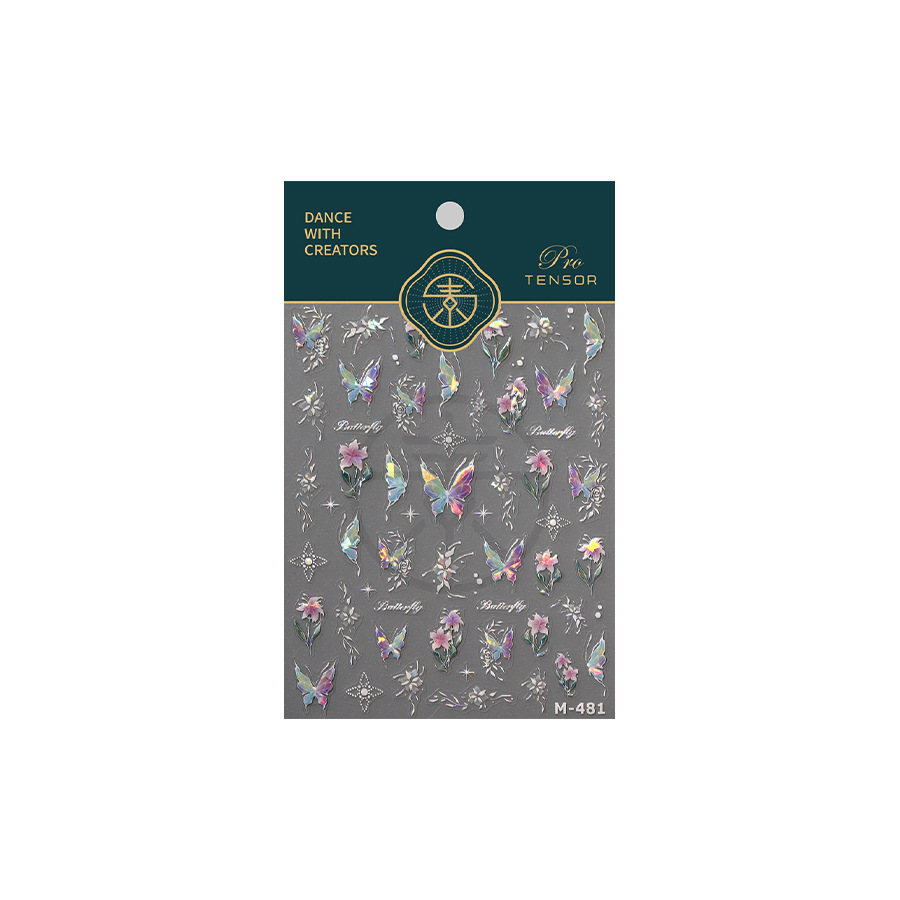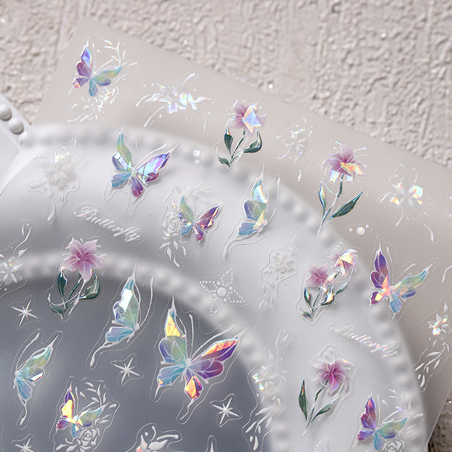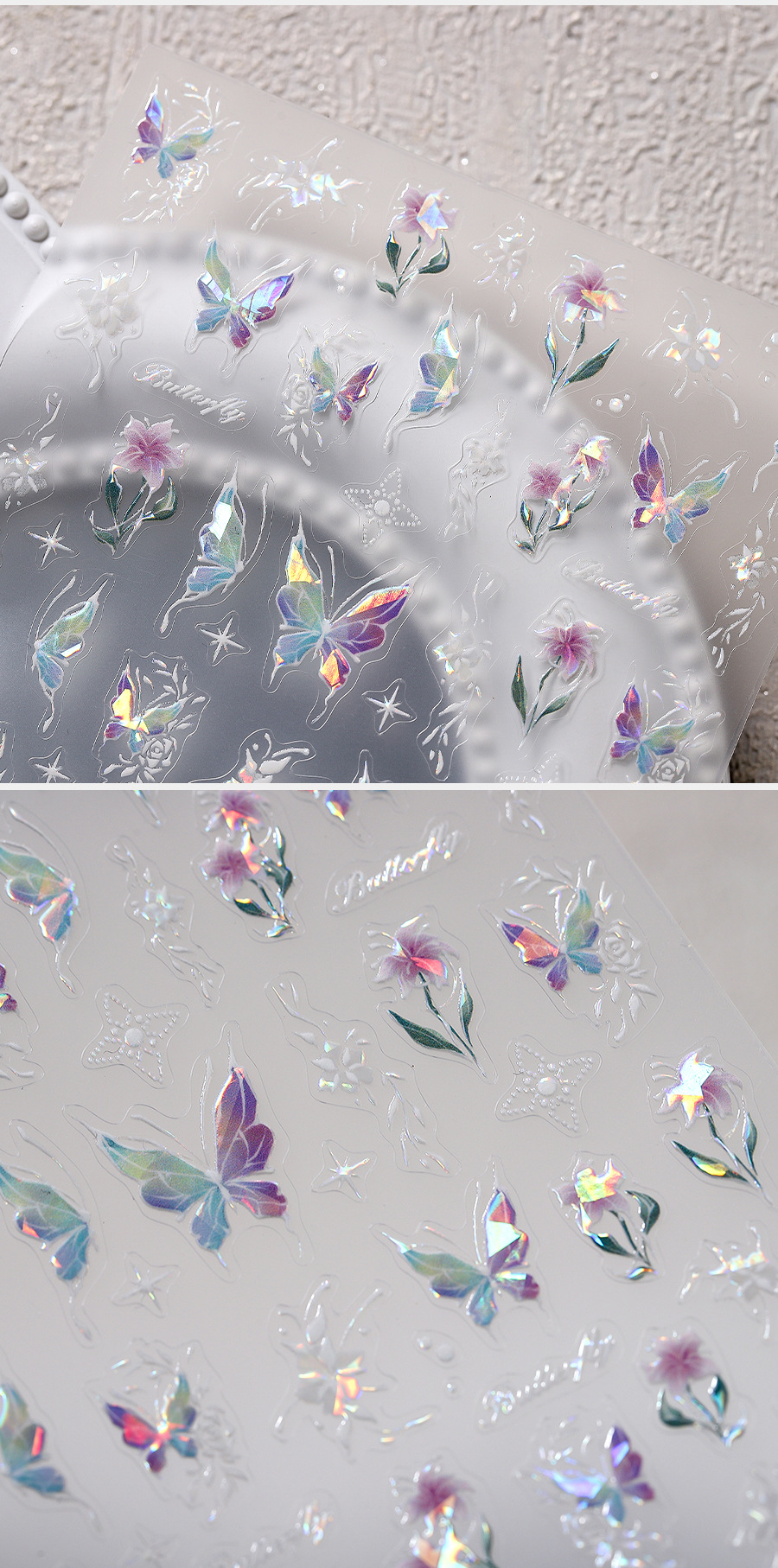 立体浮雕TENSOR冰透蝴蝶ins背胶美甲贴纸烫金系列