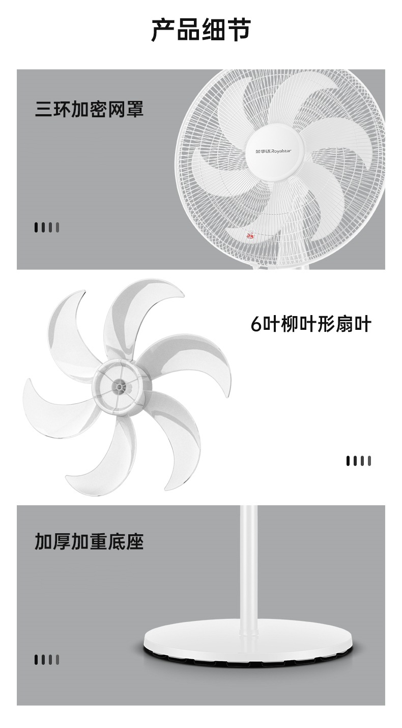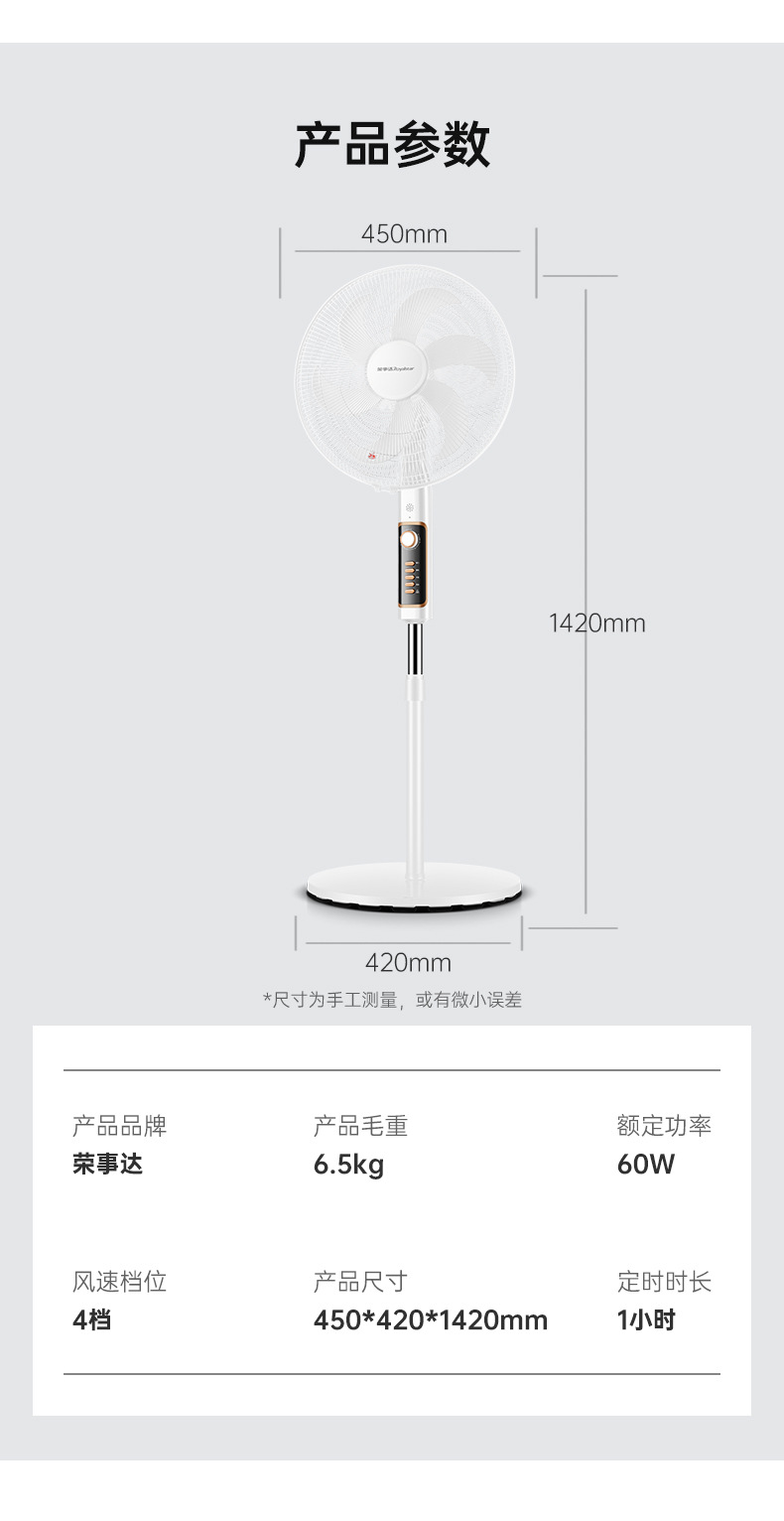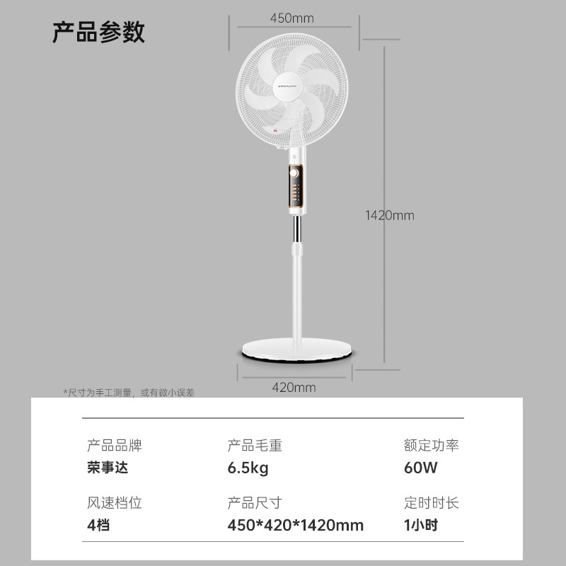 荣事达电风扇家用风扇落地扇立式电扇16寸四档定时六叶FS40-B16H